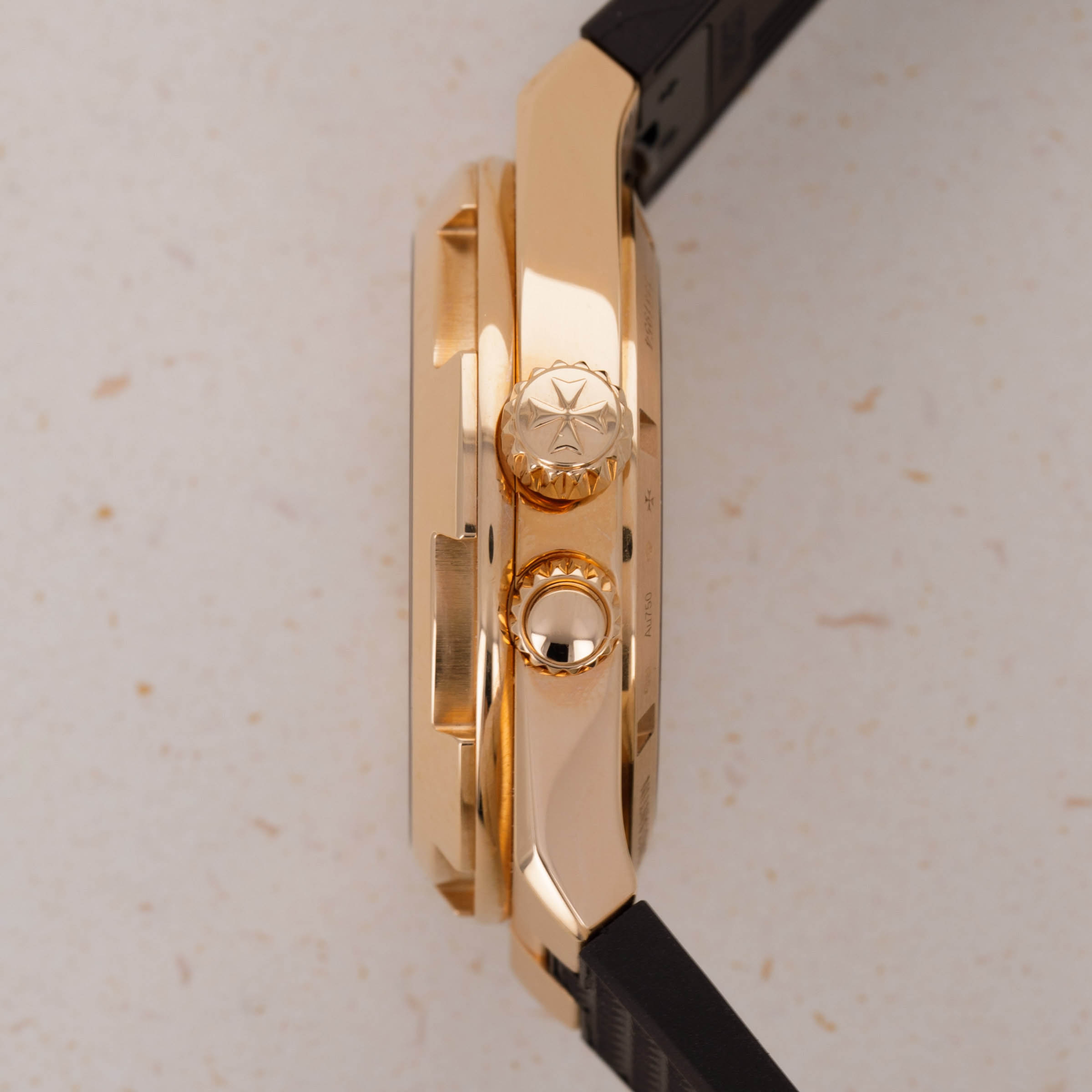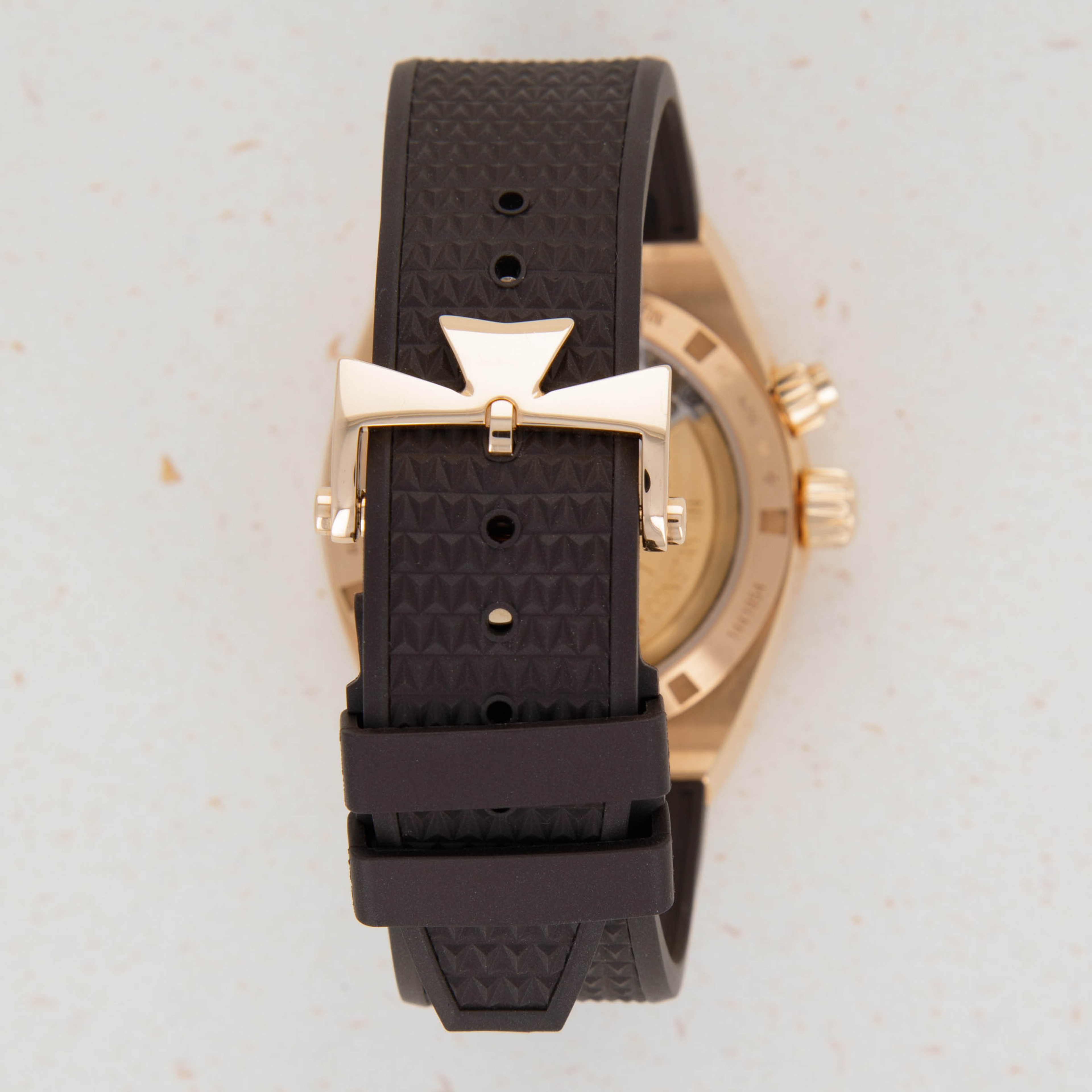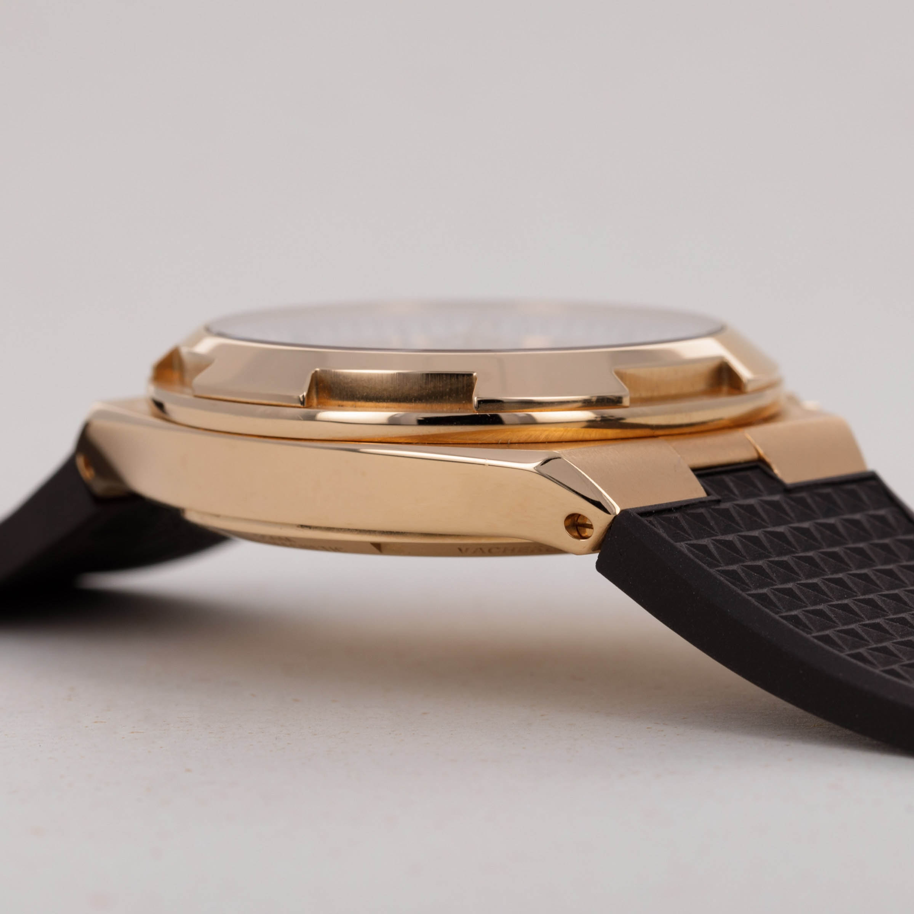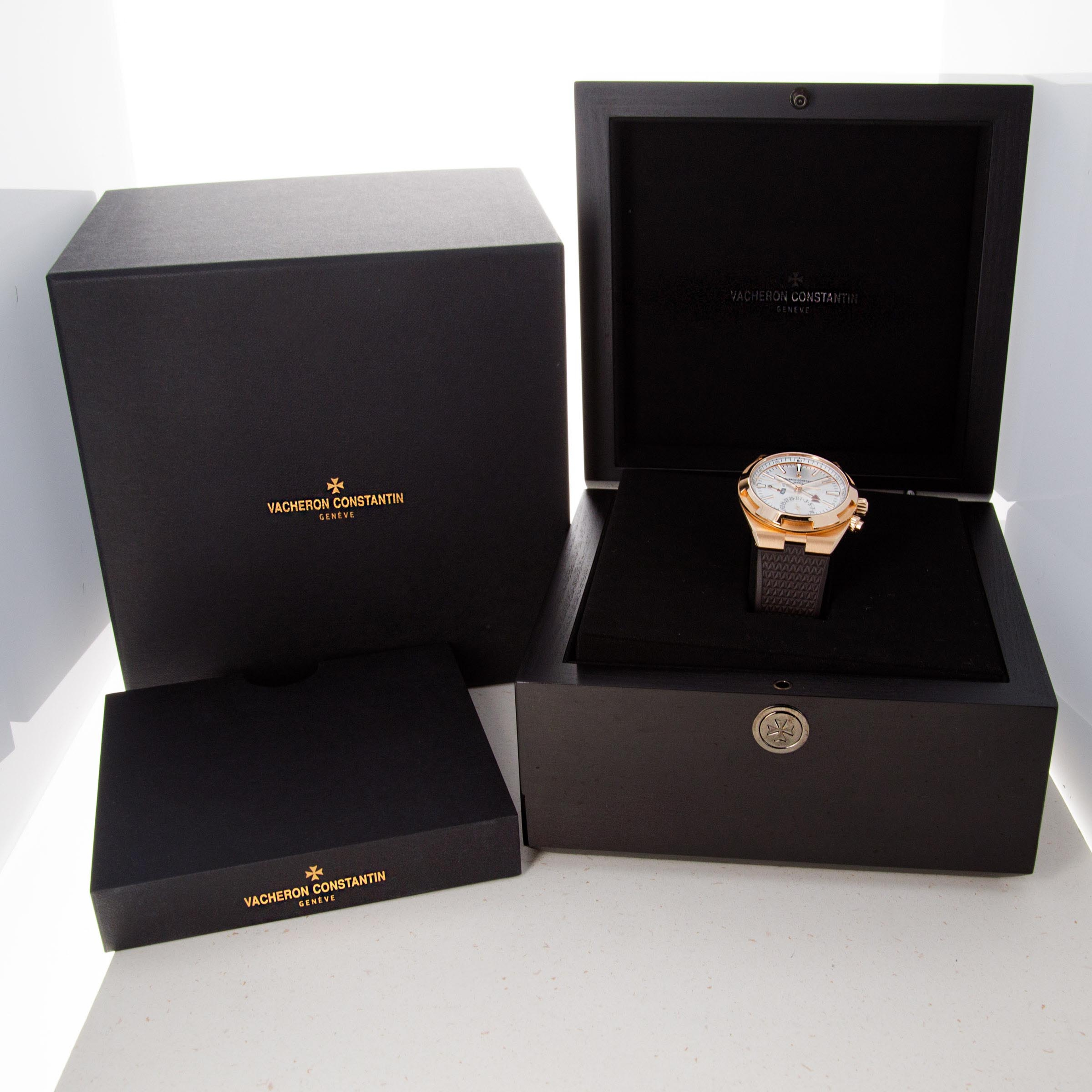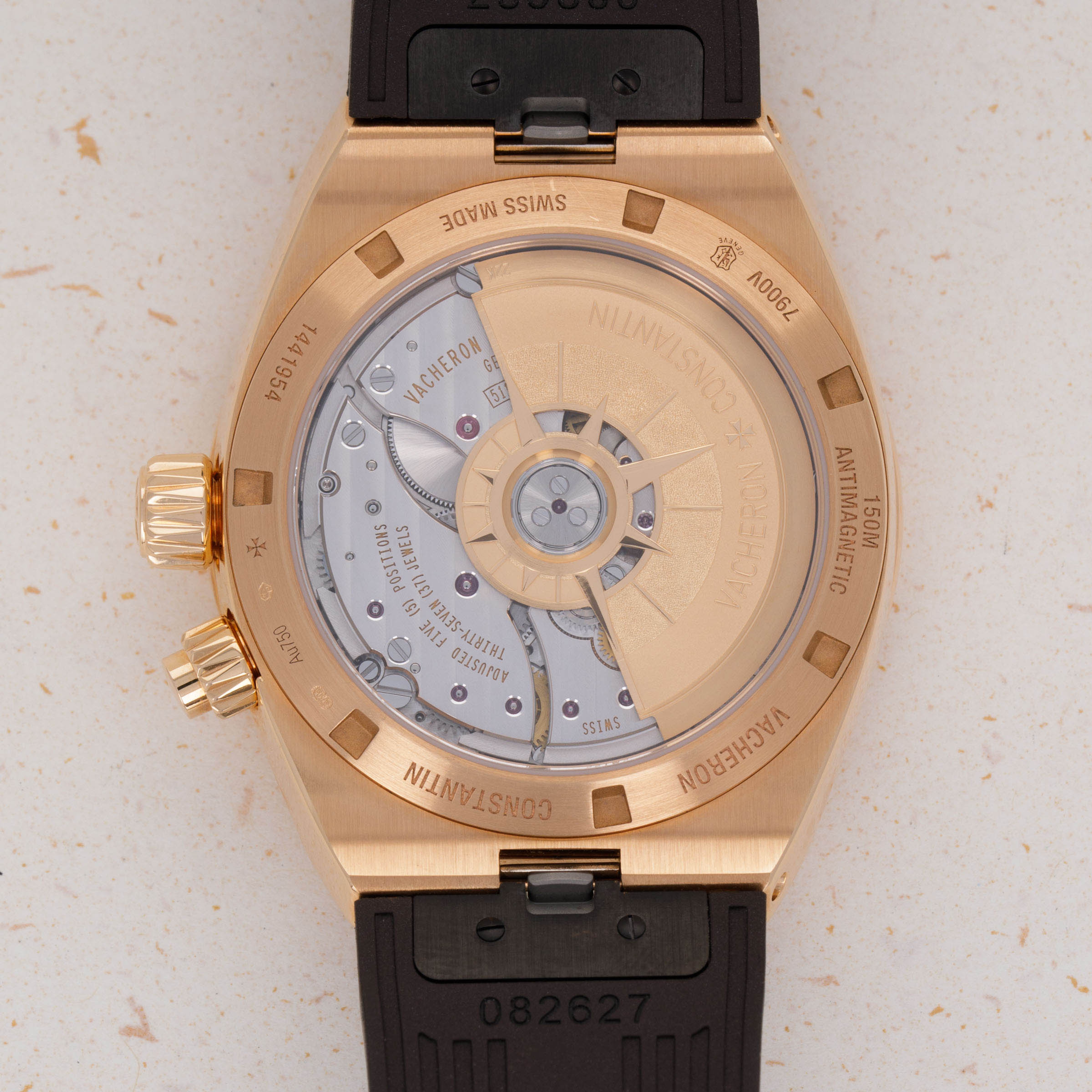 Debuting in 2016, the latest generation Overseas model has modernized the collection's aesthetics, upgraded its construction and improved Vacheron Constantin's flagship sports model in leaps and bounds. Drawing its inspiration from Vacheron's older 222 collection from 1977, the Overseas features a polished Maltese cross-inspired bezel and Maltese cross-inspired bracelet links that call back to the watchmaker's iconic logo. Furthermore, with 120m of water resistance, an incredible quick release system for changing between straps and bracelets and stunningly well-executed dials, an Overseas is a great all-around addition to any collection as wearability, utility and beauty have all been prioritized above all else. With Vacheron's incredible craftsmanship on display, too, the 3rd generation Overseas is a marvellous timepiece that is only beginning to gain the traction within the market that it deserves. Offered here we have the Overseas Dual-Time ref. 7900V in 18kt rose gold with a stunning silver dial offered on a brown rubber strap that can be quickly changed at the push of a button. Released in 2017, it added upon the Overseas’ credentials as an impressive sports watch with its heightened functionality through its dual-time display and its luxurious construction through its 18kt rose gold case. A perfect combination of utility and luxury, this Overseas has it all.