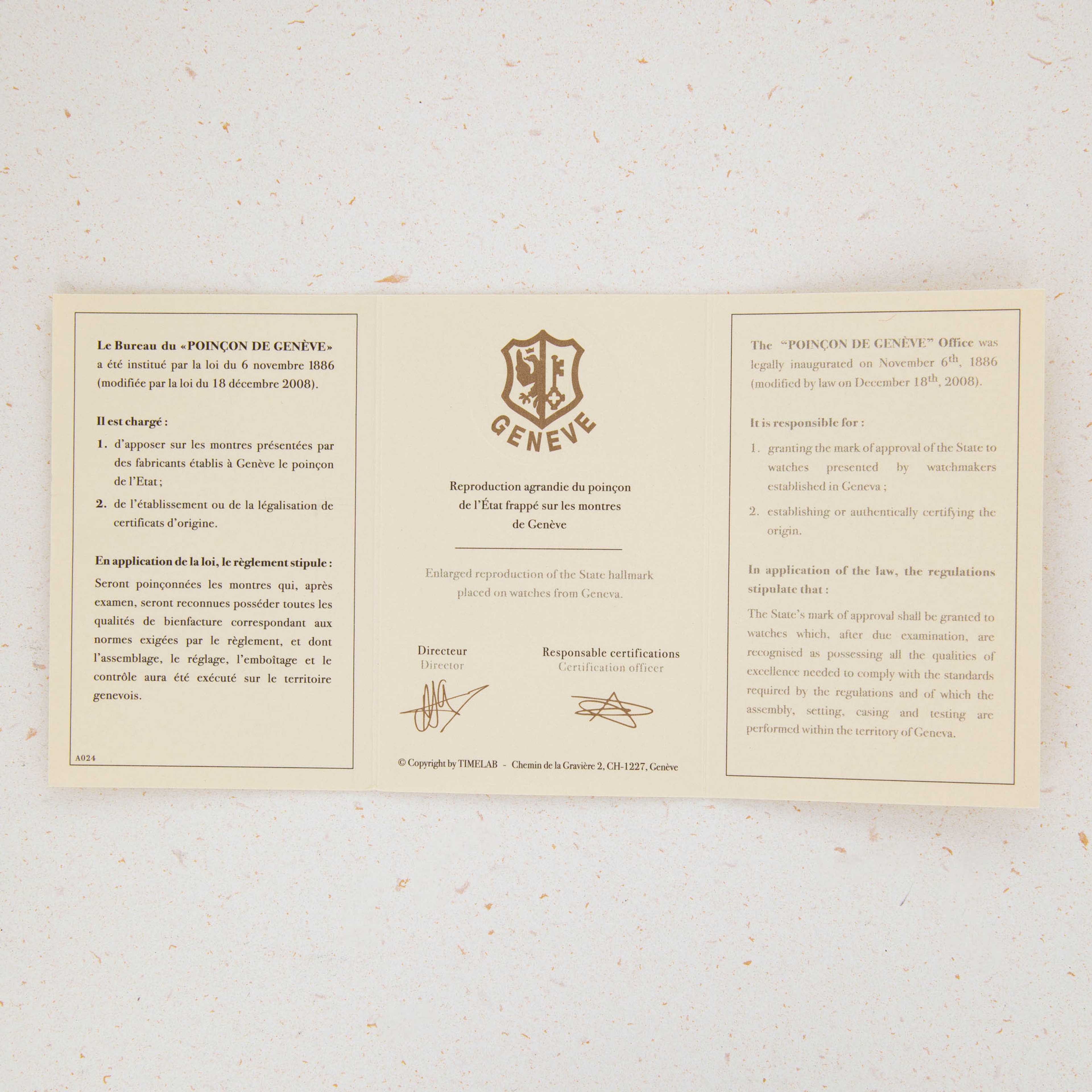 This reading was taken (crown down) with a ONEOF Accuracy Boutique Edition timing machine at time of cataloging. It is provided as a courtesy only, and shall not be construed as a warranty or guarantee of any kind. Please refer to our terms and conditions of sale for more information.