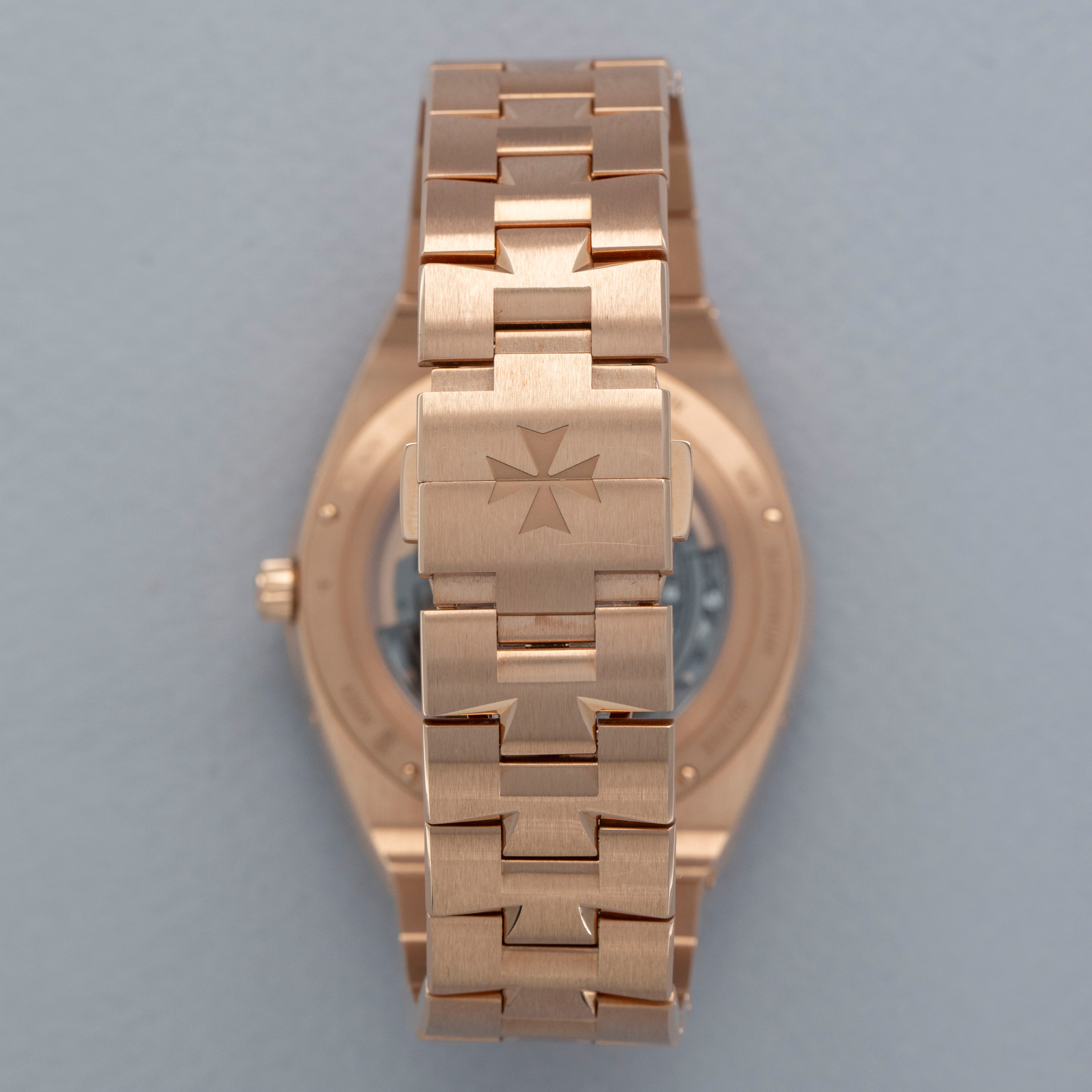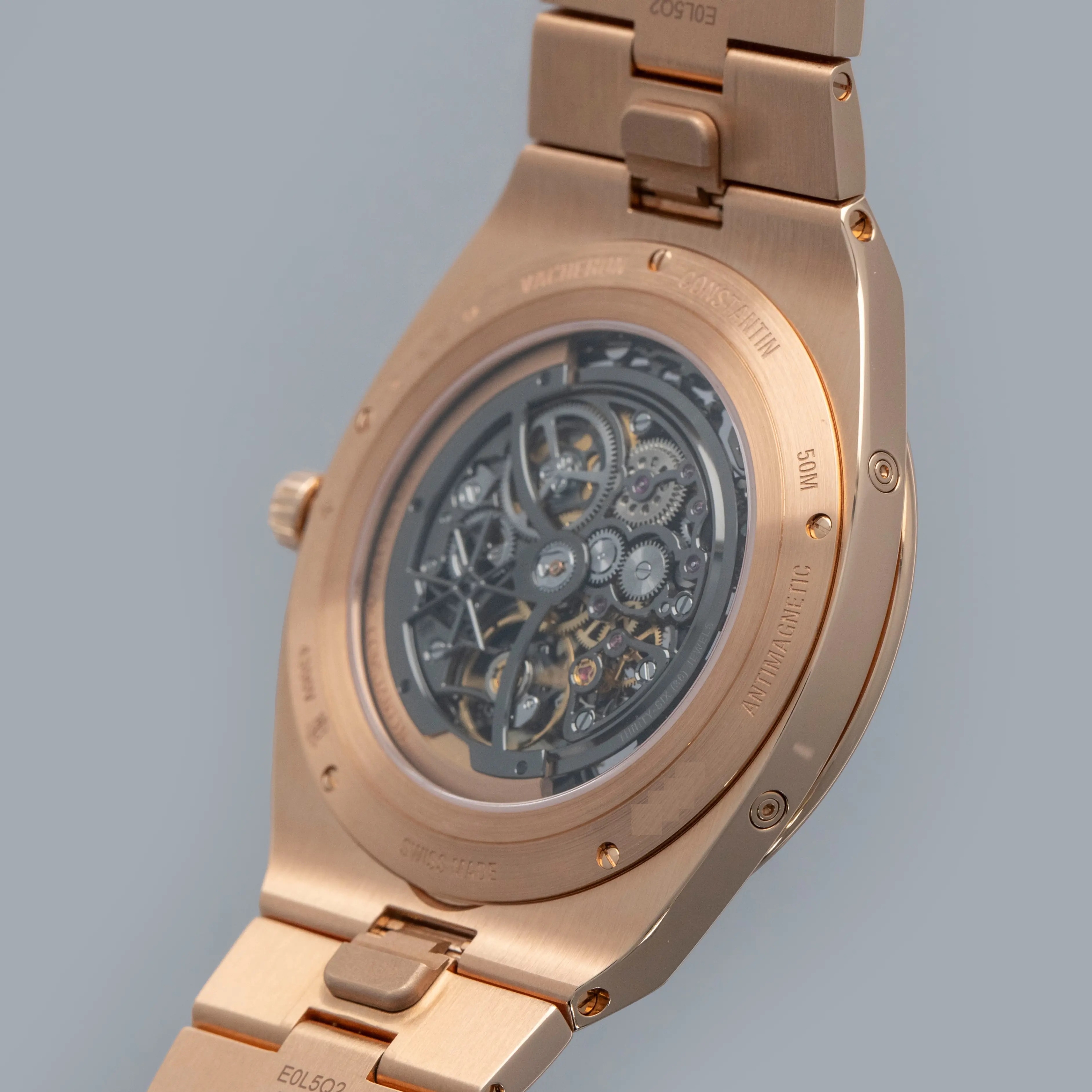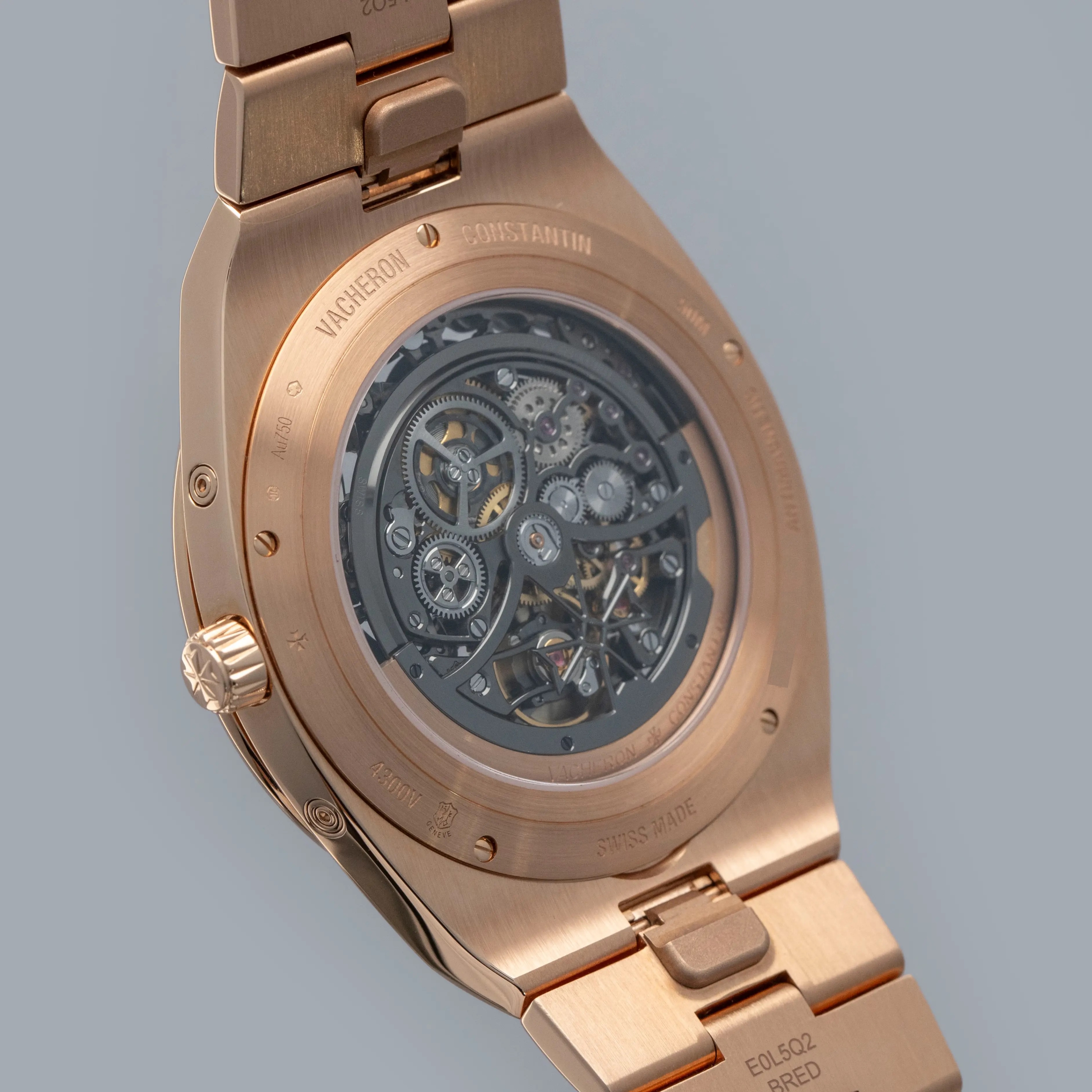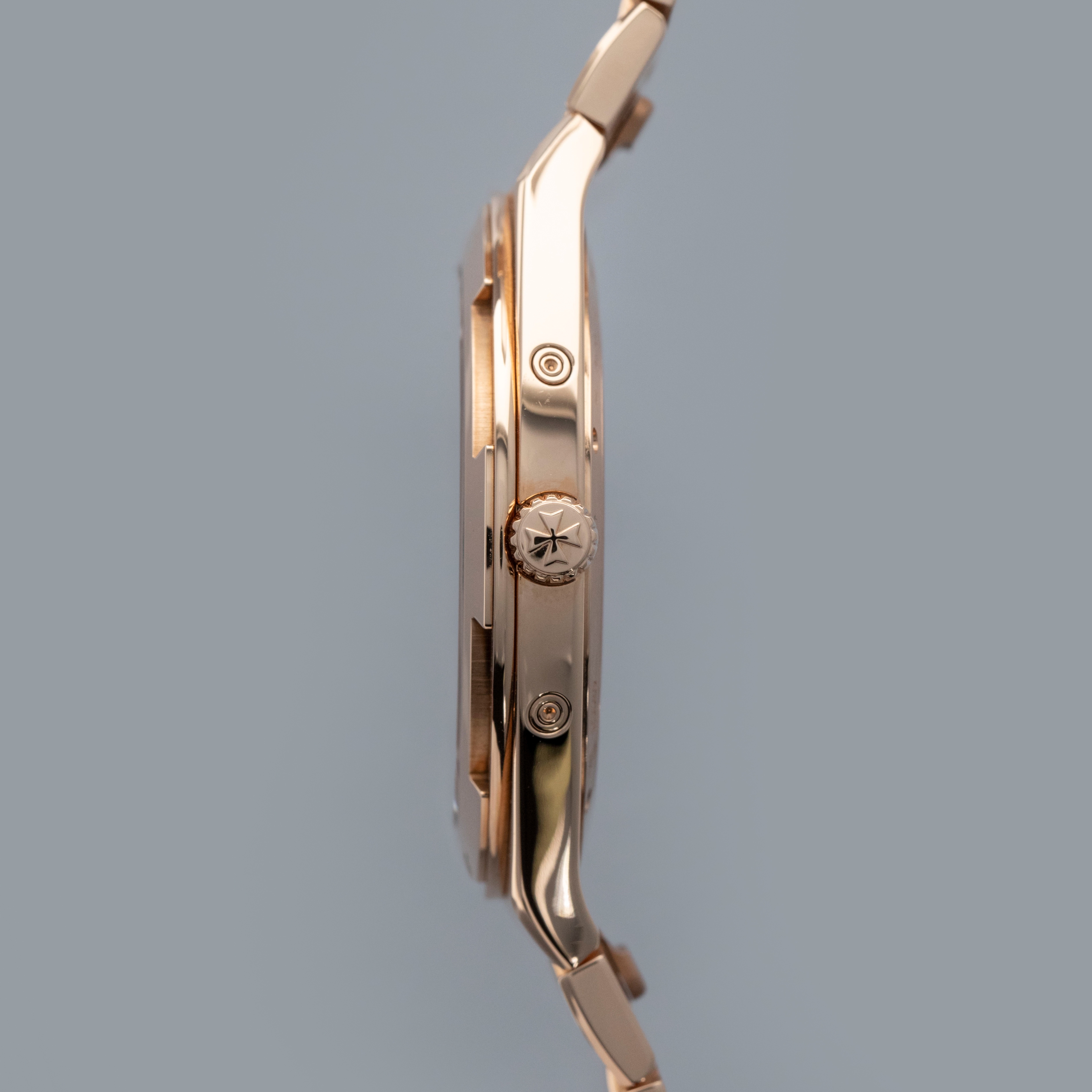 Offered in 18kt rose gold and featuring all of the Overseas' iconic design elements such as its integrated Maltese cross-inspired bracelet and bezel, this timepiece wears with the level of candour that it deserves.