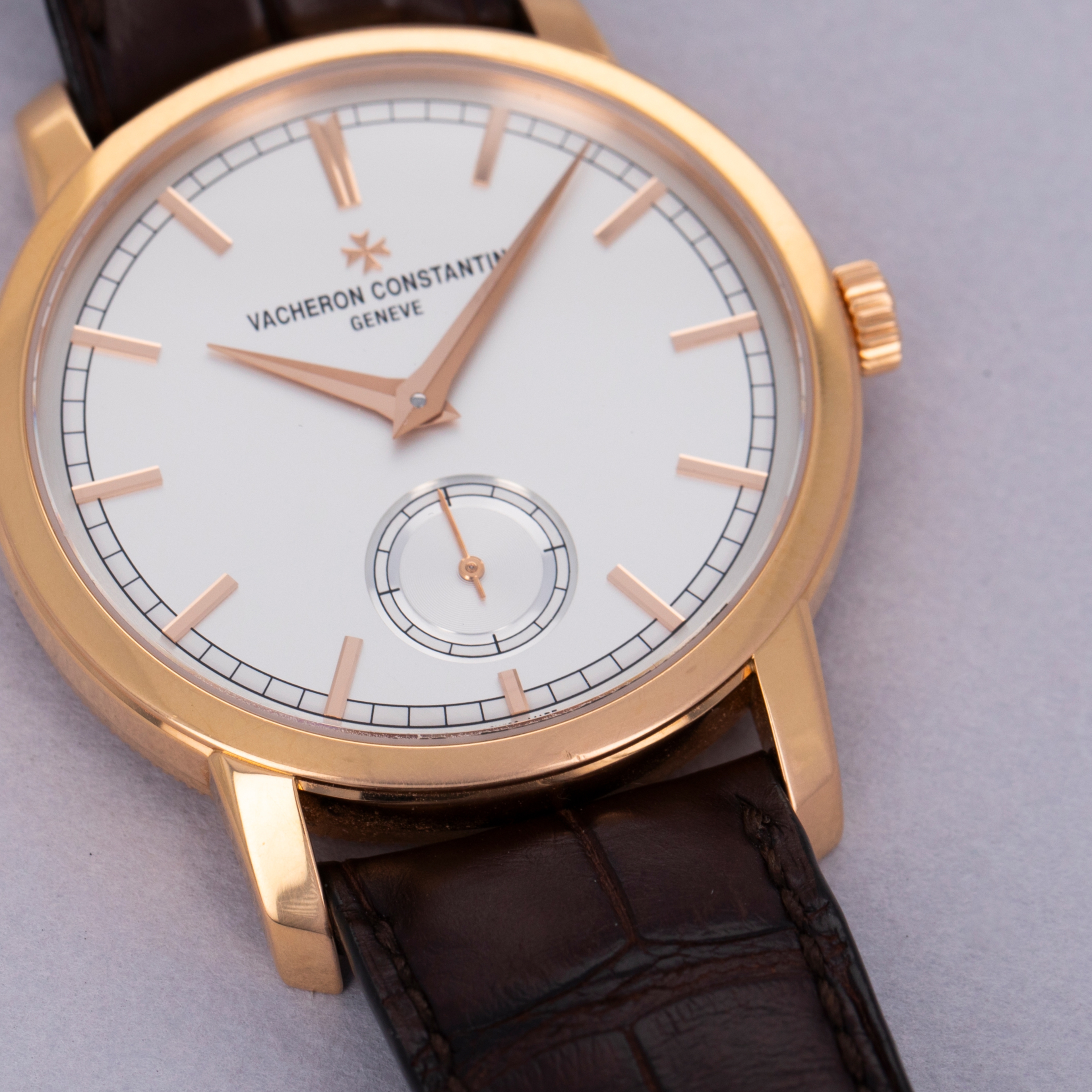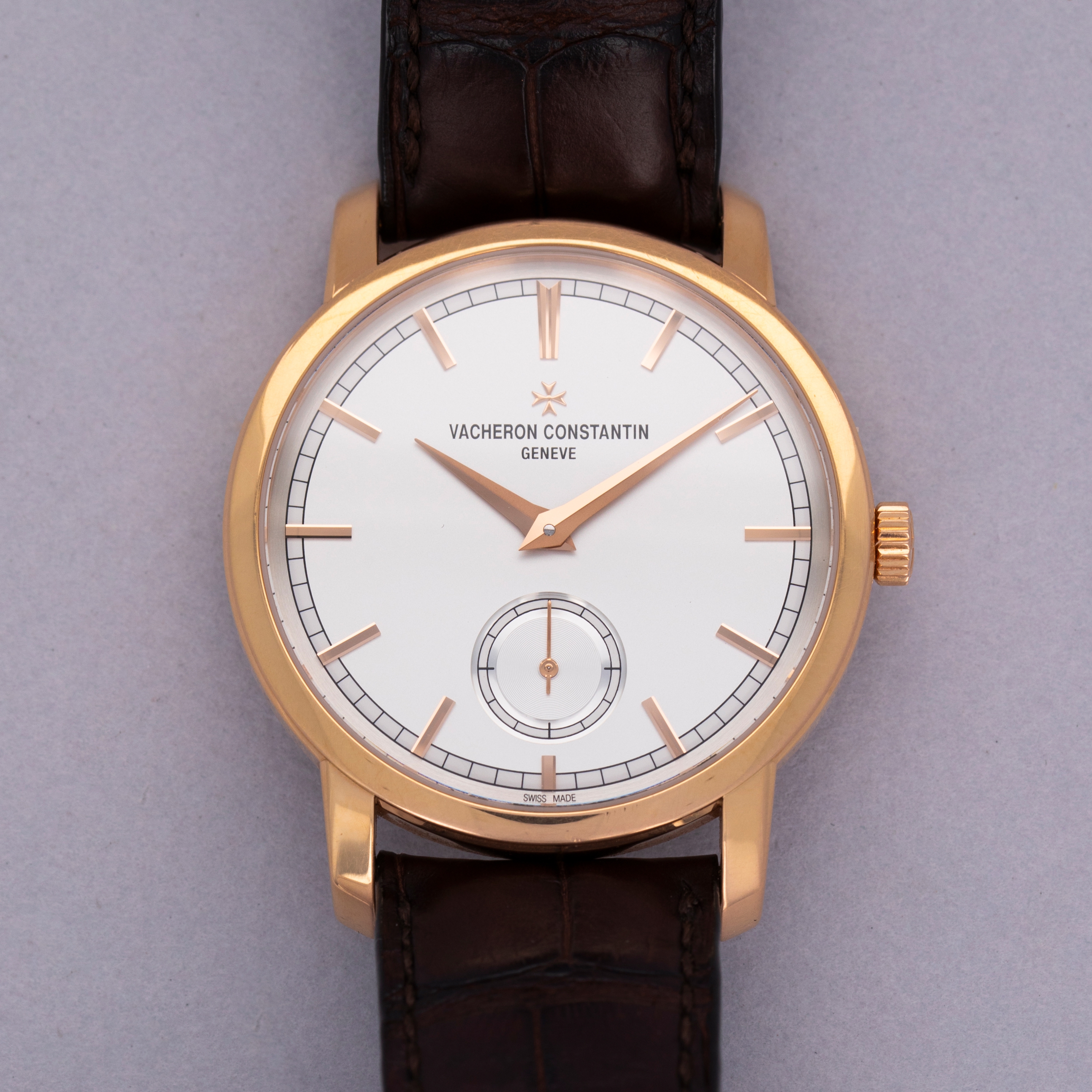Inspired by elegant mid-century design, the Vacheron Constantin Patrimony represents an exquisite marriage of tradition, innovation and artisanal craftsmanship. Exemplifying Vacheron’s commitment to timeless elegance, this Patrimony Traditionnelle 82172/000R-9382 features a clean, minimalist design and Vacheron’s signature high-grade craftsmanship. Boasting a 7.77mm thin 38mm diameter 18-karat rose gold case that houses a meticulously crafted manual-wind cal. 4400 AS movement, the ref. 82172 is a wonderfully classical piece of horology. Contrasting the rich warmth of its rose gold case, the example we have here’s silver dial features an aesthetically pleasing mix of 18kt rose gold dauphine hands, applied stick indices in matching 18kt rose gold, and a subtle running seconds subdial with a satin-brushed periphery that stands out against the dial’s matte texture. With its understated elegance and masterful precision, the Vacheron Constantin Patrimony Traditionnelle embodies the brand's dedication to horological excellence and their pursuit of high-end craftsmanship.