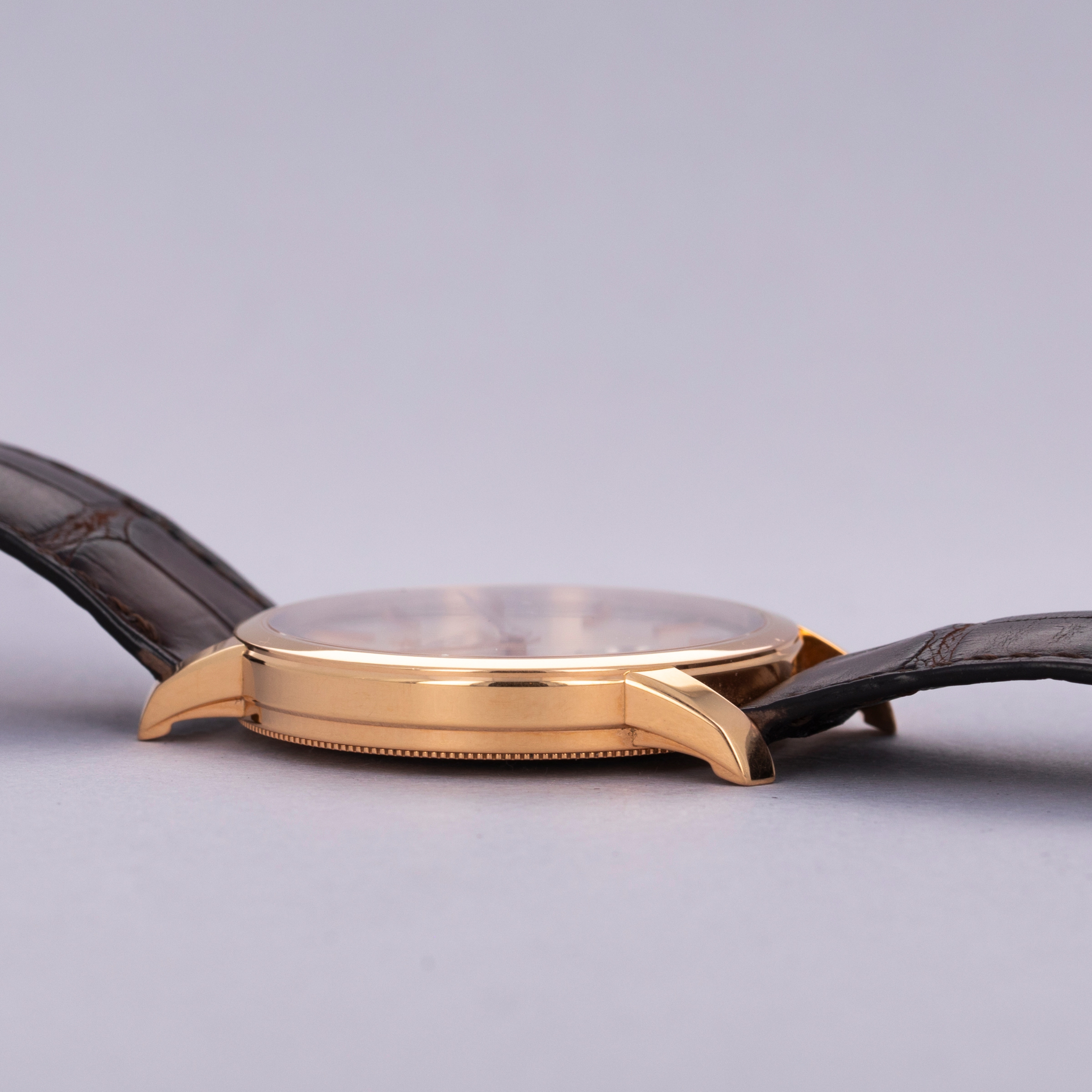 Boasting a traditional construction that has resulted in it being entirely timeless, this 18kt rose gold Patrimony features a thin bezel, a small winding crown, and straight lugs that make this watch the perfect dress watch.