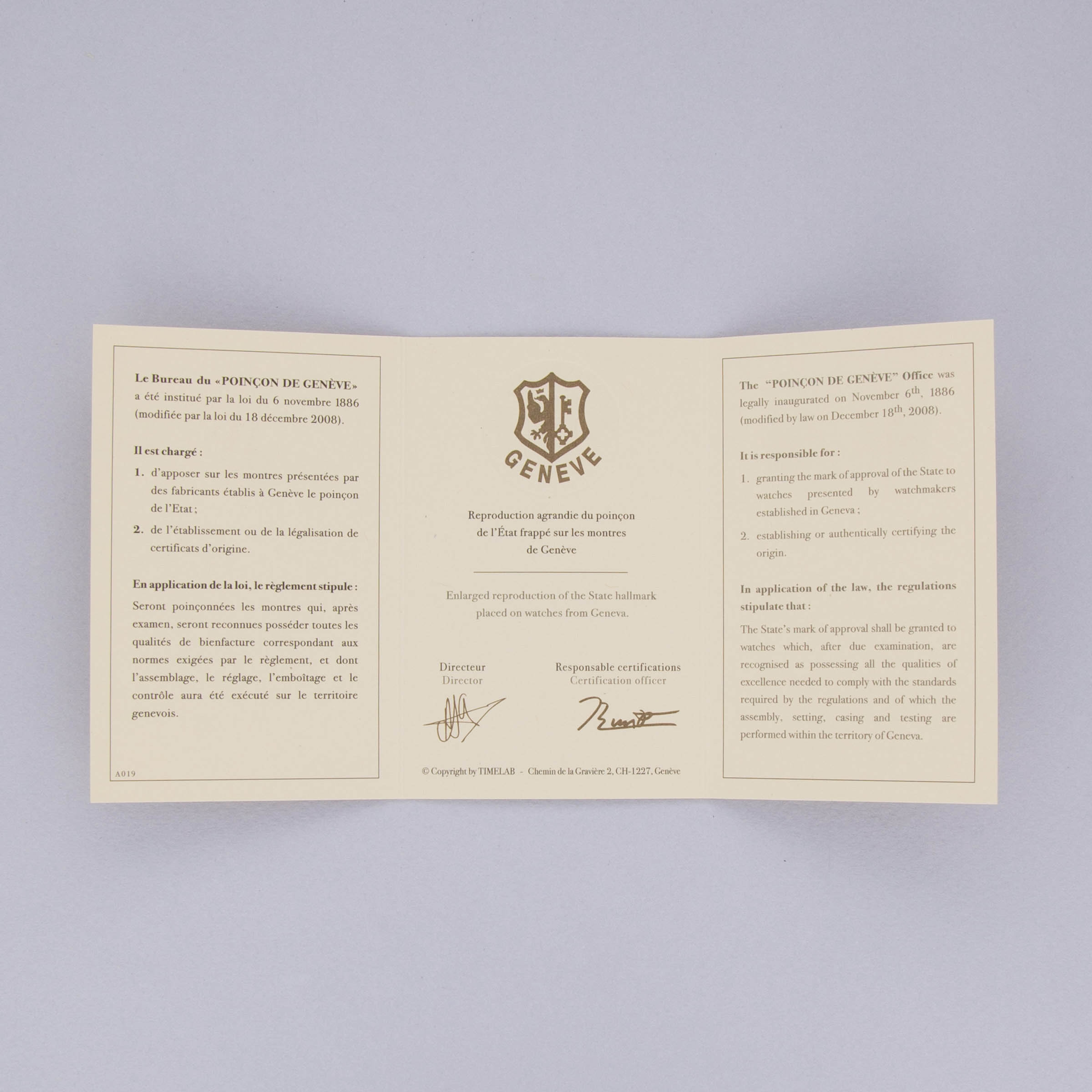 This reading was taken (crown down) with a ONEOF Accuracy Boutique Edition timing machine at time of cataloging. It is provided as a courtesy only, and shall not be construed as a warranty or guarantee of any kind. Please refer to our terms and conditions of sale for more information.