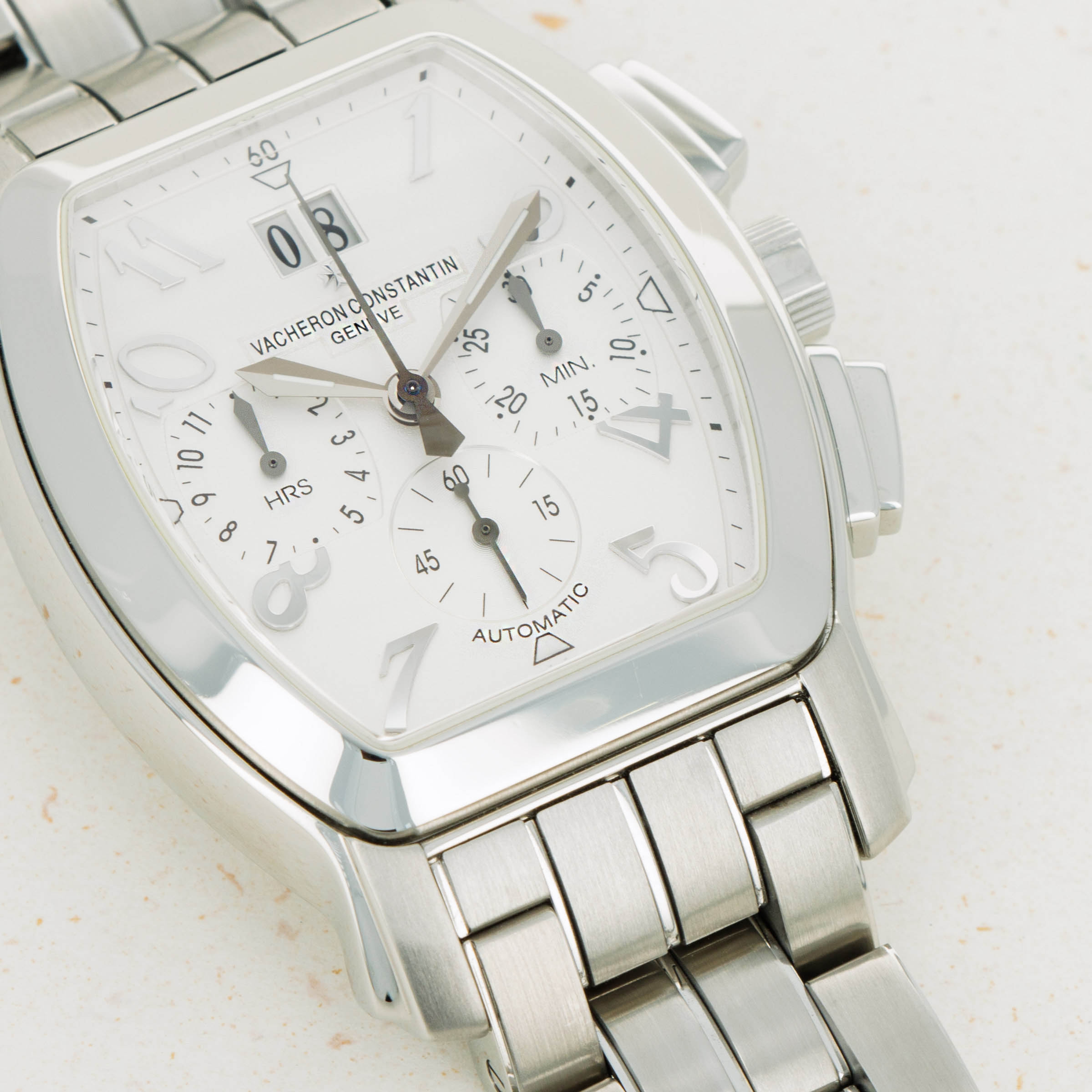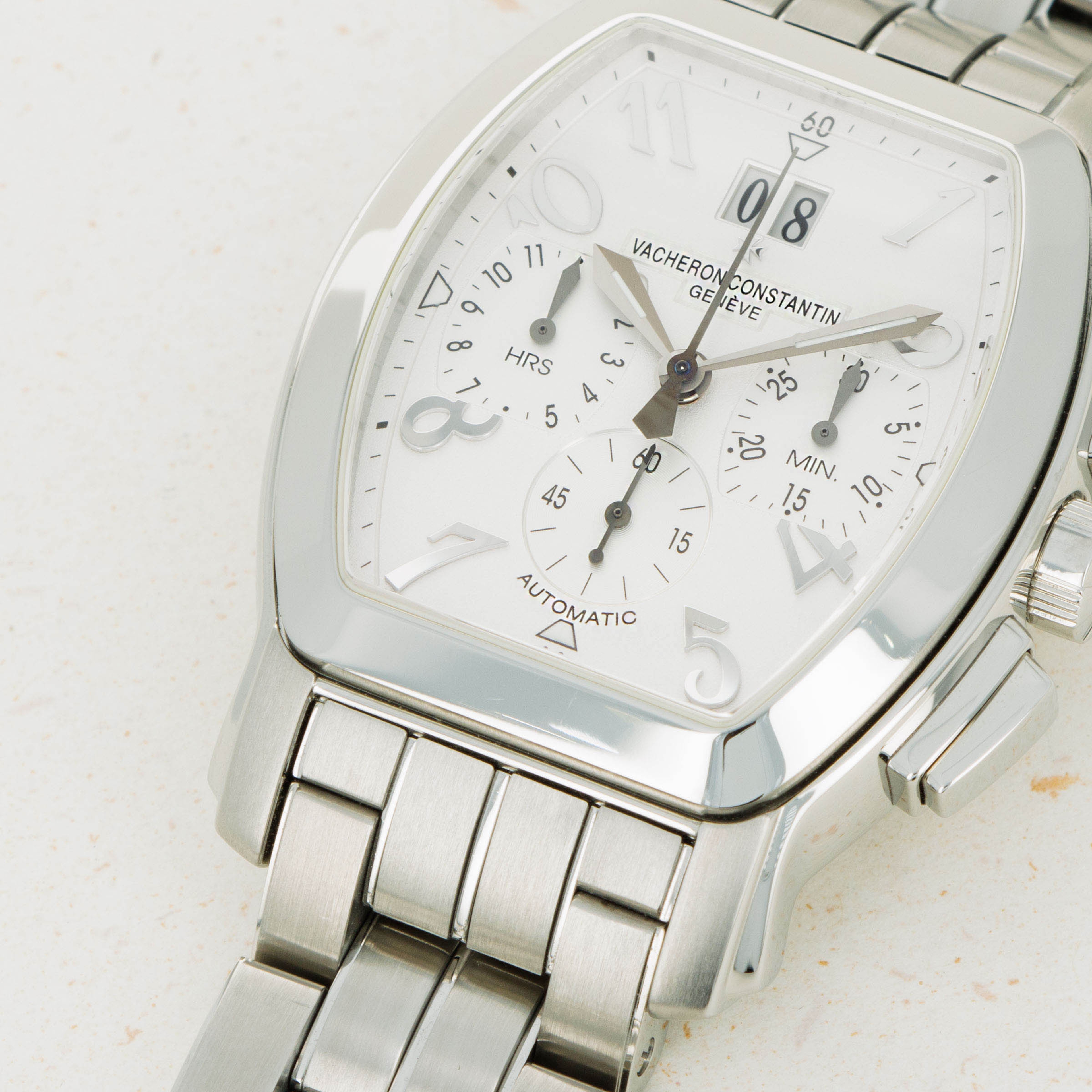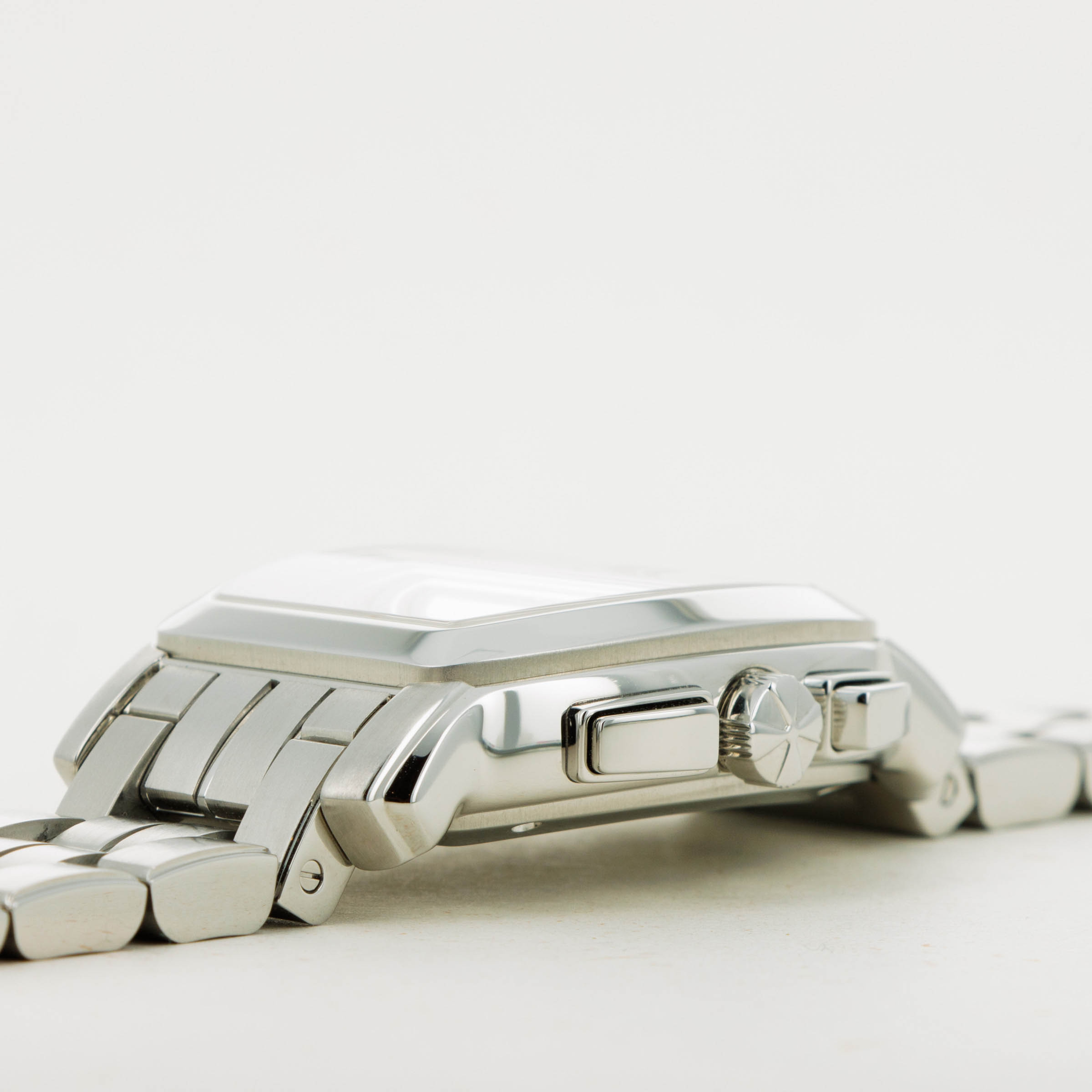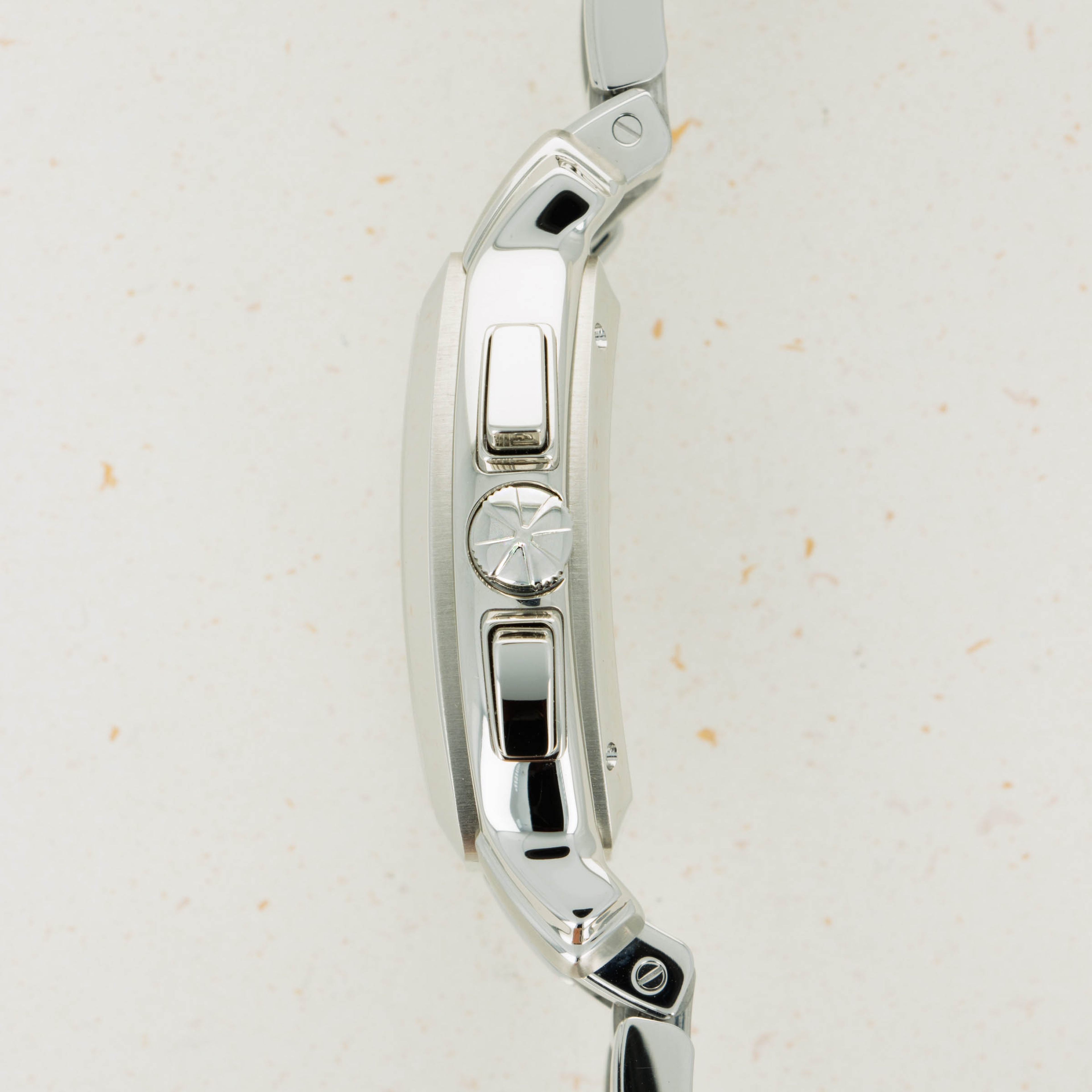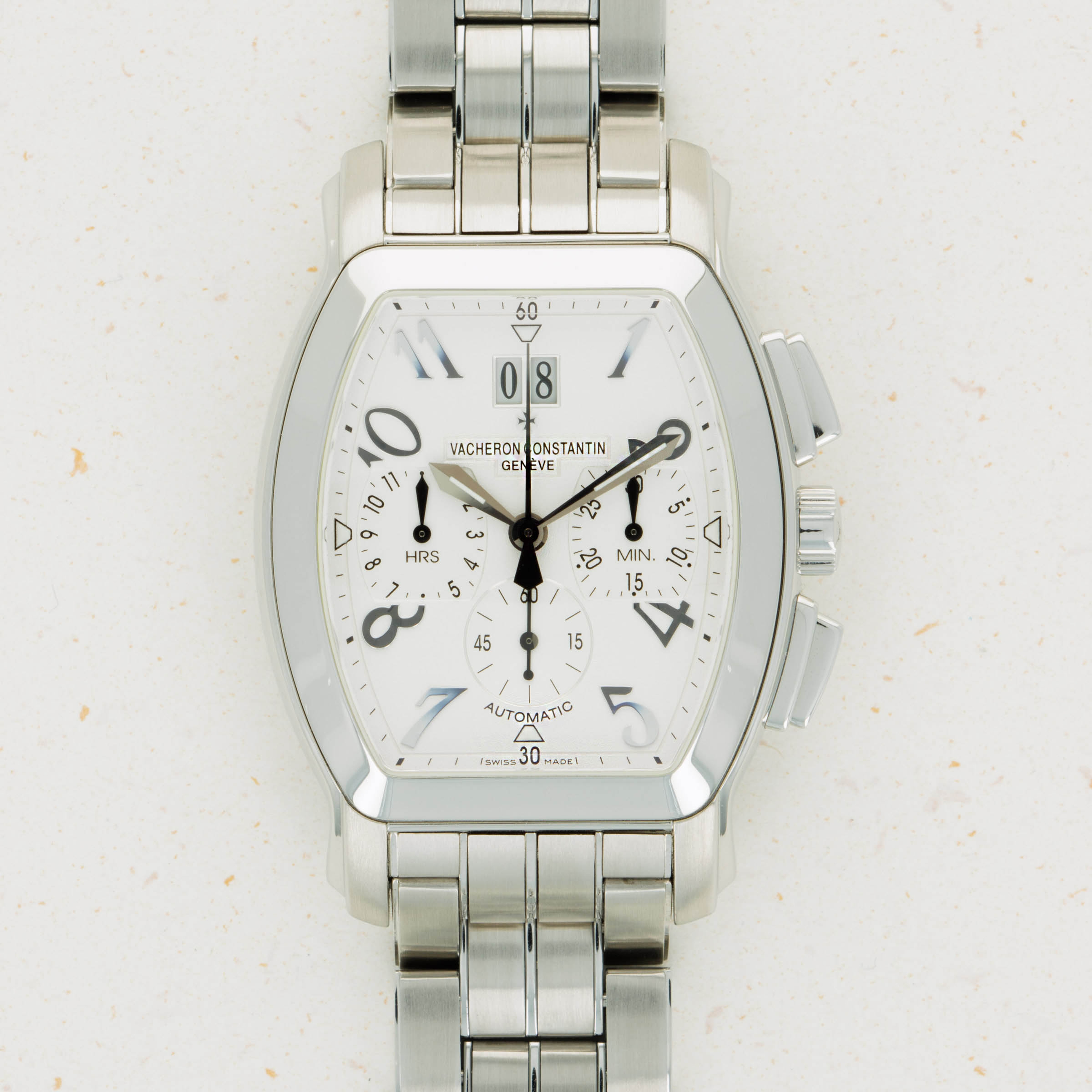 While Vacheron’s foray into sports watch territory might be dominated by the 222 and its sibling collection, the Overseas, the early 2000s was calling for a dressier sports watch that blended elegance with impressive capability in a more stylish way. As a result, Vacheron launched the Royal Eagle Chronograph in 2002 as a watch to fit that exact niche. Marketed to younger buyers, like the Overseas, the Royal Eagle was a slightly more classical design than its peer, with its tonneau-shaped case harking back to Vacheron references of old. Made of stainless steel and fittingly sized at 37mm x 40mm, the Royal Eagle successfully breached the middle ground between Vacheron’s typical market of complicated dress watches and the relatively new territory that was sports watches, at the time. Offered with a silver dial featured applied exploding Arabic numerals, recessed subdial and a large date, the Royal Eagle is as legible as one will need, but with the added spice of being rather unique and confident in its design.