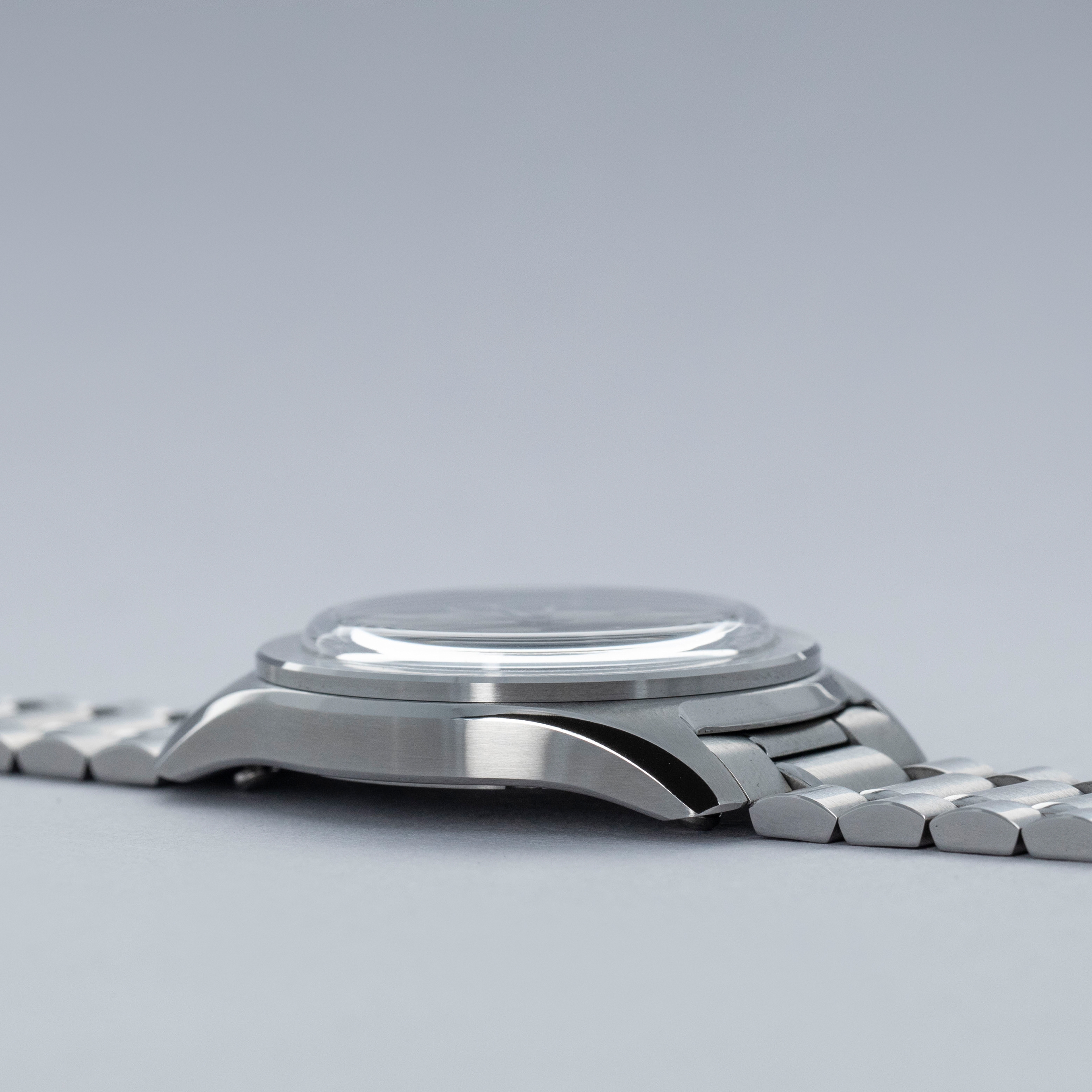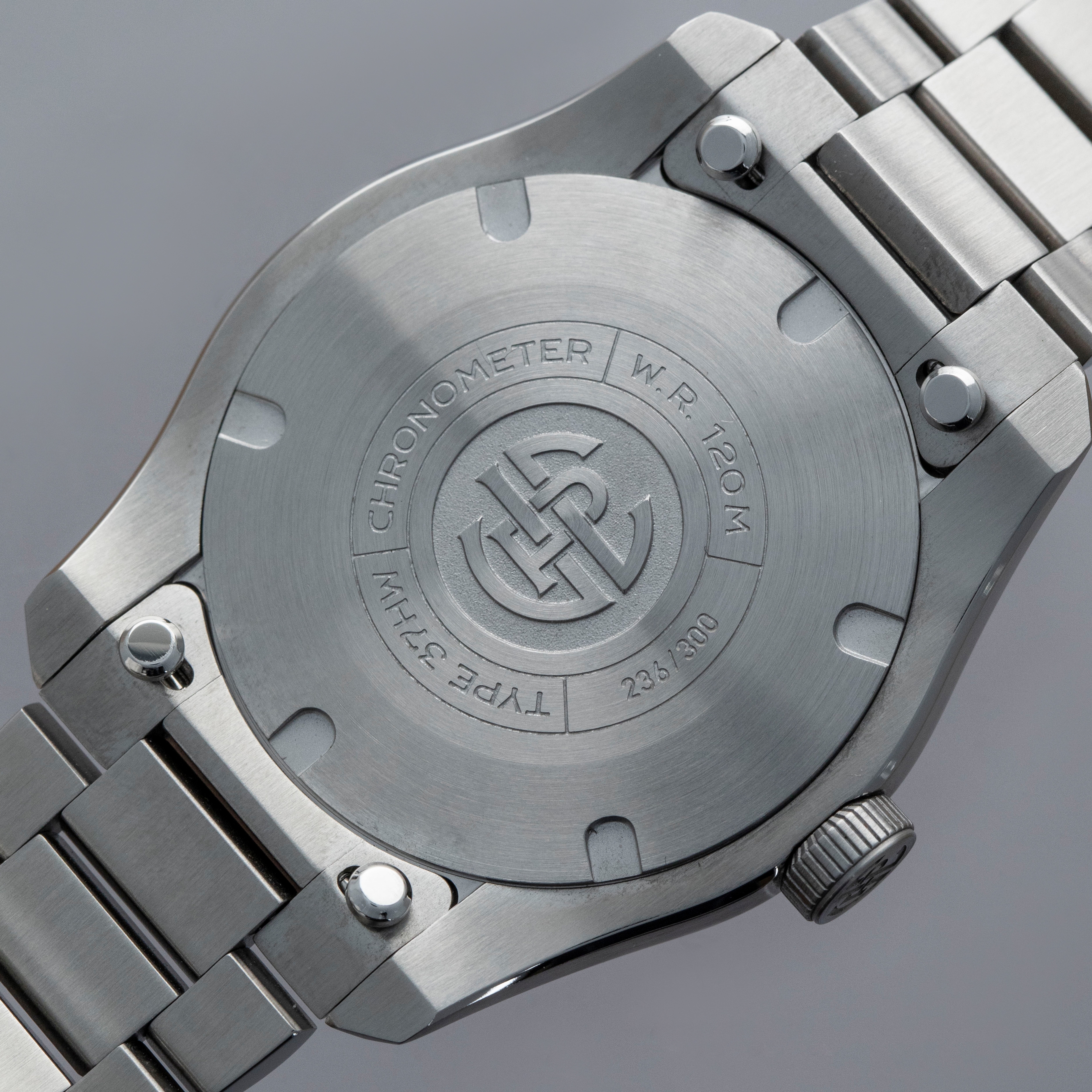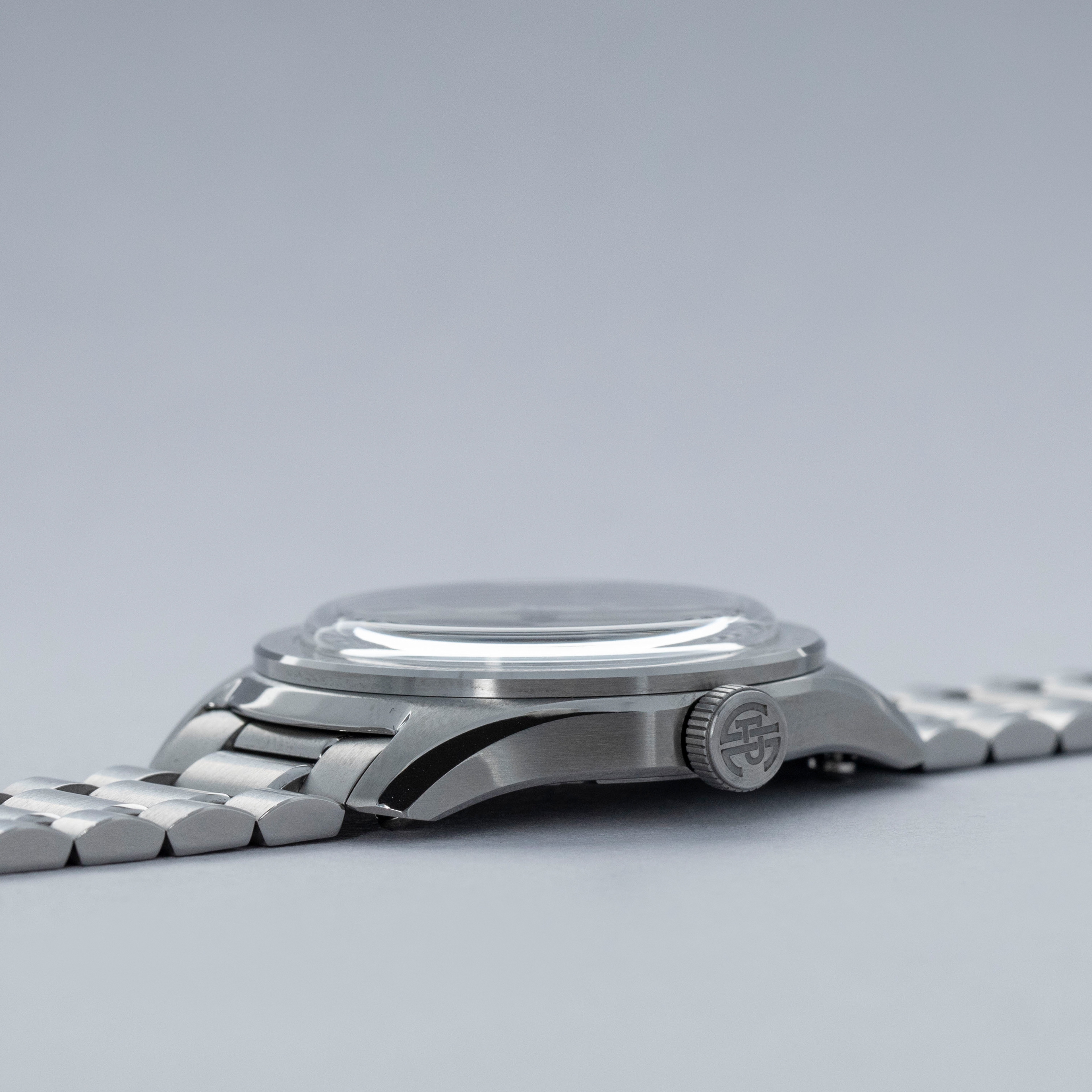 Featuring a carefully thought-out case which includes an array of polished chamfers and brushed surfaces, the 37HW's 37mm x 9.8mm stainless steel construction is the perfect representation of how to dress up a sporty case design.