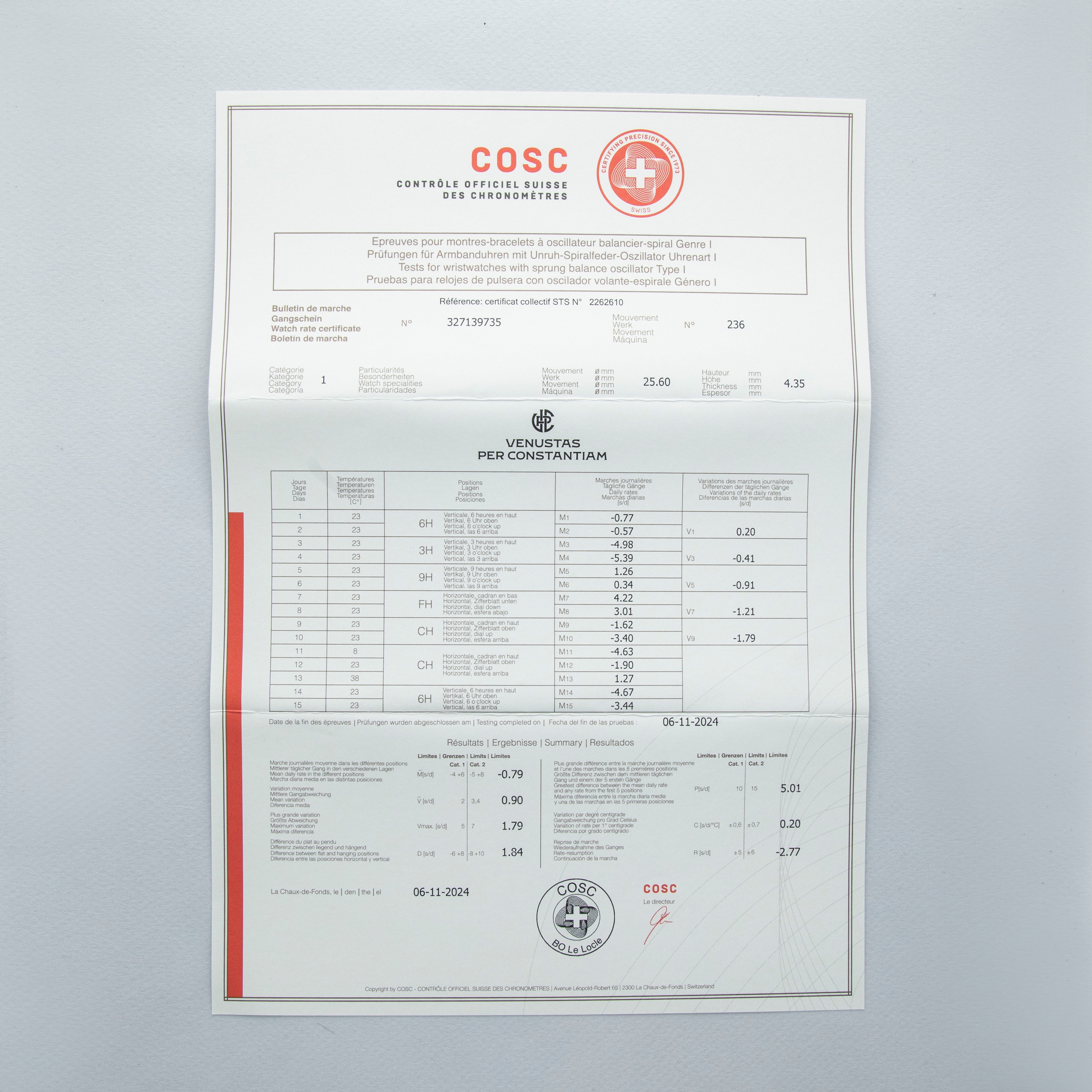 This reading was taken (crown down) with a ONEOF Accuracy Boutique Edition timing machine at time of cataloging. It is provided as a courtesy only, and shall not be construed as a warranty or guarantee of any kind. Please refer to our terms and conditions of sale for more information.
