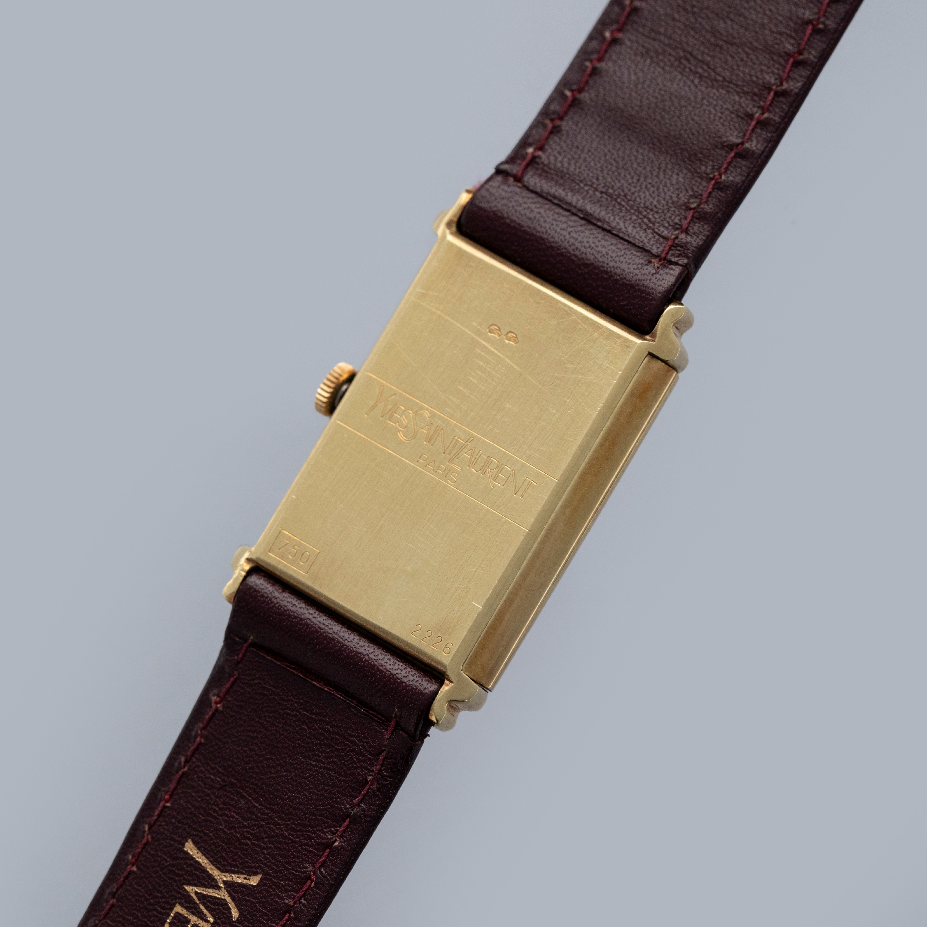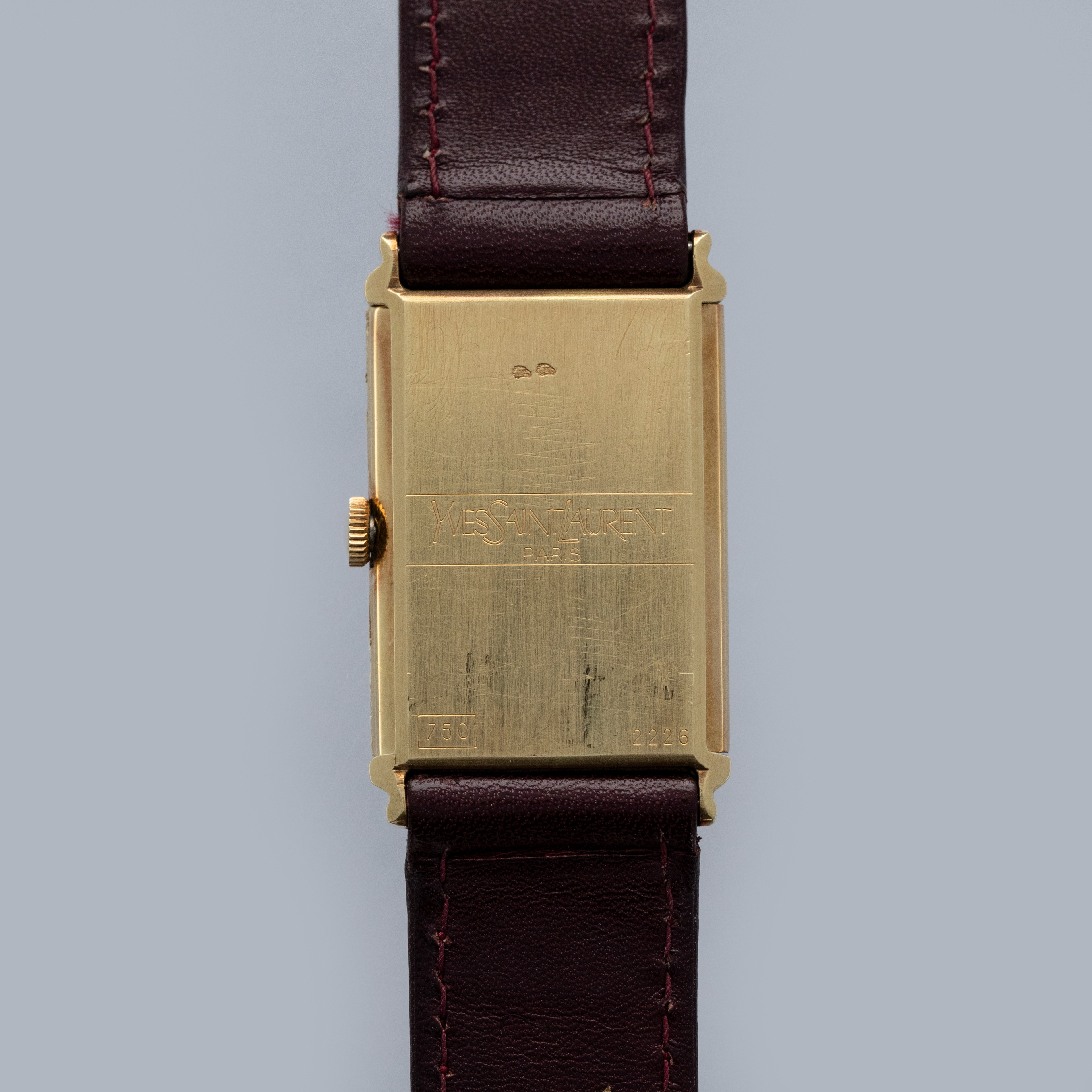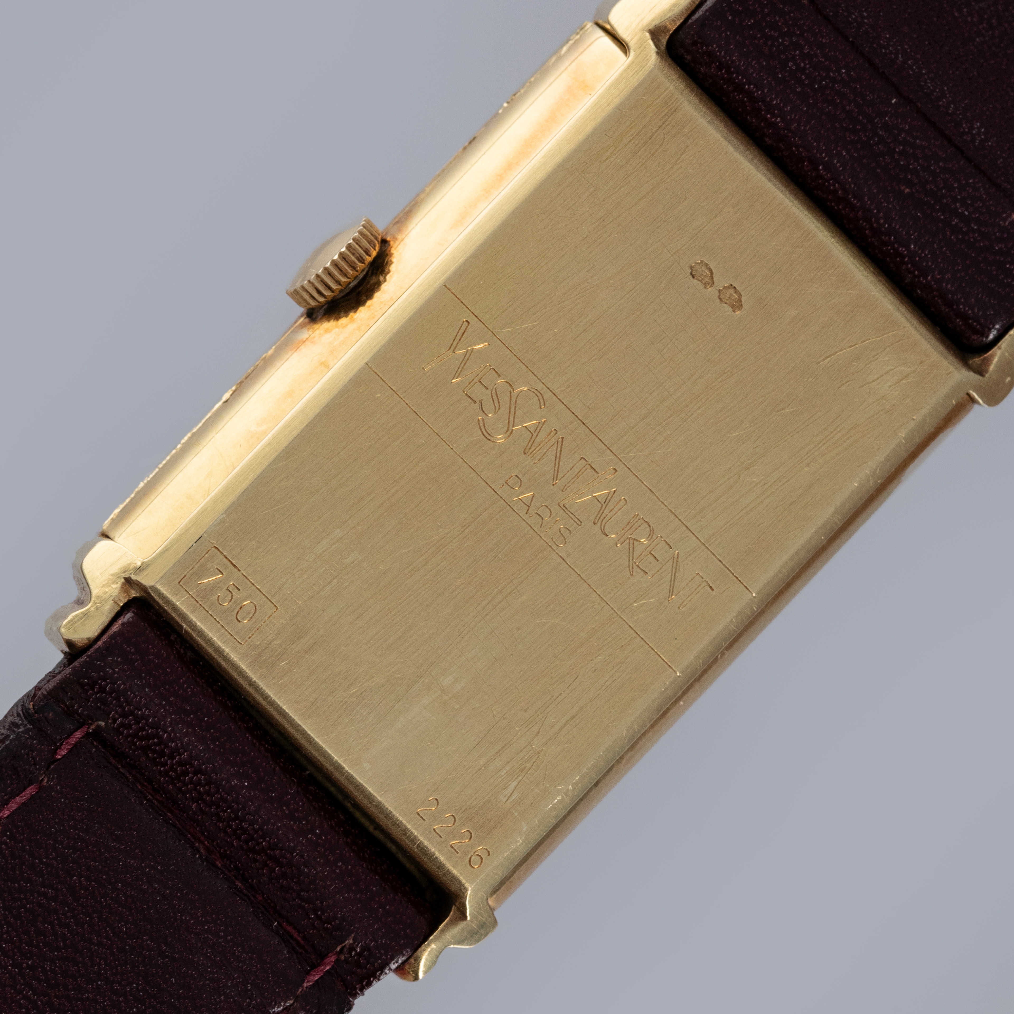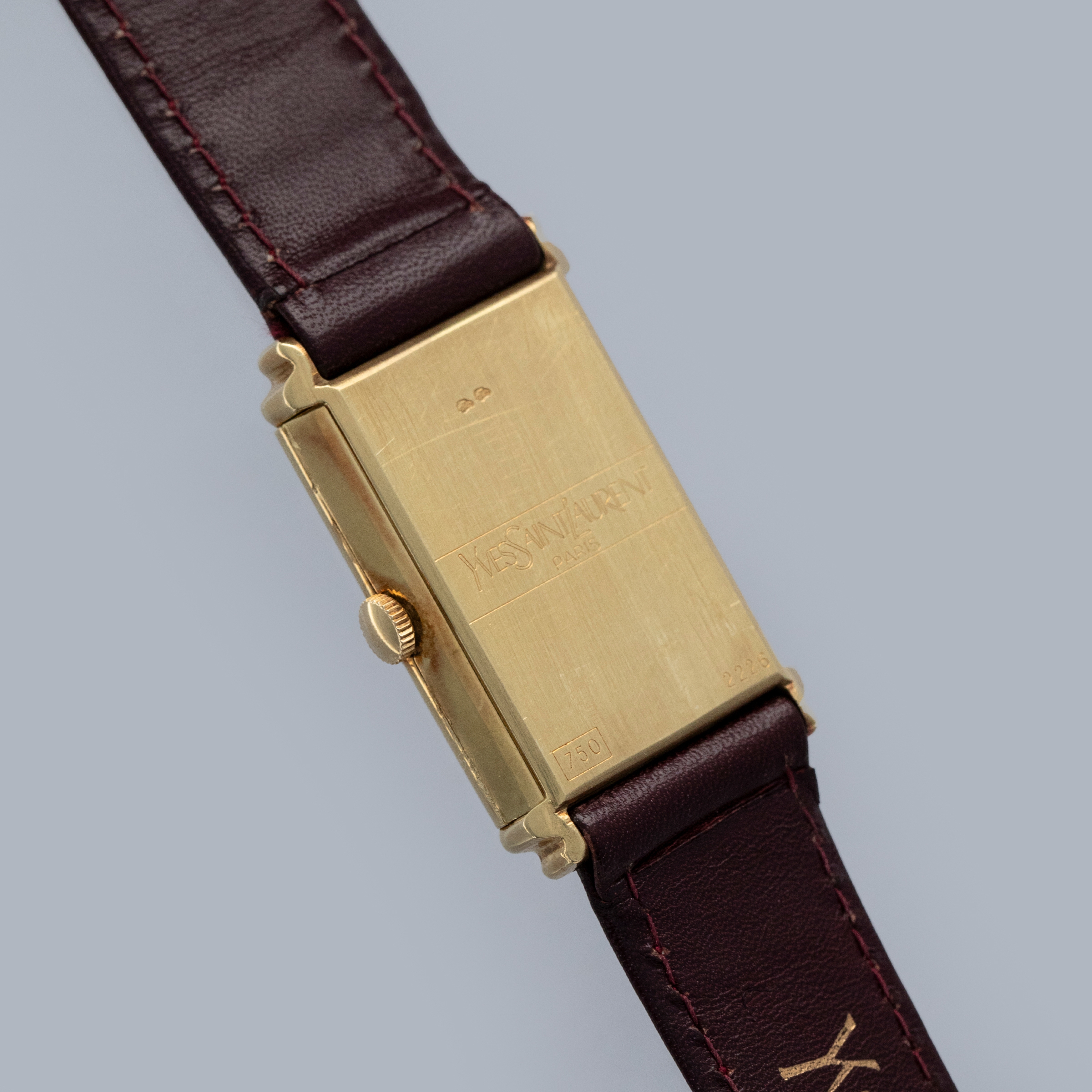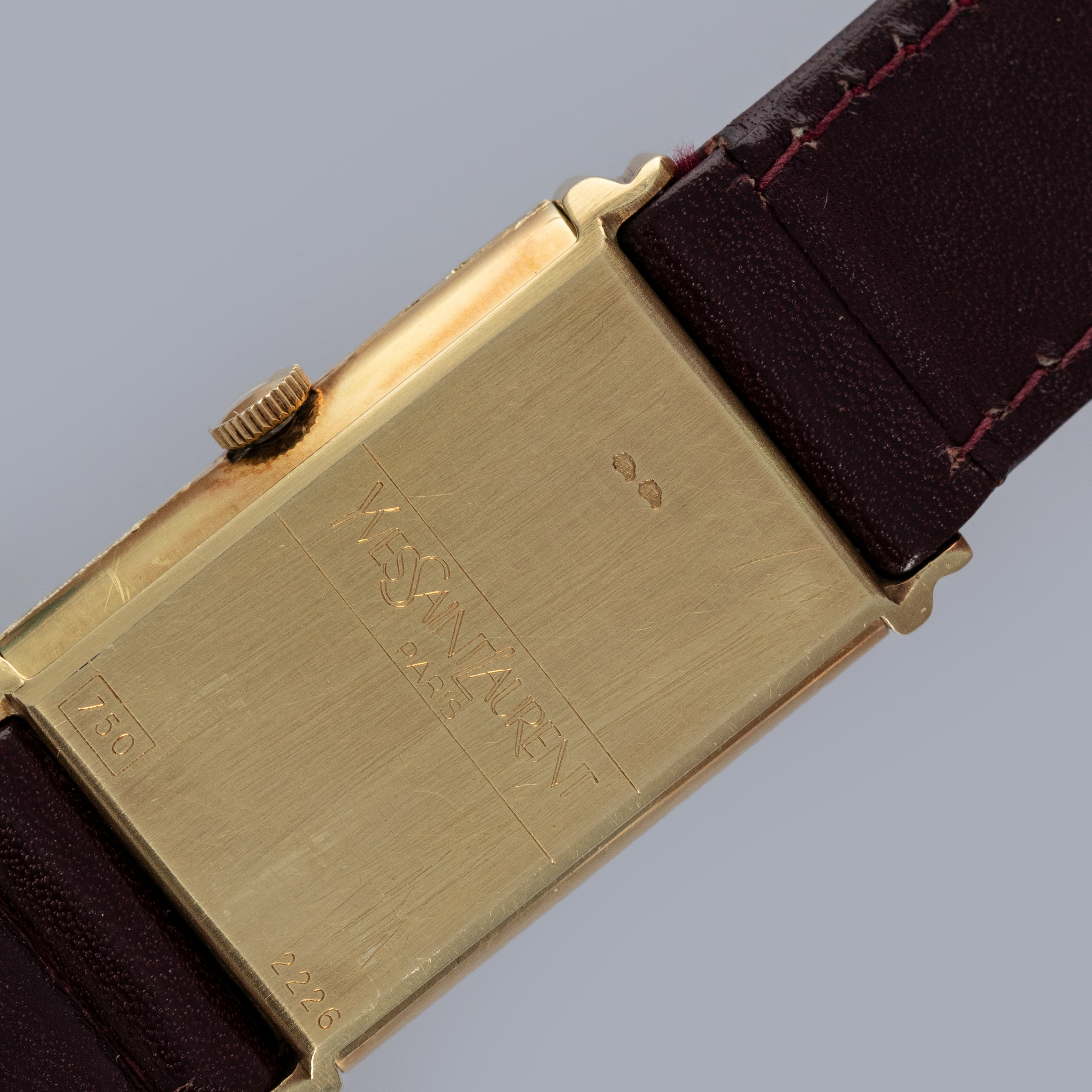 Watch is overall in excellent condition. The yellow gold case has some surface scratches, but the case profile remains very strong. There are some nicks on the crown side in the seam where the case opens. There is also some oxidation around the edge of the crystal. The case back has very well-defined engravings and hallmarks, with some scratches and marks. The dial is excellent, with a couple of minor marks and very clean blackened hands. The watch is fitted with its original YSL leather strap with a yellow gold clasp in excellent condition. Please note that the watch ticks at the time of cataloging, but timekeeping is poor and a service is recommended.