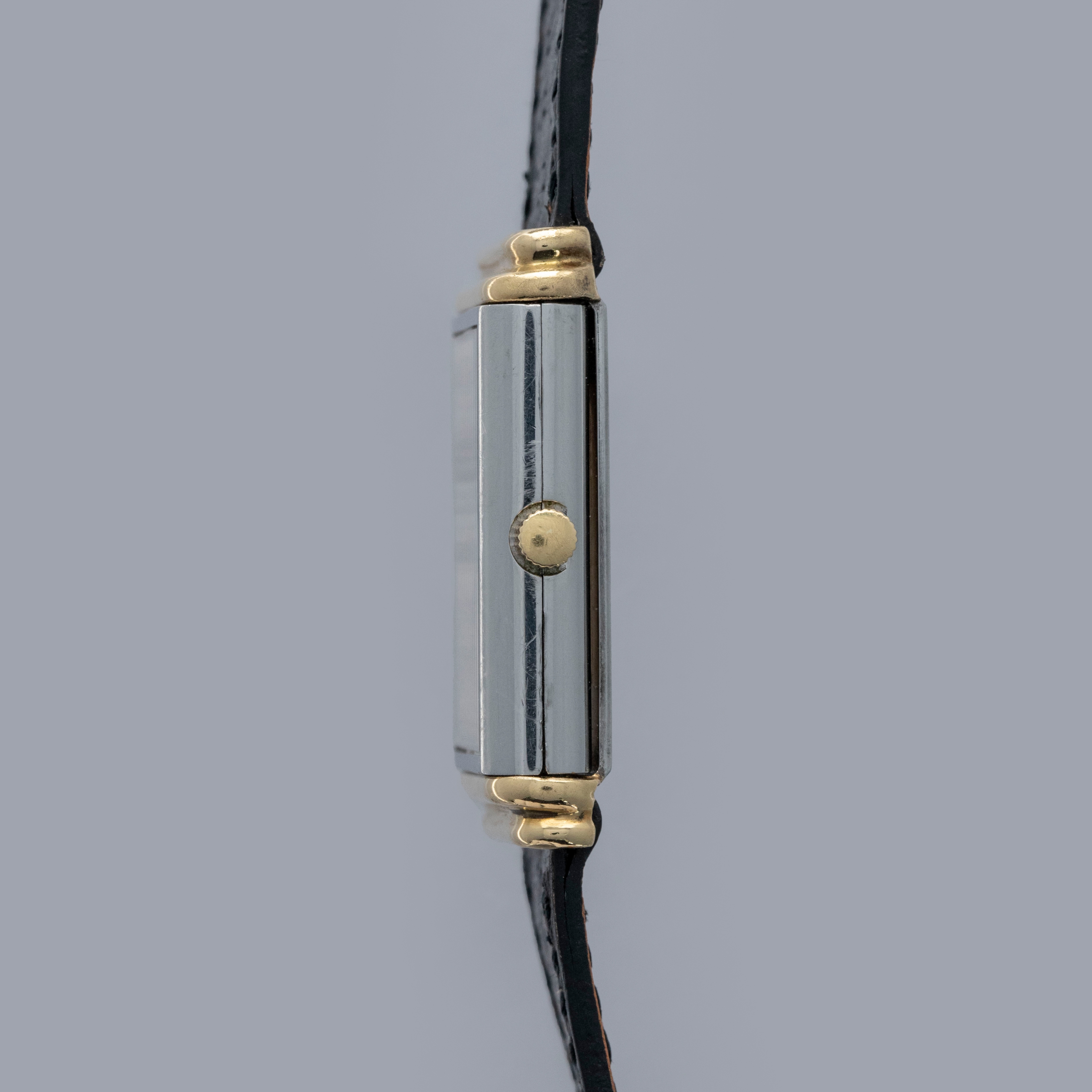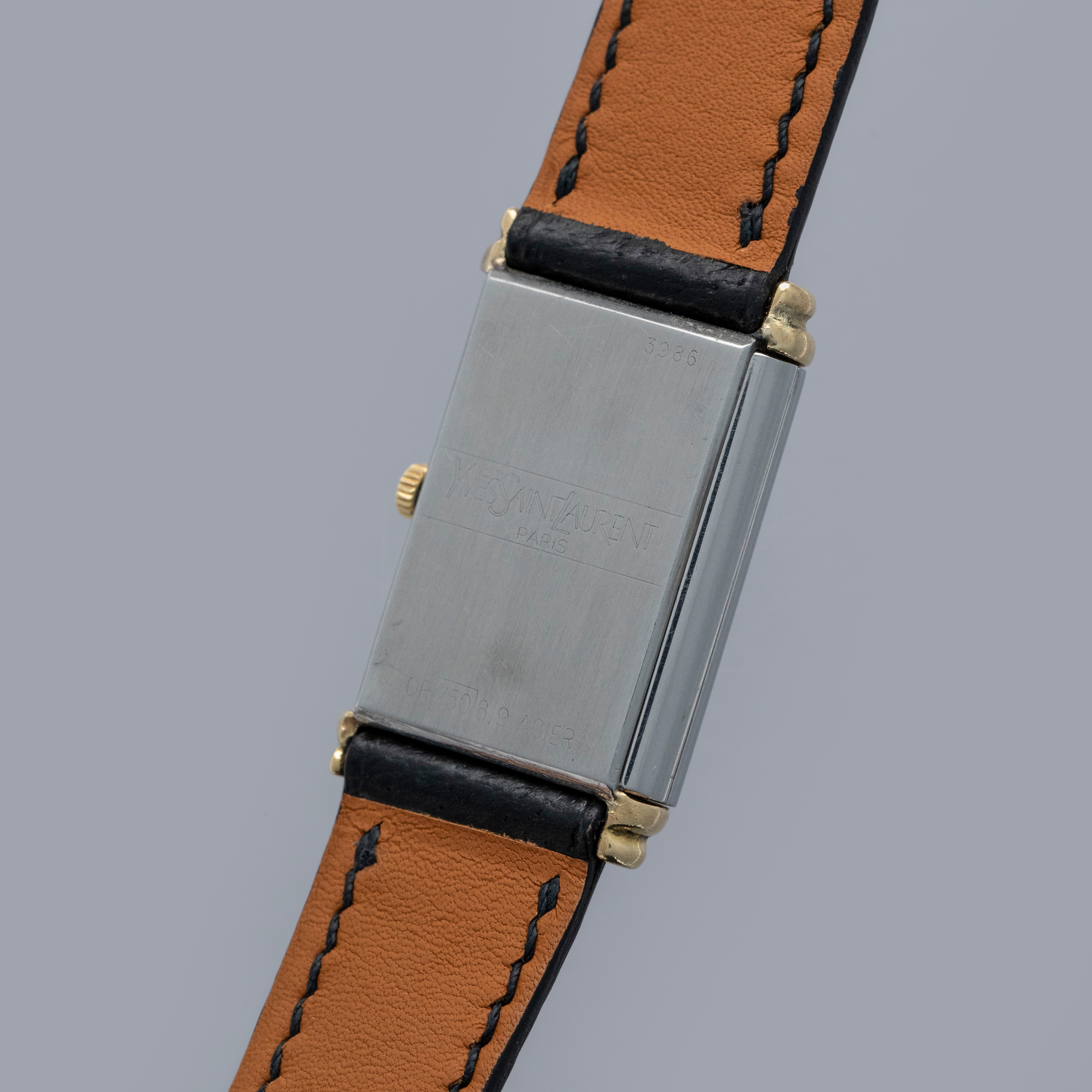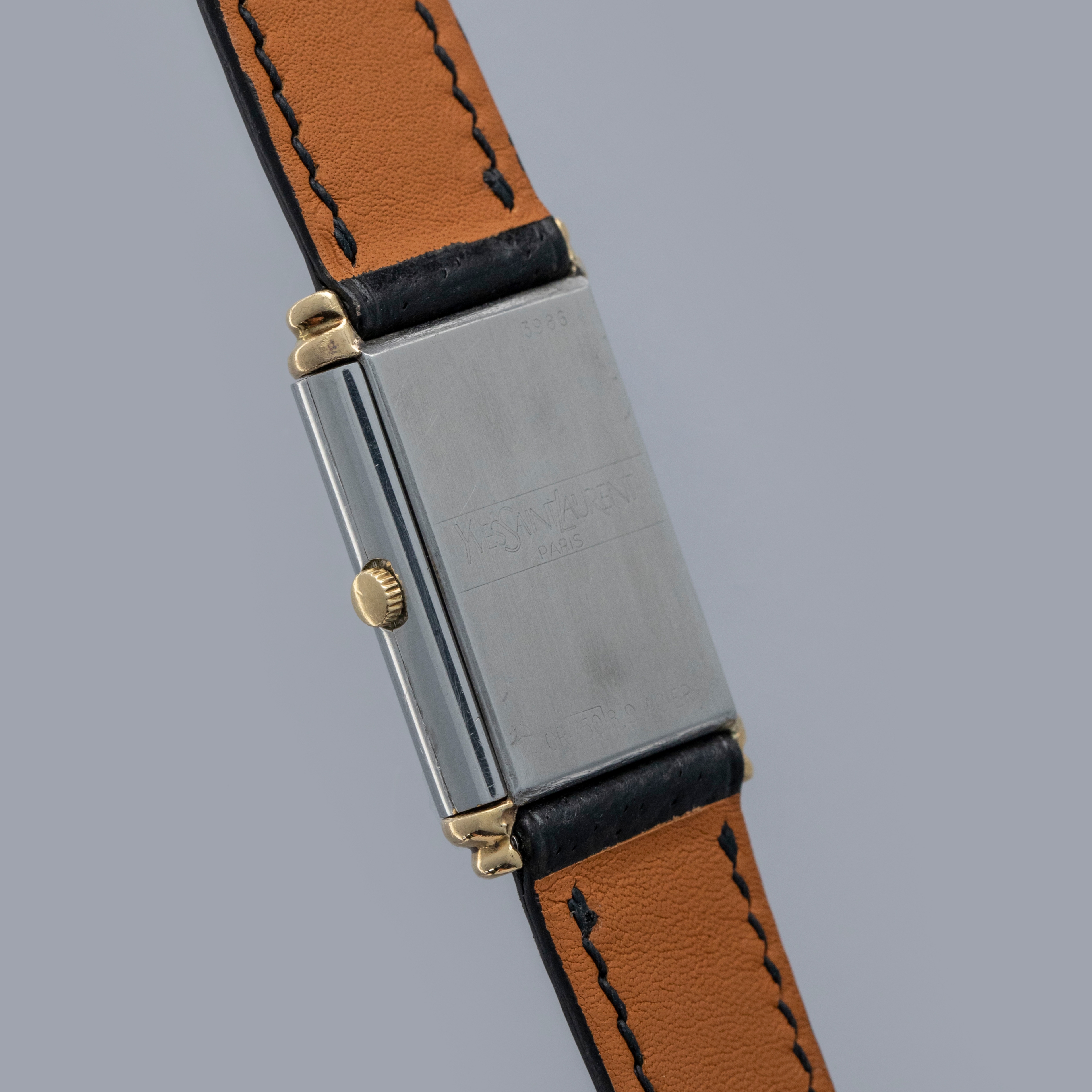 Sporting a reversible design and elegantly stepped lugs, the YSL Reverso's 18kt yellow gold and stainless steel case is both classical and elegant.