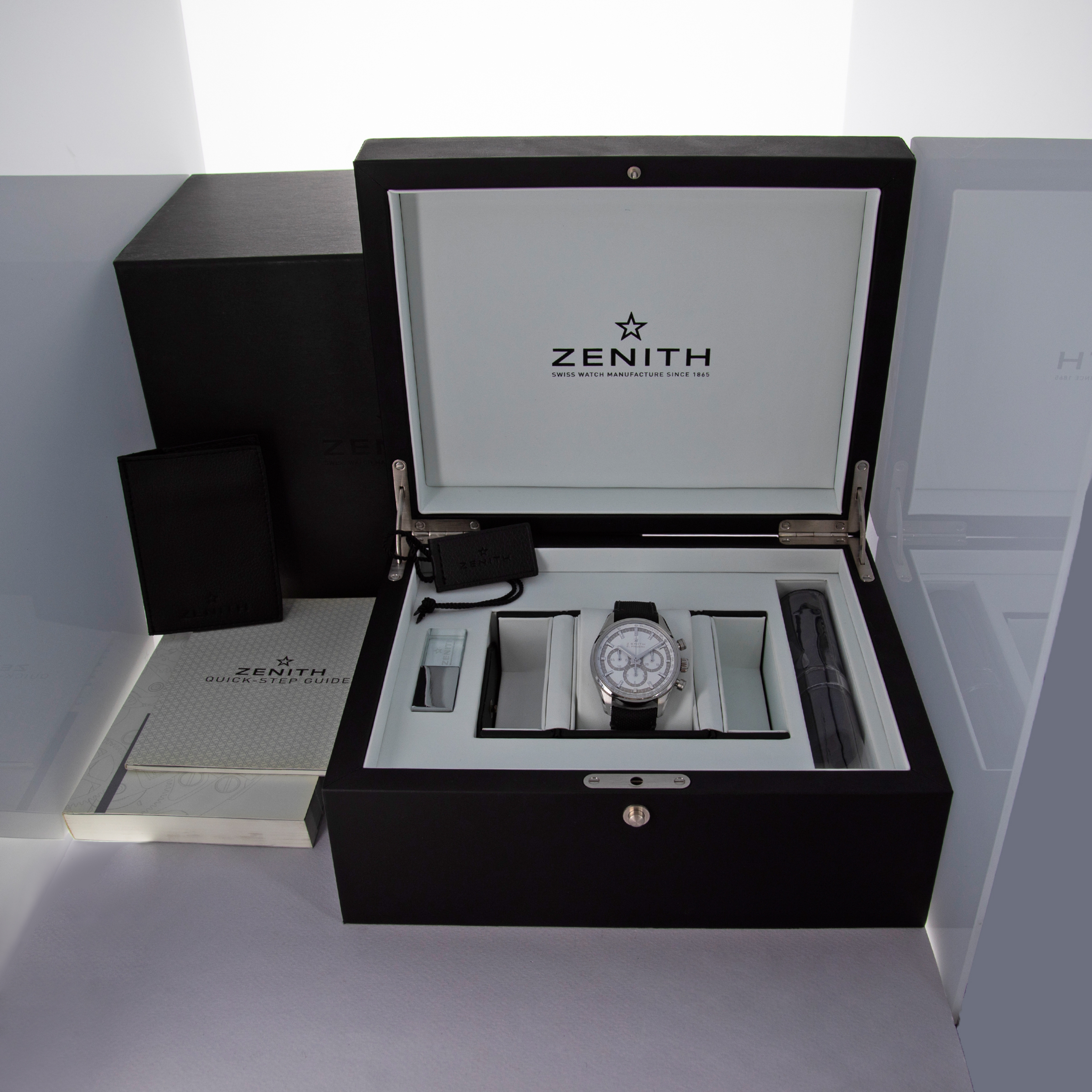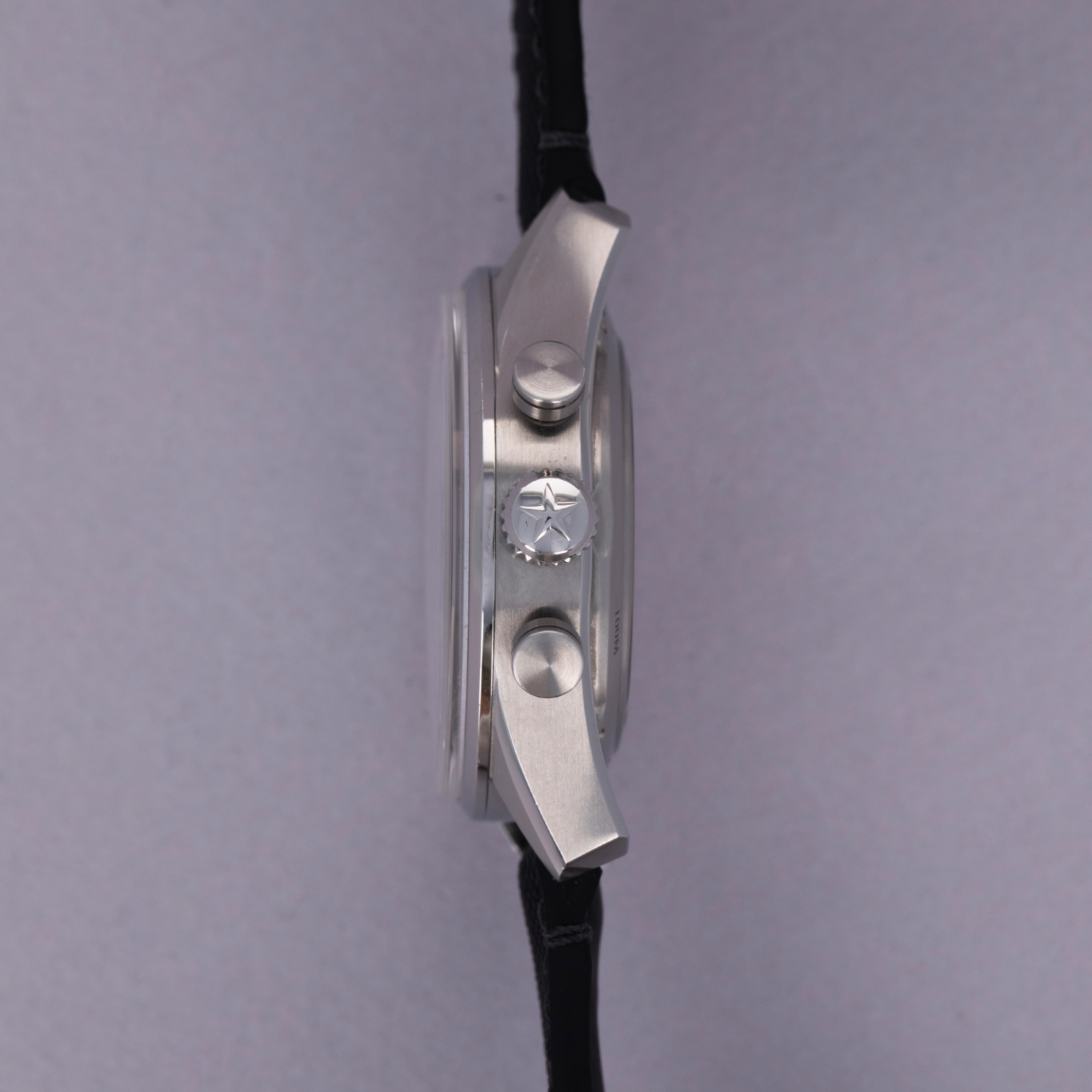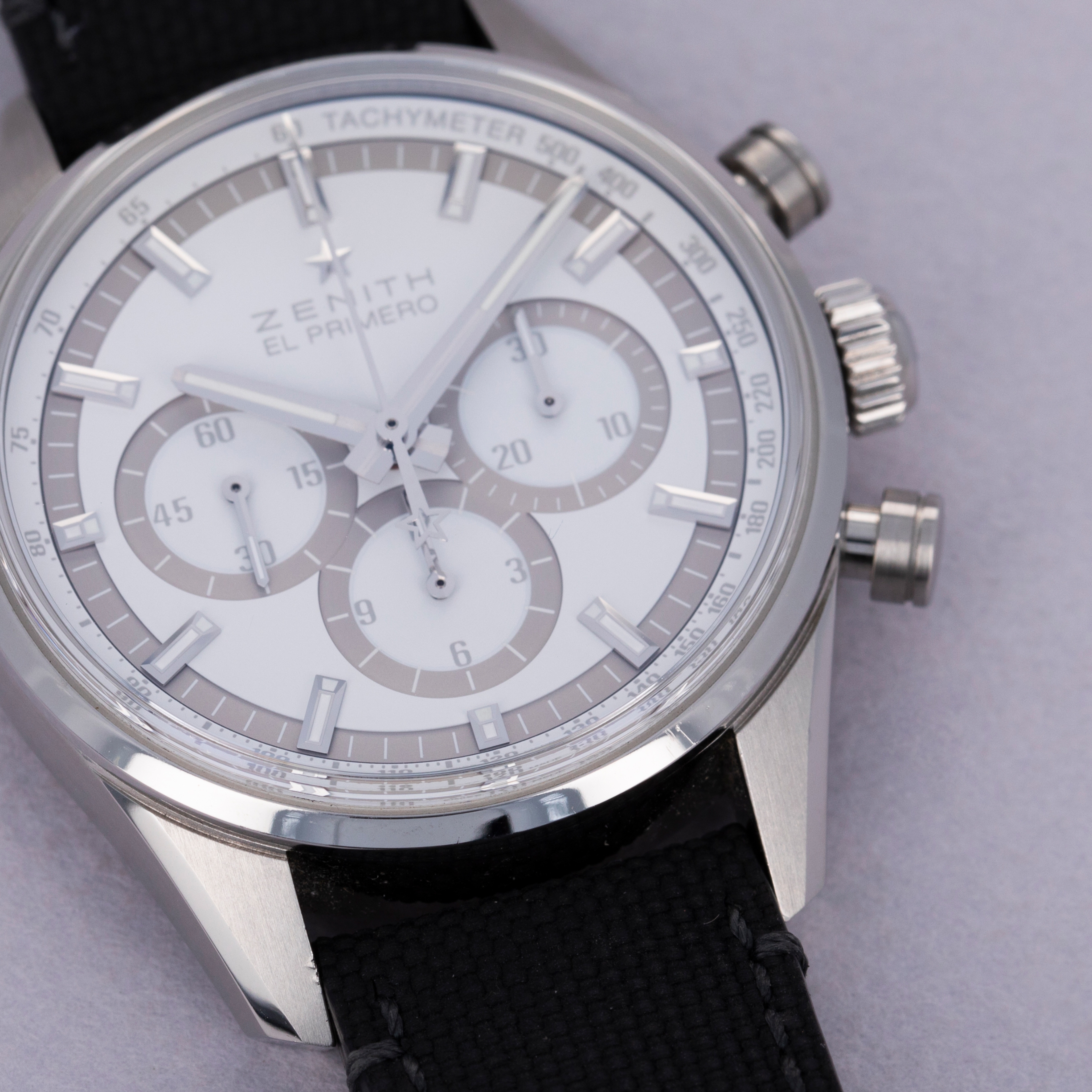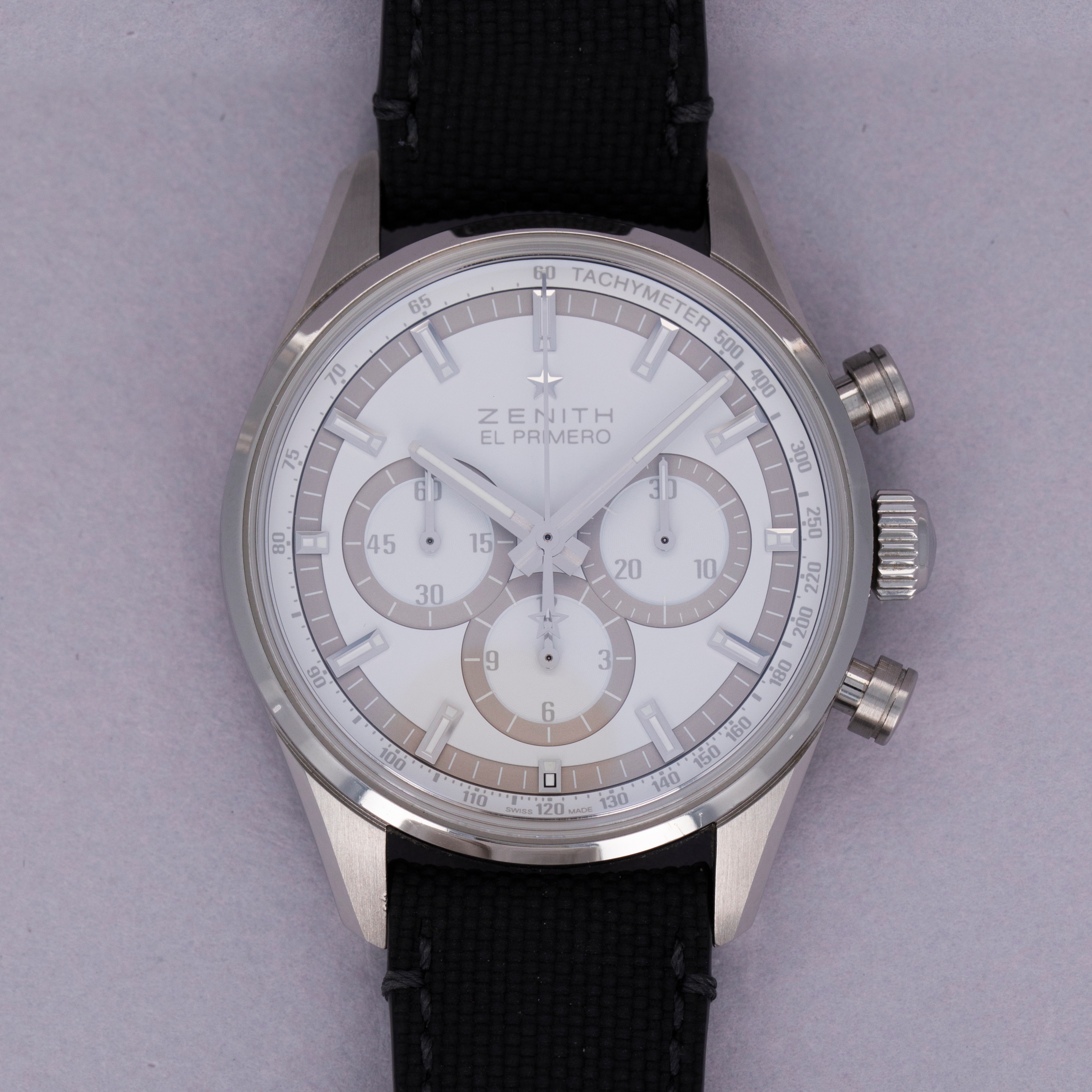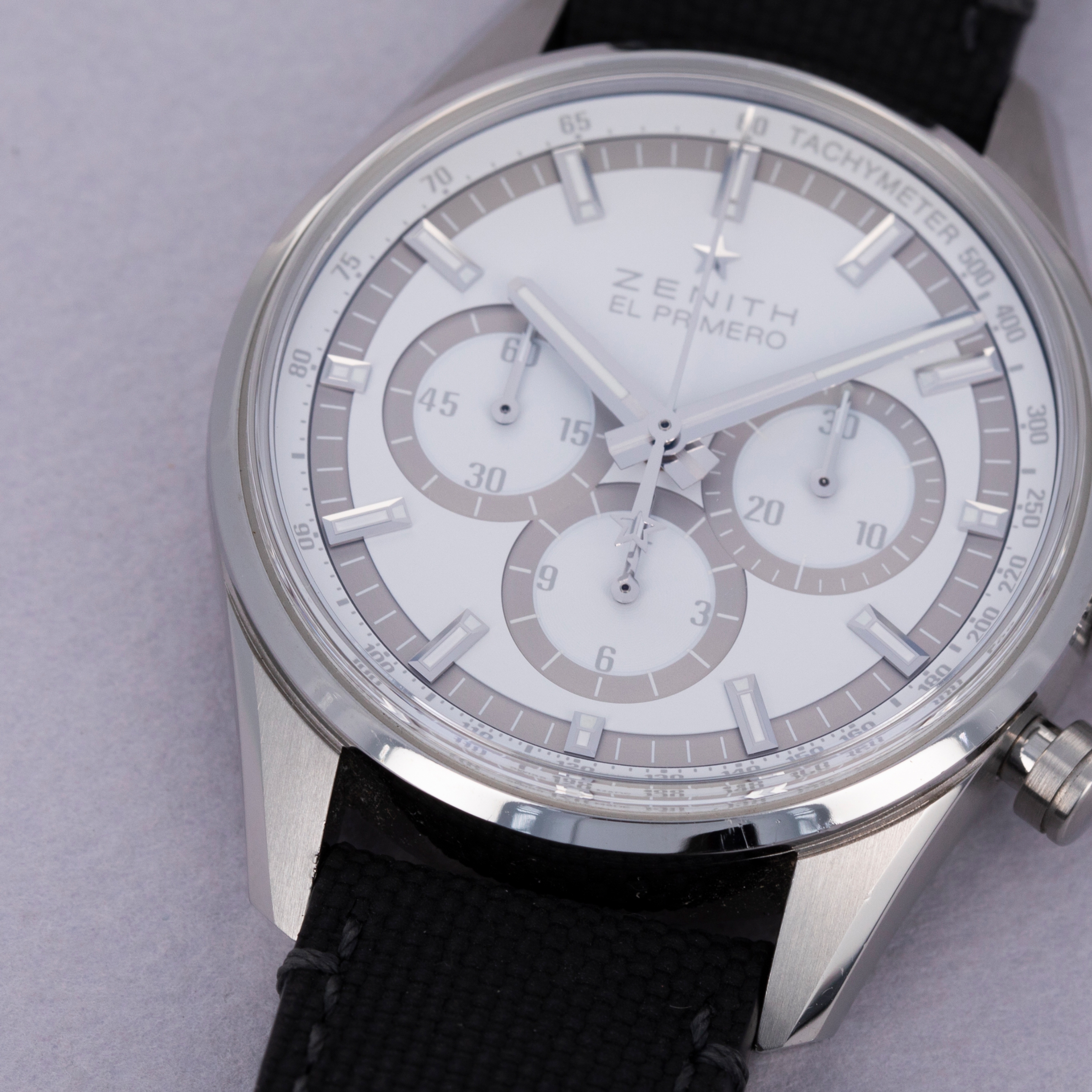 Arguably one of the most famous chronograph makers in all of horology, Zenith is best-known for their El Primero automatic chronograph movement. From its status as one of the first automatic chronograph movements ever made (depending on who you ask) and the base movement to feature within the second-generation Rolex Daytona, the El Primero is certainly a modern-day icon. Launched in 1969, its incredible hi-beat rate, amazing accuracy and technical prowess ensured that any watch it was inside was one of the best chronographs money could buy. Offered here we have the Zenith Chronomaster El Primero C.01 Collective Edition ref. 03.2152.4061/80.R825. Launched in 2019 as a limited edition collaboration with the Silicon Valley-based watch club of just 50 pieces, the C.01 combines the Chronomaster’s impressive horological heritage with the C.01 Collective’s tech-inspired aesthetic through its clean silver and white dial, designed to emulate the clean user interfaces that have become a signature aspect of modern tech. Powered by the ever-reliable El Primero movement and housed within the Chronomaster’s timeless 38mm stainless steel case, the C.01 is a wonderful combination of new with old.