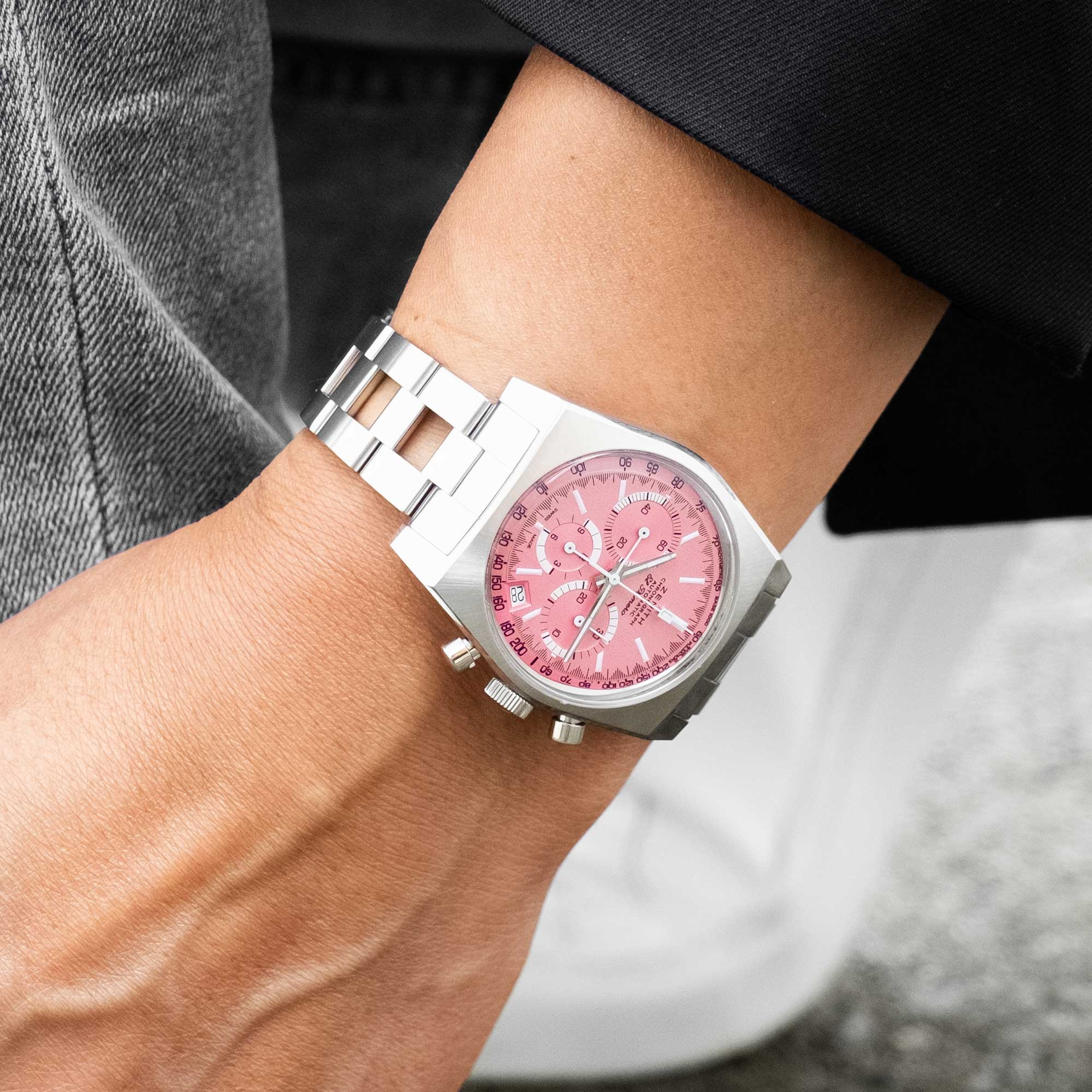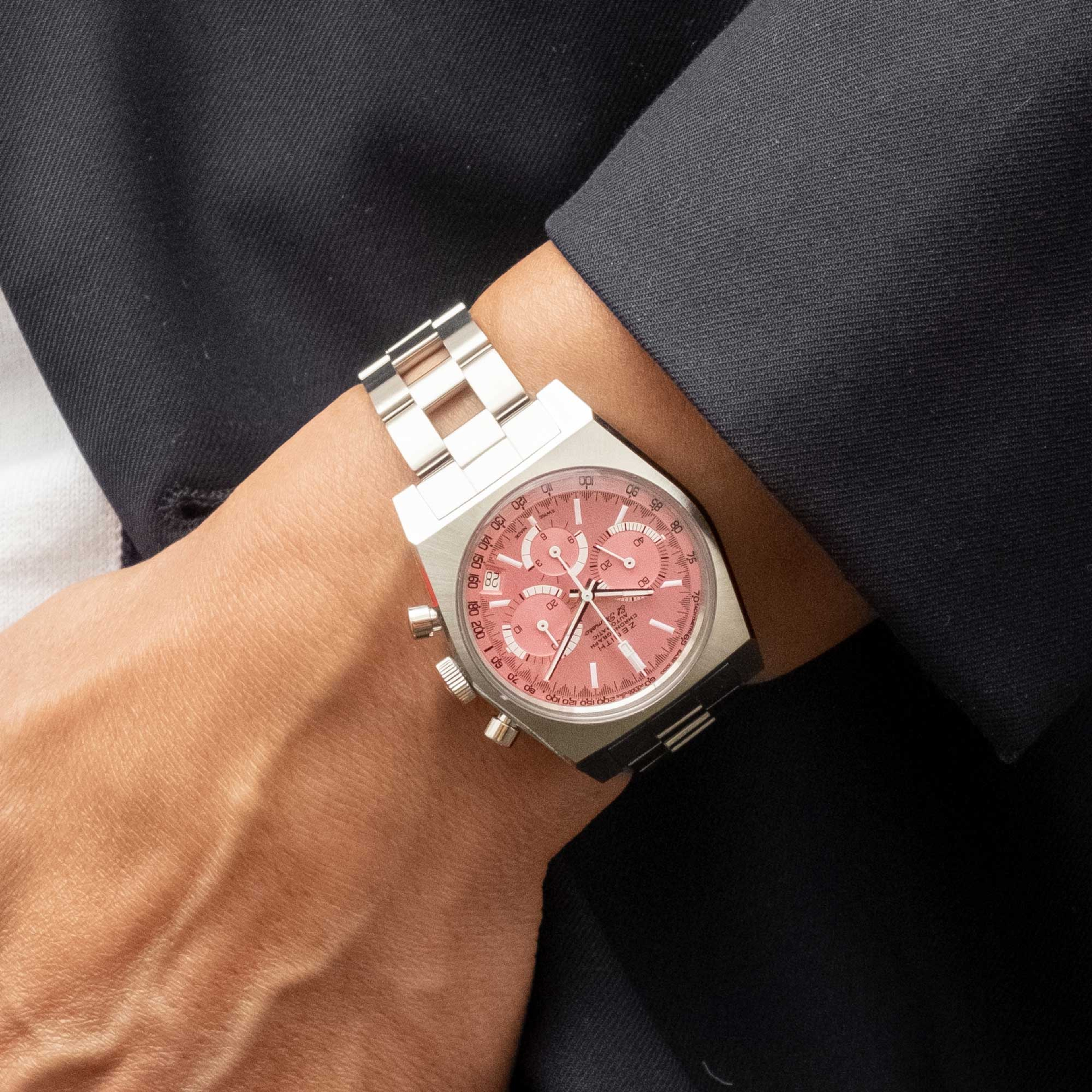 Zenith is honoured to participate in a worthy auction of this nature, driven by some of the greatest names in watchmaking media. With its brushed pink dial echoing breast cancer awareness, the one-off Zenith Chronomaster Revival A3817 “Cover Girl” is a reinterpretation of an iconic reference, and we are delighted and proud to devote it to the Rake and Revolution Pink Dial Project in support of fundraising for a disease which affects millions of women across the globe annually.