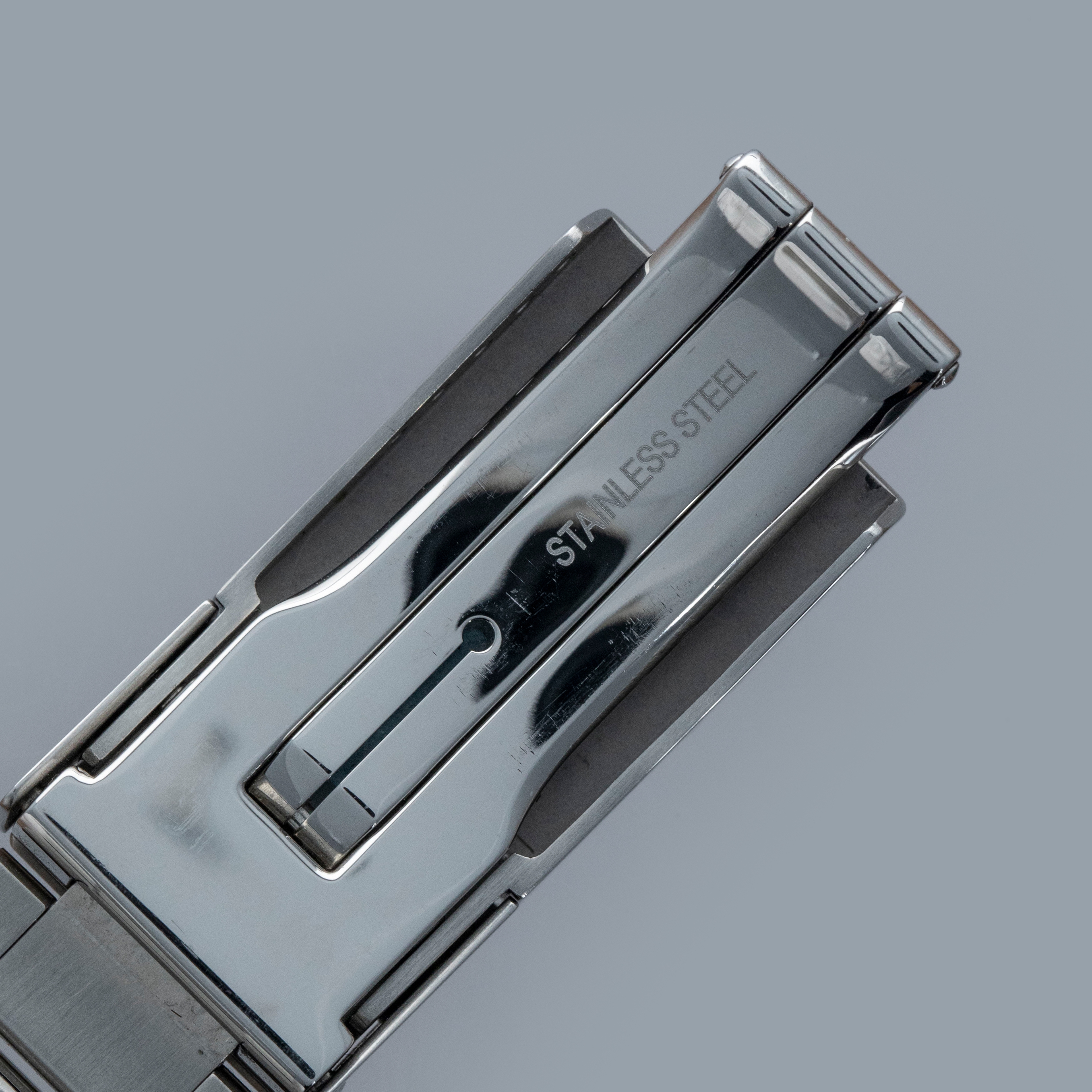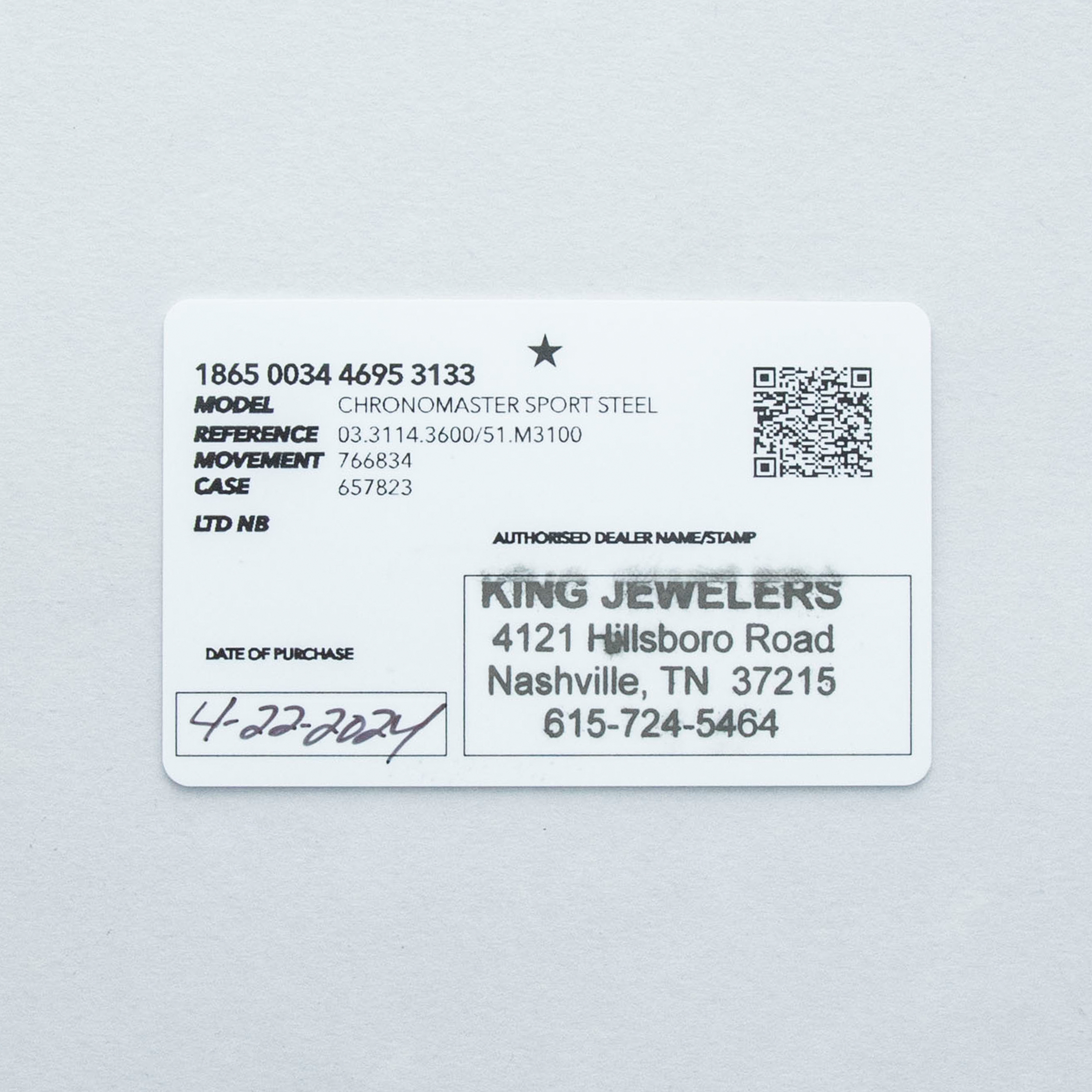 Watch is in overall like-new condition. The case shows only light signs of wear or handling. Comes complete with box and papers. There is a printout of an extended warranty validation until April 2029. The bracelet is fitted with 16 links, 6 of which are removable, and fits approximately an 8” wrist.