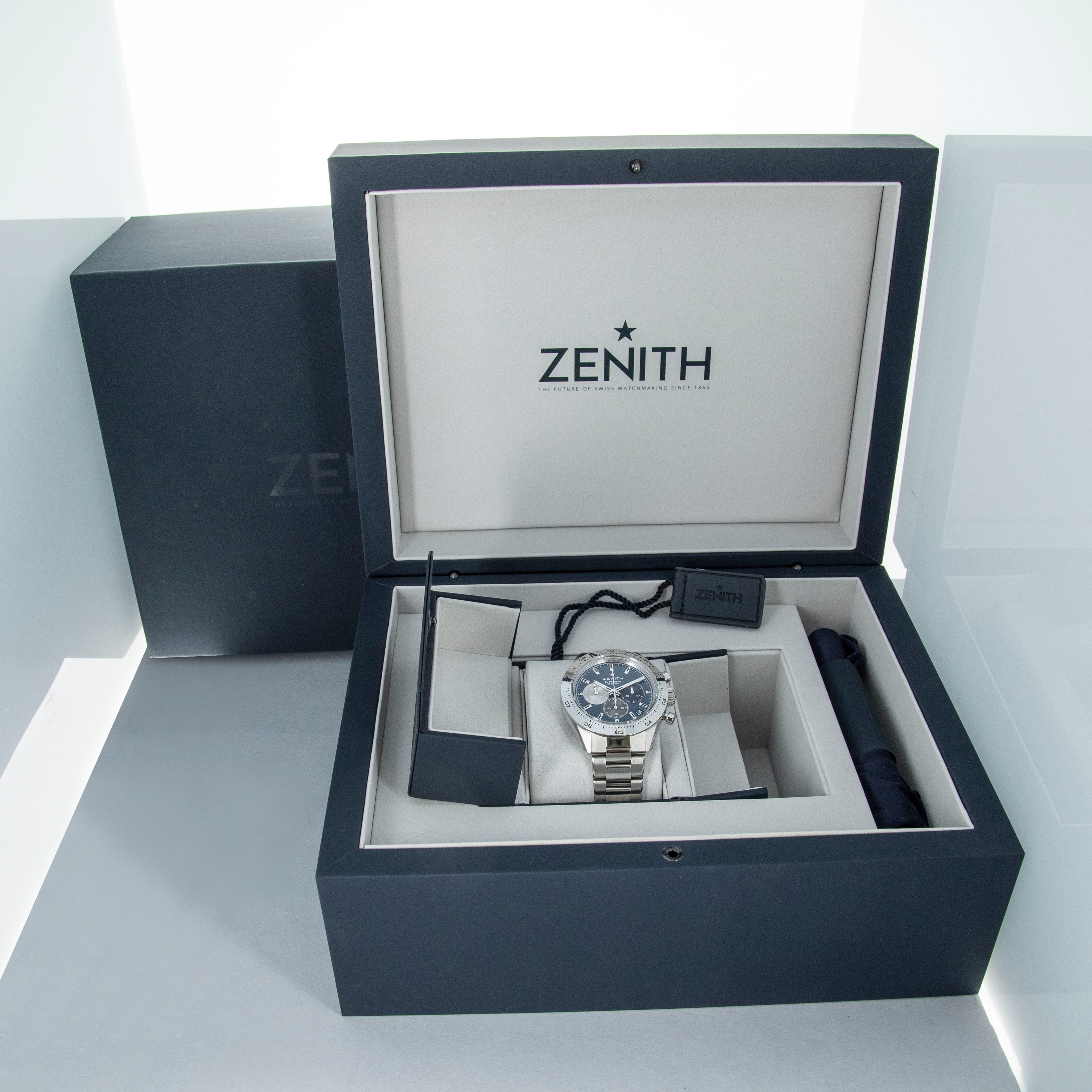 Arguably one of the most famous chronograph makers in all of horology, Zenith is best-known for their El Primero automatic chronograph movement. From its status as one of the first automatic chronograph movements ever made (depending on who you ask) and the base movement to feature within the second-generation Rolex Daytona, the El Primero is certainly a modern-day icon. Launched in 1969, its incredible hi-beat rate, amazing accuracy and technical prowess ensured that any watch it was inside was one of the best chronographs money could buy. Offered here we have the Zenith Chronomaster Sport that was debuted in 2023 with a slew of modern design elements that have been combined with heritage-based elements to create a watch that appeals to modern collectors’ requirements for a luxury timepiece while speaking to thoughtful design. As such, the Chronomaster features either a black dial (as opposed to black or silver options that debuted in 2021) with tri-color subdials as Zenith pioneered decades ago, pump-style chronograph pushers and their legendary El Primero chronograph movement that can measure to 1/10th of a second. In addition to that, this timepiece sports a stainless steel 41mm case, a stainless steel bezel and a robust stainless steel bracelet that can safely tackle any wear and tear - as modern collectors have come to expect.
