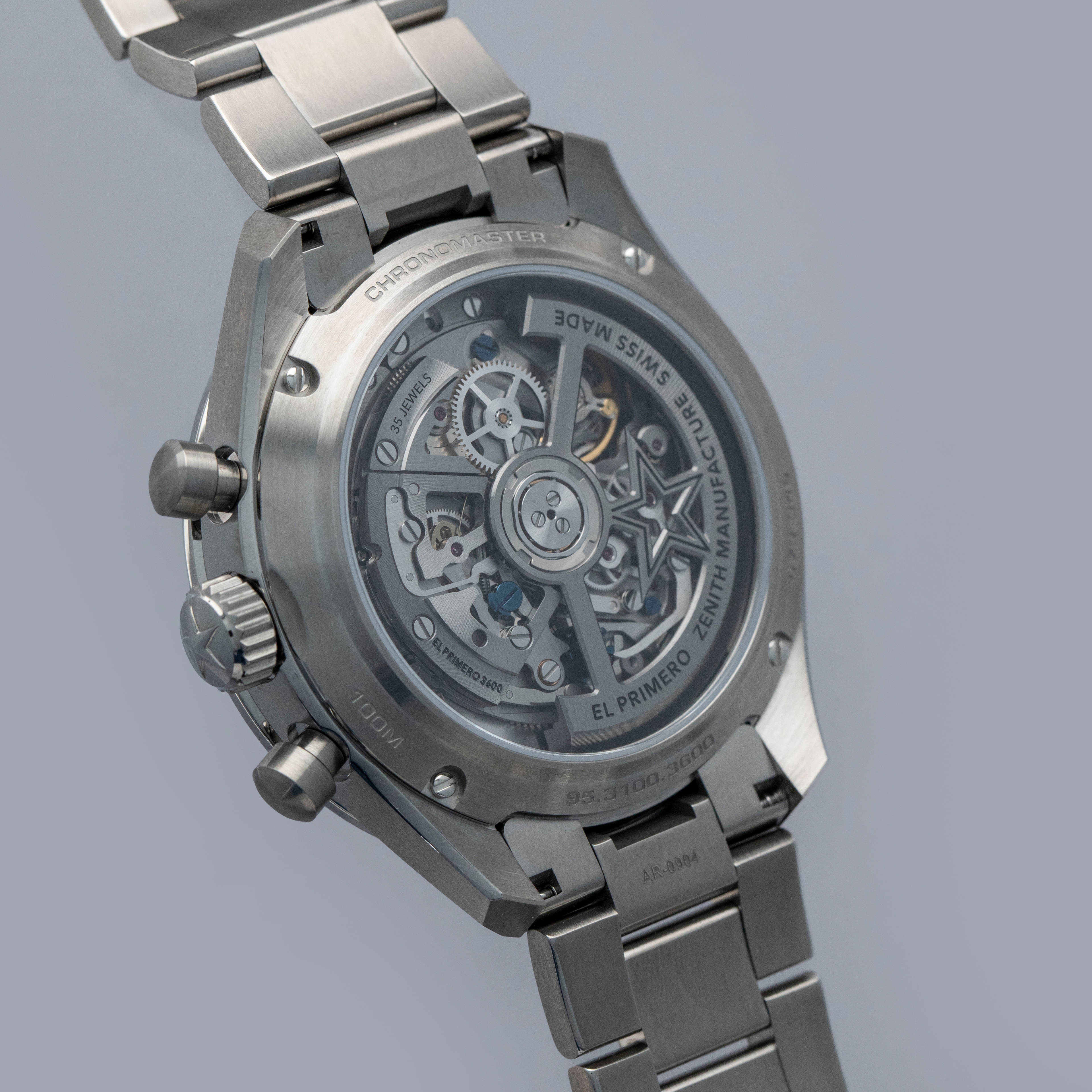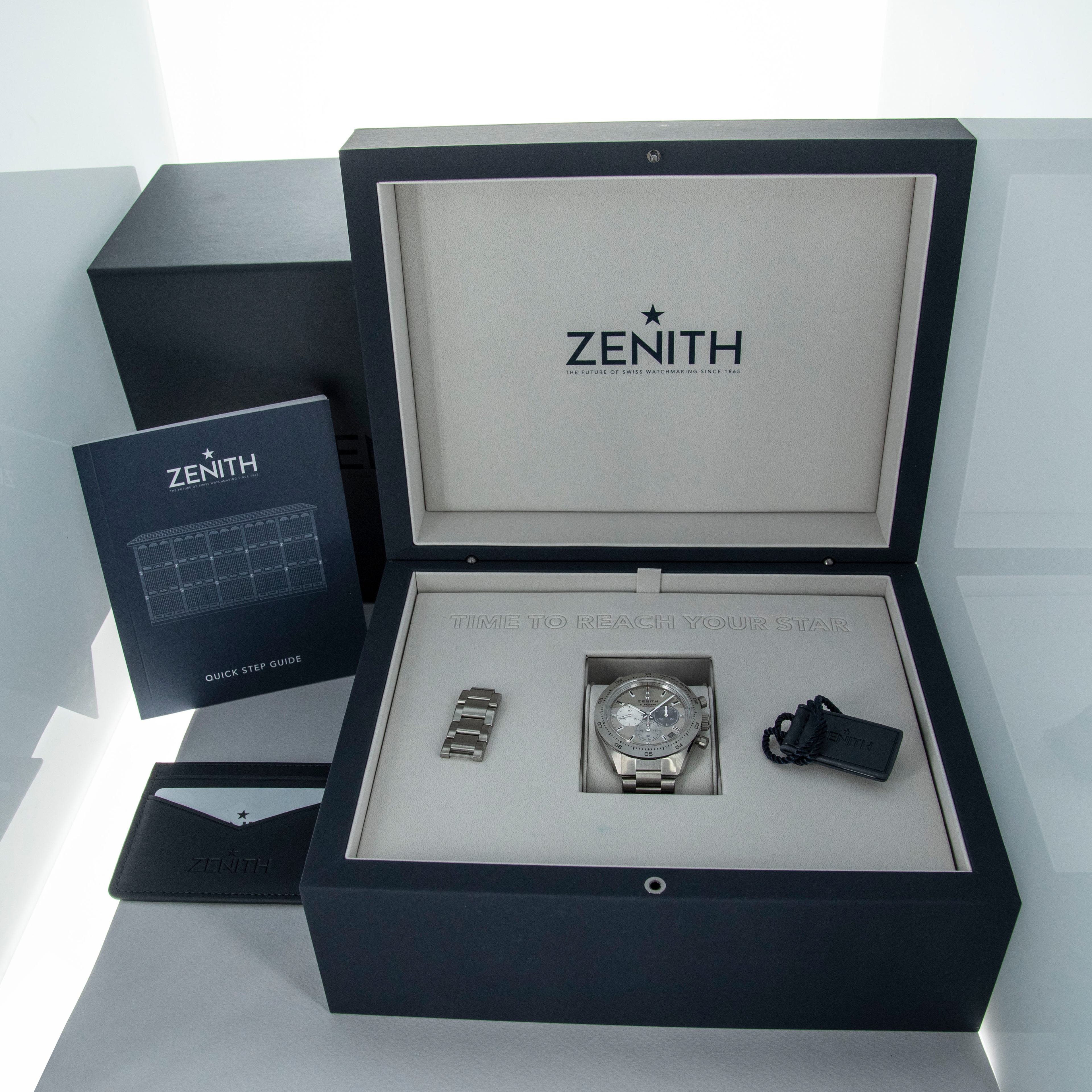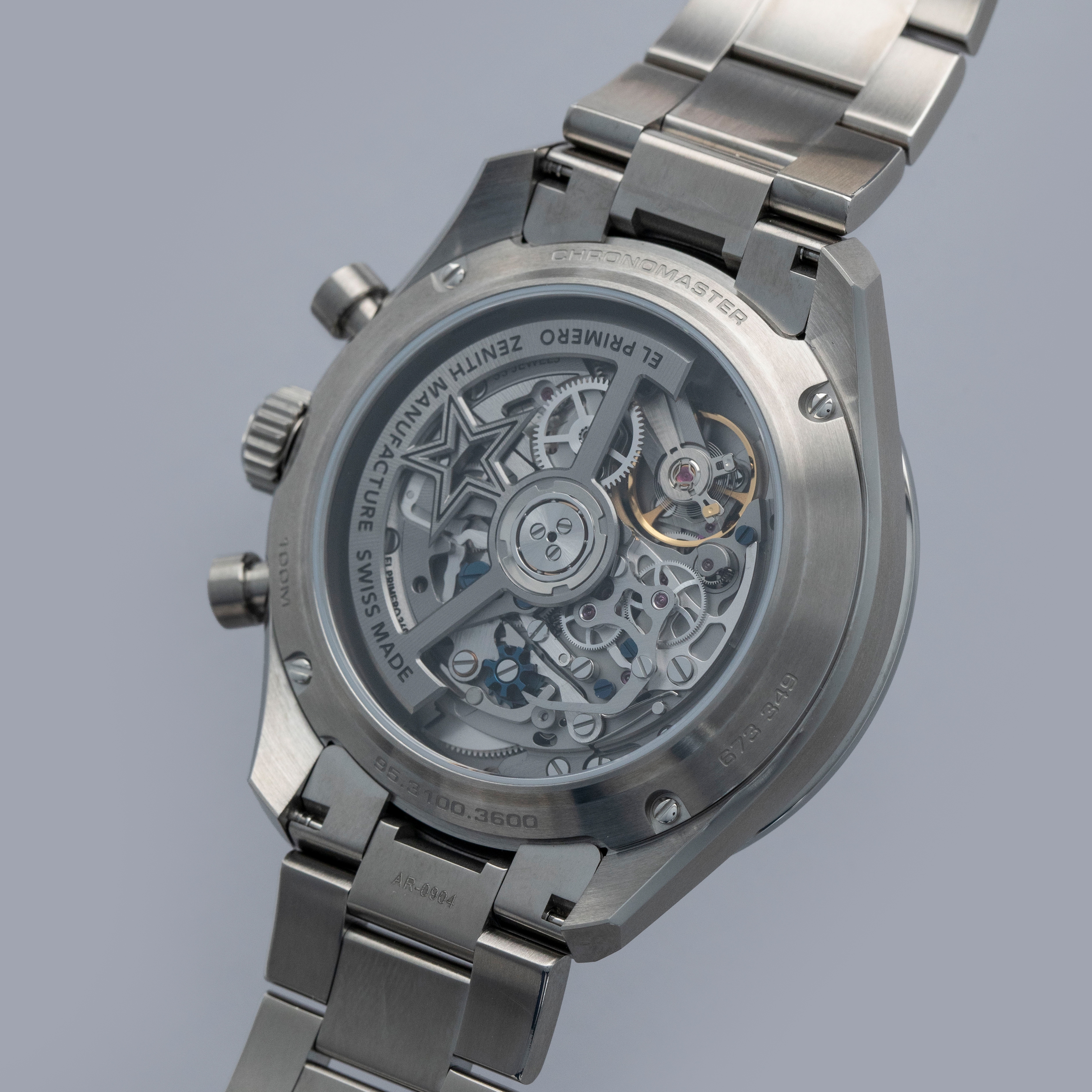 Arguably one of the most famous chronograph makers in all of horology, Zenith is best-known for their El Primero automatic chronograph movement. From its status as one of the first automatic chronograph movements ever made (depending on who you ask) and the base movement to feature within the second-generation Rolex Daytona, the El Primero is certainly a modern-day icon. Launched in 1969, its incredible hi-beat rate, amazing accuracy and technical prowess ensured that any watch it was inside was one of the best chronographs money could buy. Offered here we have the Zenith Chronomaster Sport 95.3100.3600/39.M3100 that was debuted in 2024 with a slew of modern design elements that have been combined with heritage-based elements to create a watch that appeals to modern collectors’ requirements for a luxury timepiece while speaking to thoughtful design. As such, the Chronomaster features a grey dial to match its titanium construction with tri-color subdials across the spectrum of grey with a bright silver, a light grey, and a dark grey, in keeping with the aesthetic that Zenith pioneered decades ago. Furthermore, it features pump-style chronograph pushers and their legendary El Primero chronograph movement that can measure to 1/10th of a second. In addition to everything, this timepiece sports a titaniym 41mm case, a stainless titanium bezel and a robust titanium bracelet that can safely tackle any wear and tear - as modern collectors have come to expect – but with a lightweighted feeling that is both surprising and comfortable.