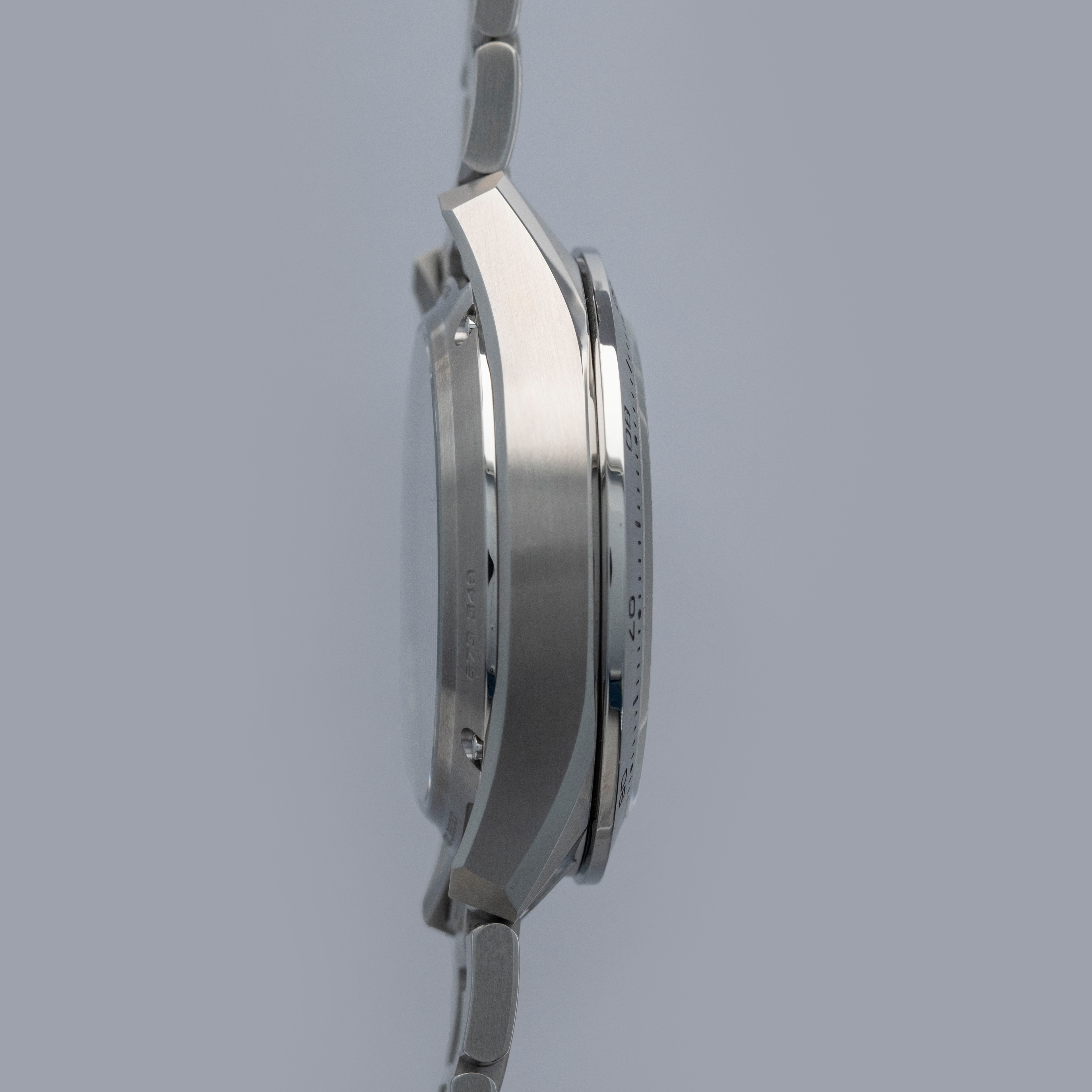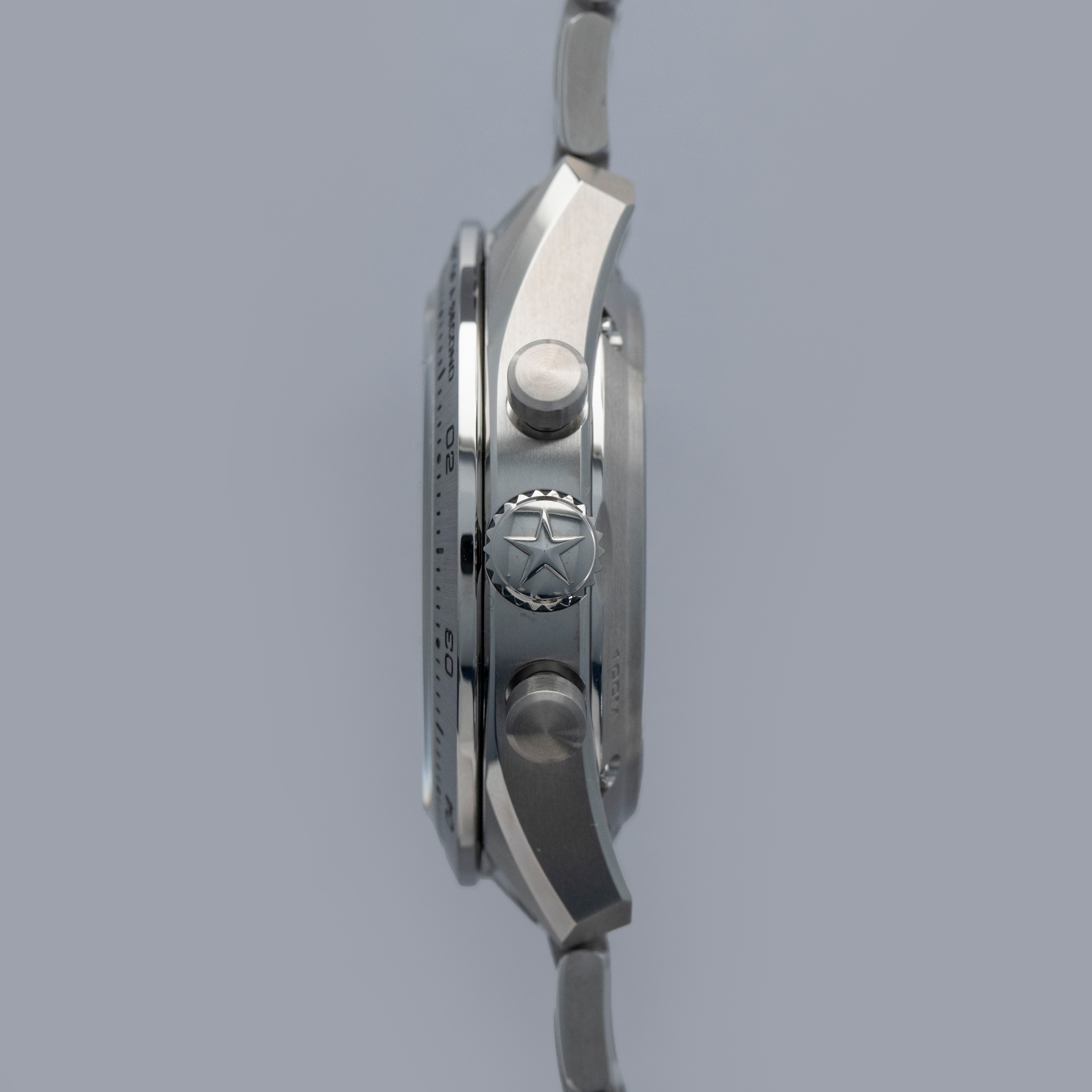Featuring a dark silver dial, the Chronomaster's bright silver, grey, and dark anthracite tri-color subdials stand out only thanks to their concentric guilloche engraving and stepped design, with their color only being a subtle difference from what surrounds them.