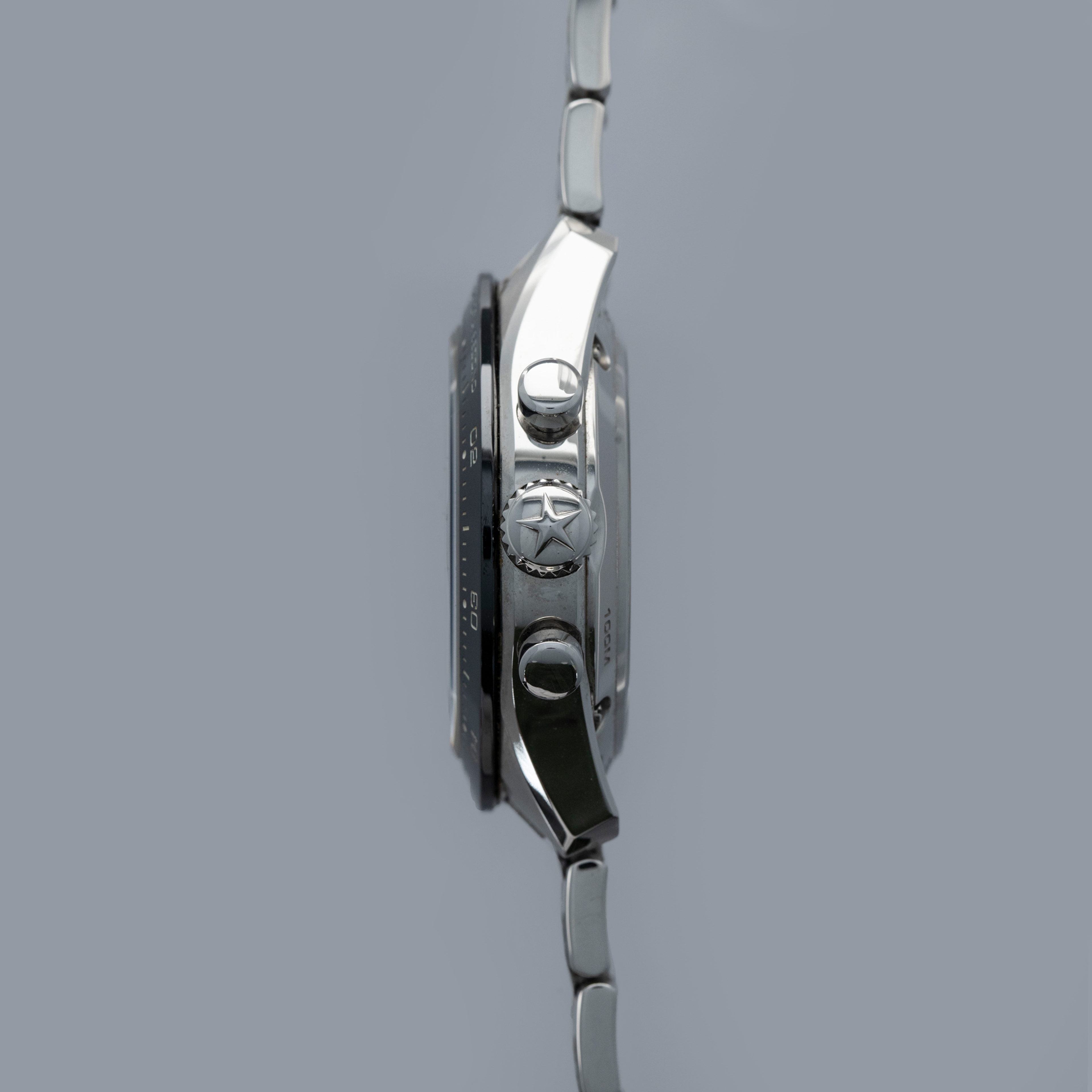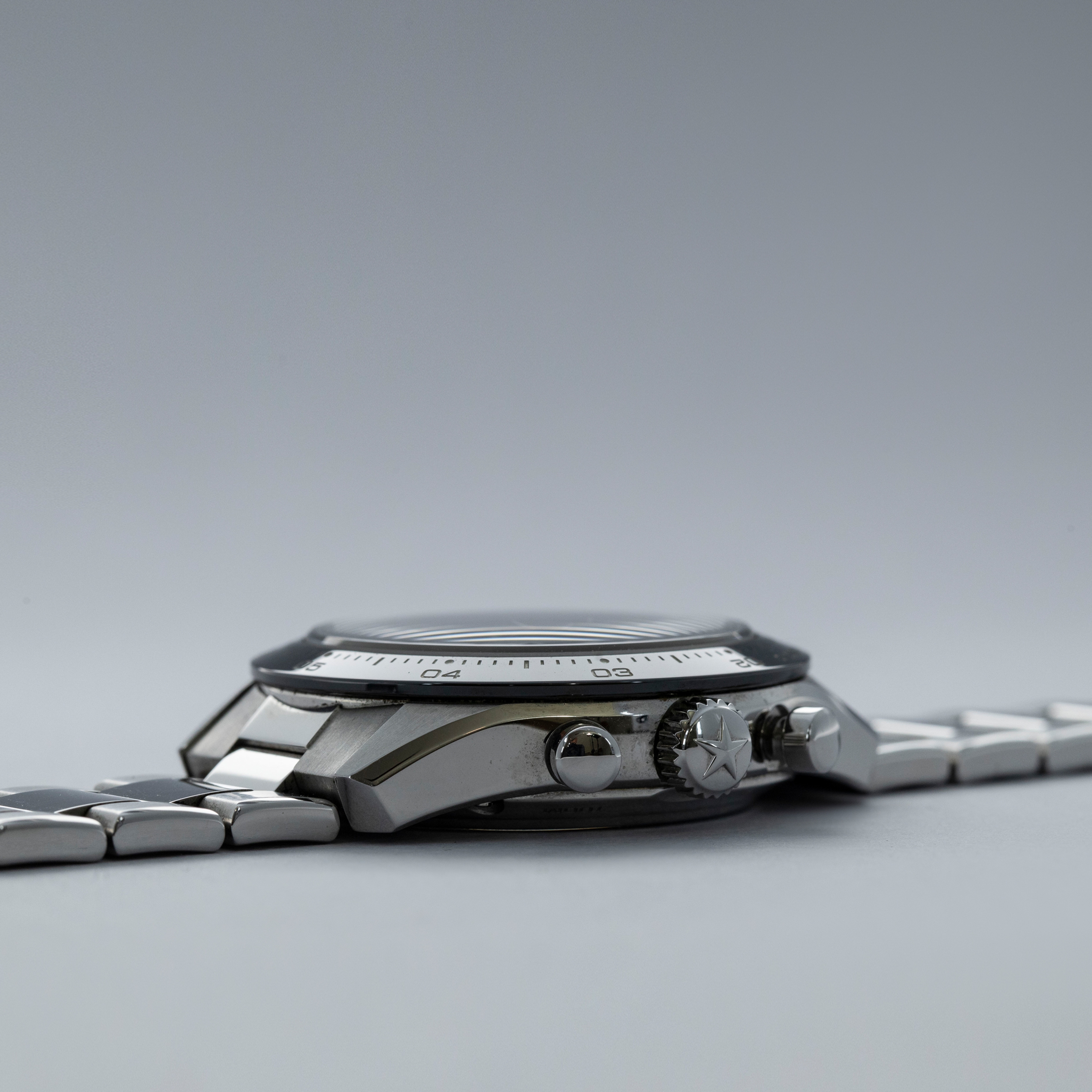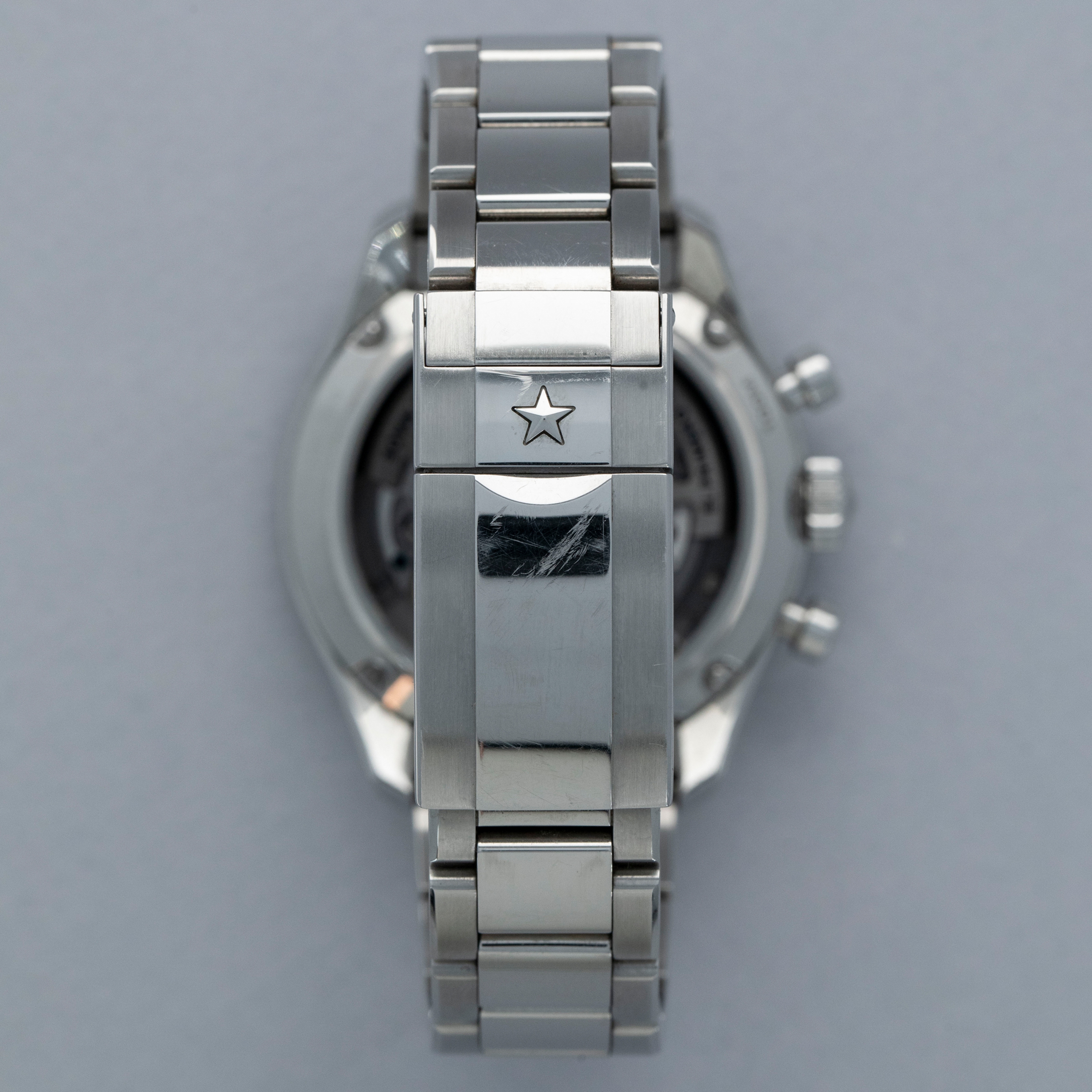 As in keeping with modern requirements, the Chronomaster's 41mm stainless steel case wears fantastically on the wrist with its 13.8mm height ensuring that it wears compact for a high-frequency chronograph that features a date function and exhibition caseback.