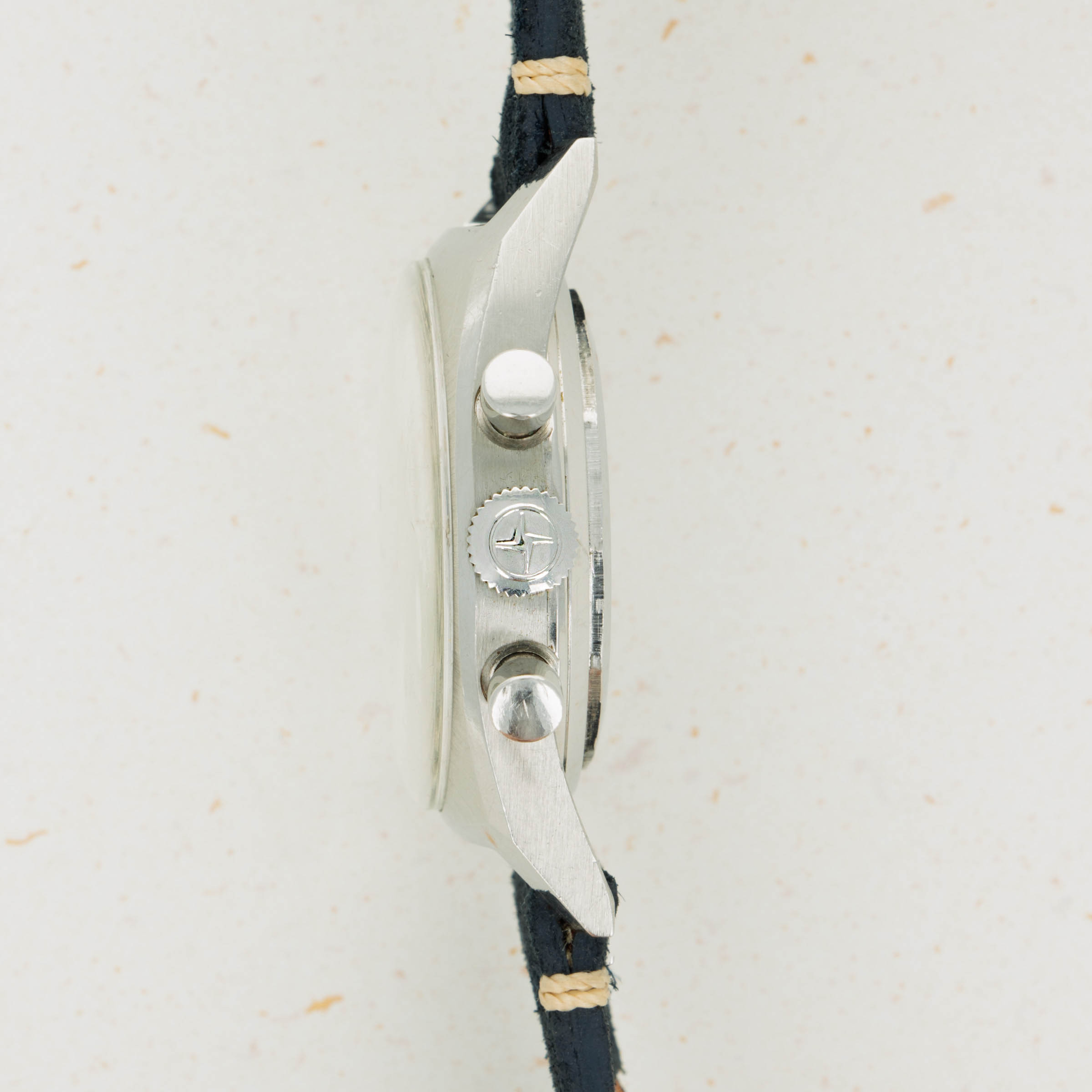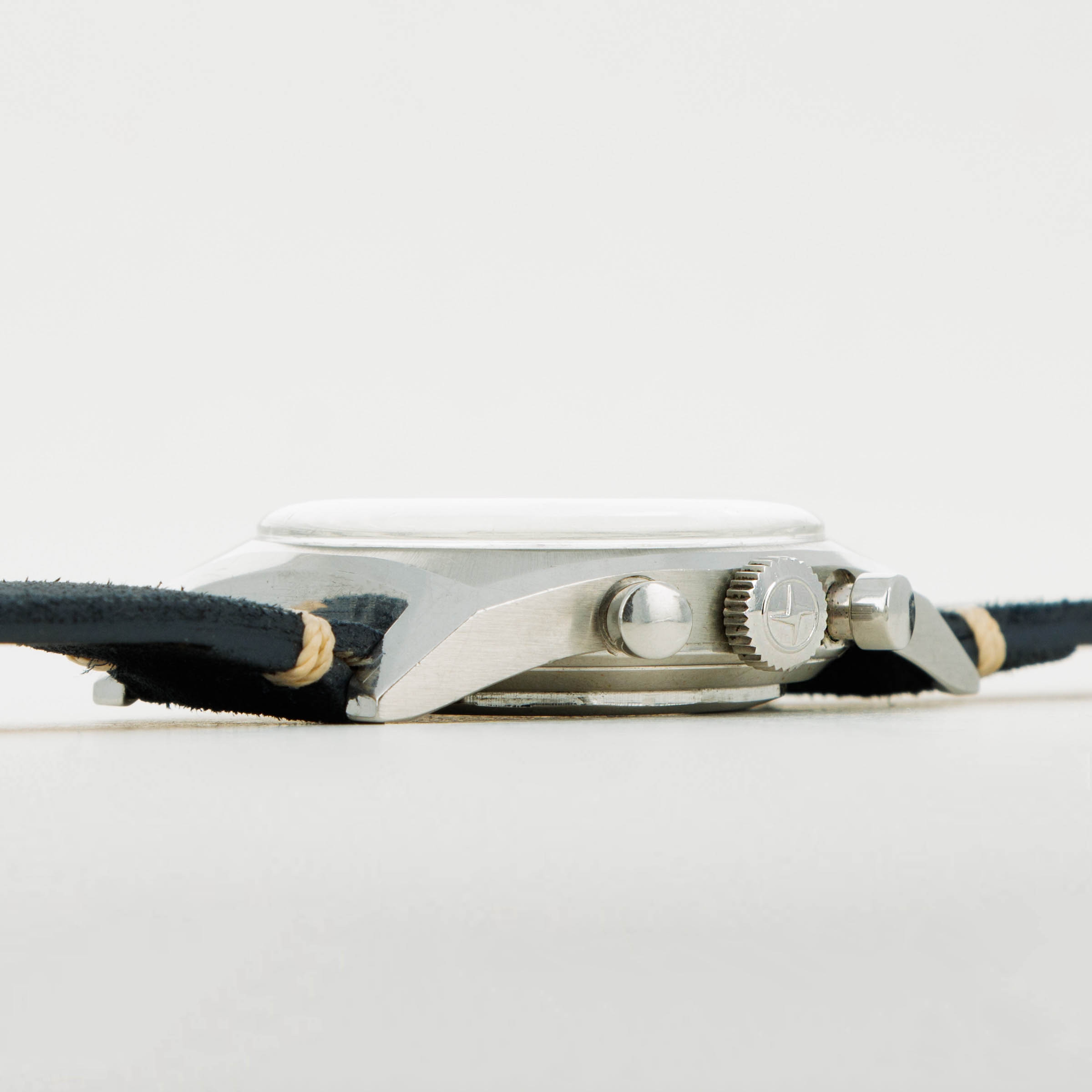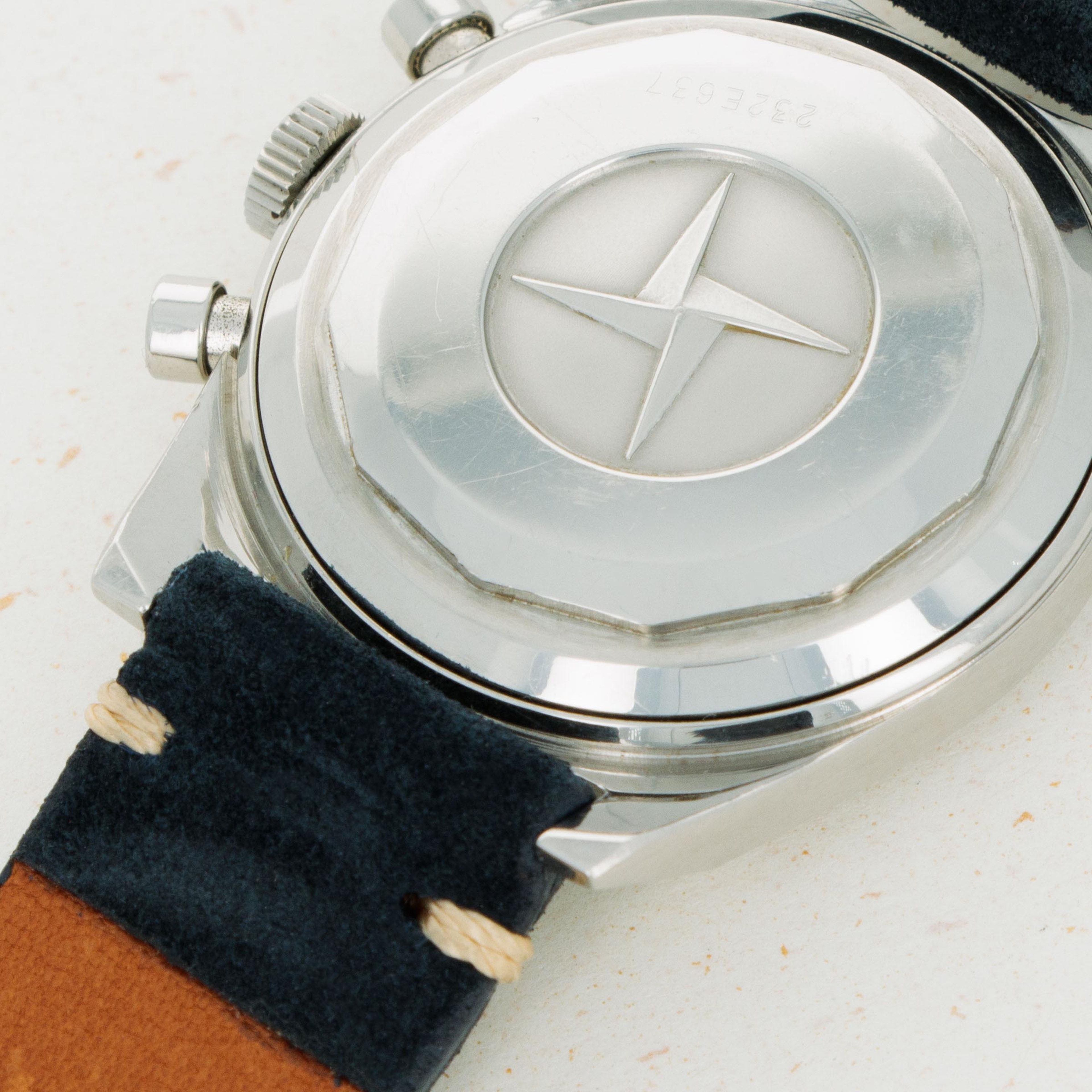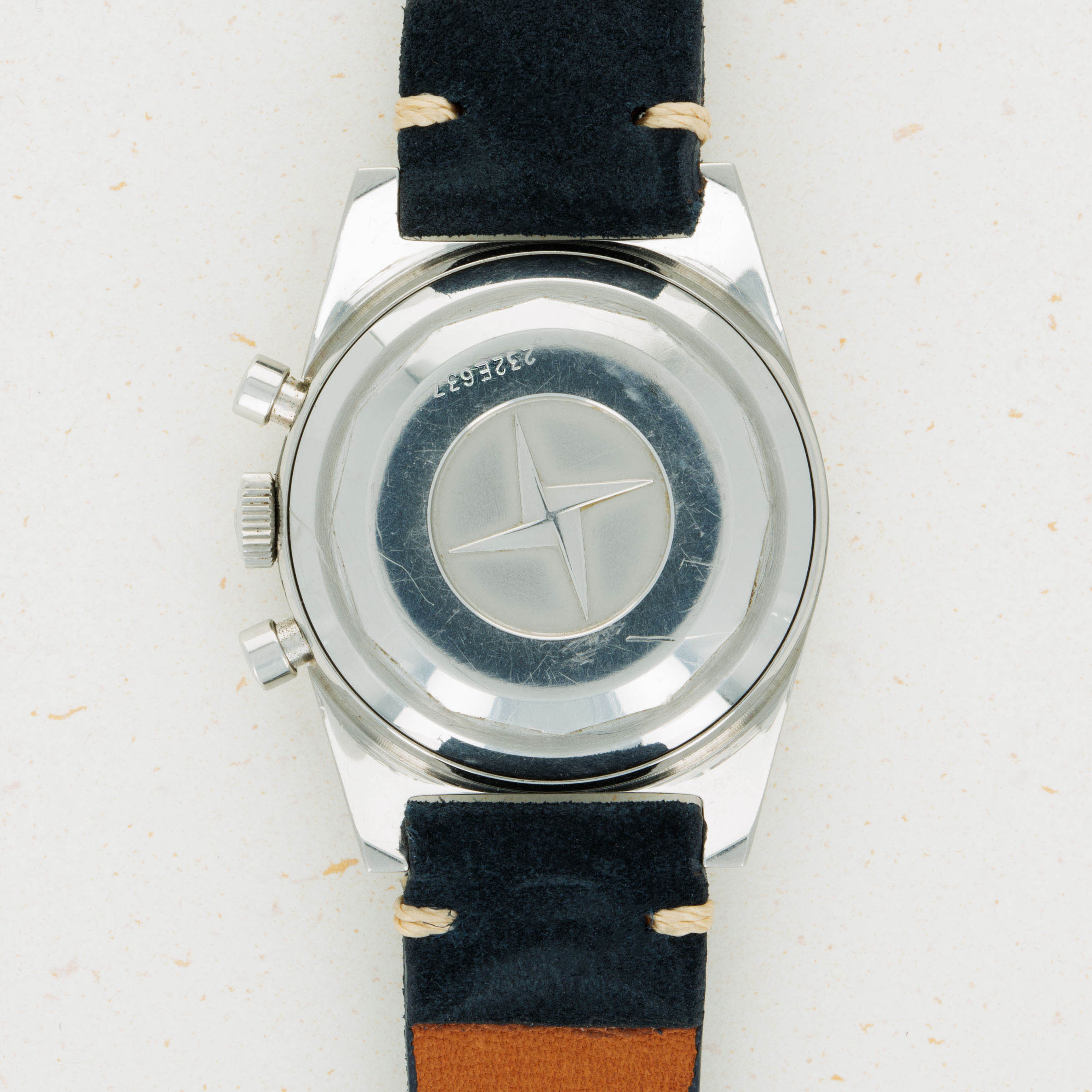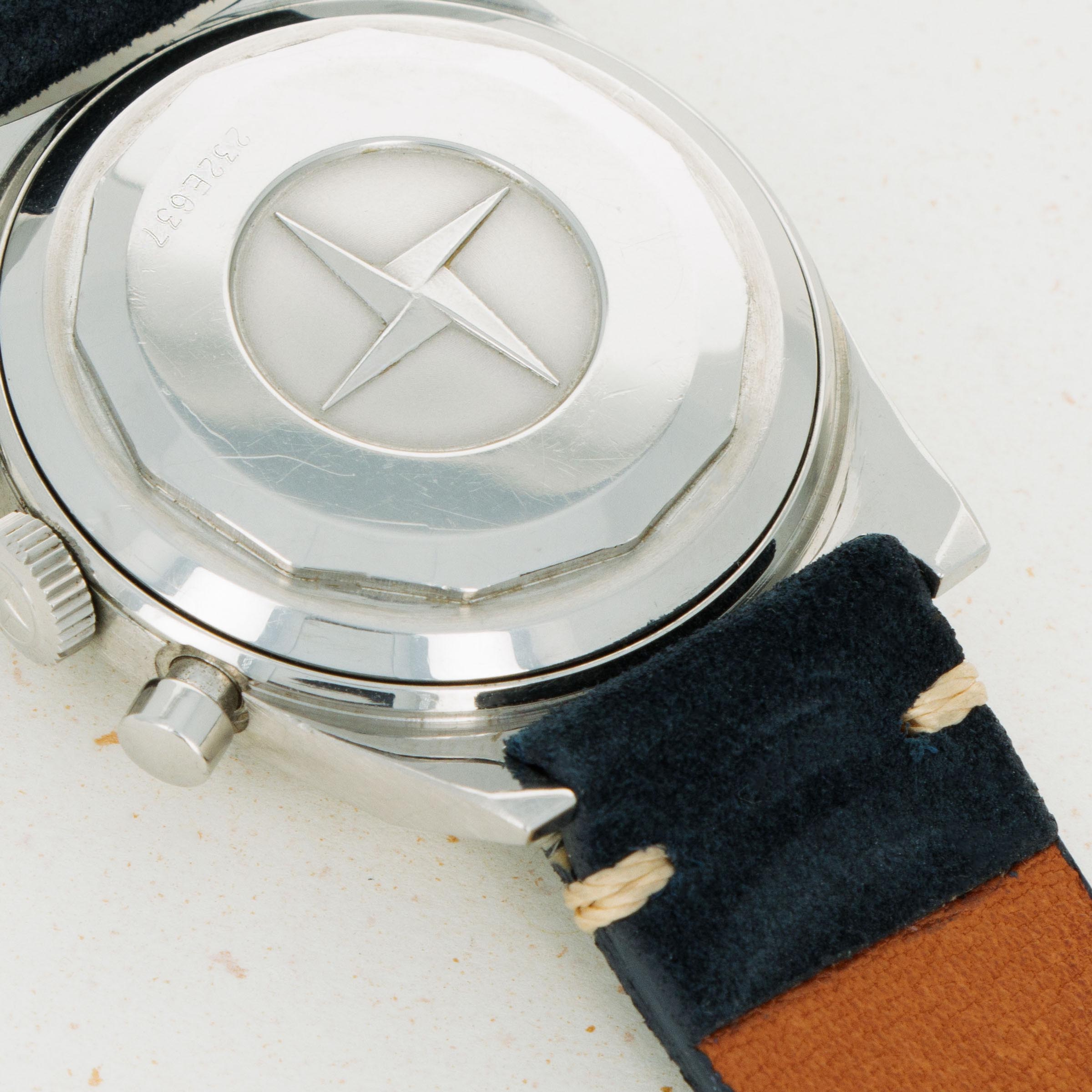 Probably one of the most distinctive uses of color in watchmaking, the A3817 features the A386's silver dial with its multi-colored overlapping subdials - an immediately recognizable visual trait that reveals exactly what iconic timepiece this is. Furthermore, this example's aged creamy yellow luminescent makes its dial all the more visually appealing as its blend of yellows, reds, blues, grays and blacks all occupy the dial at once.