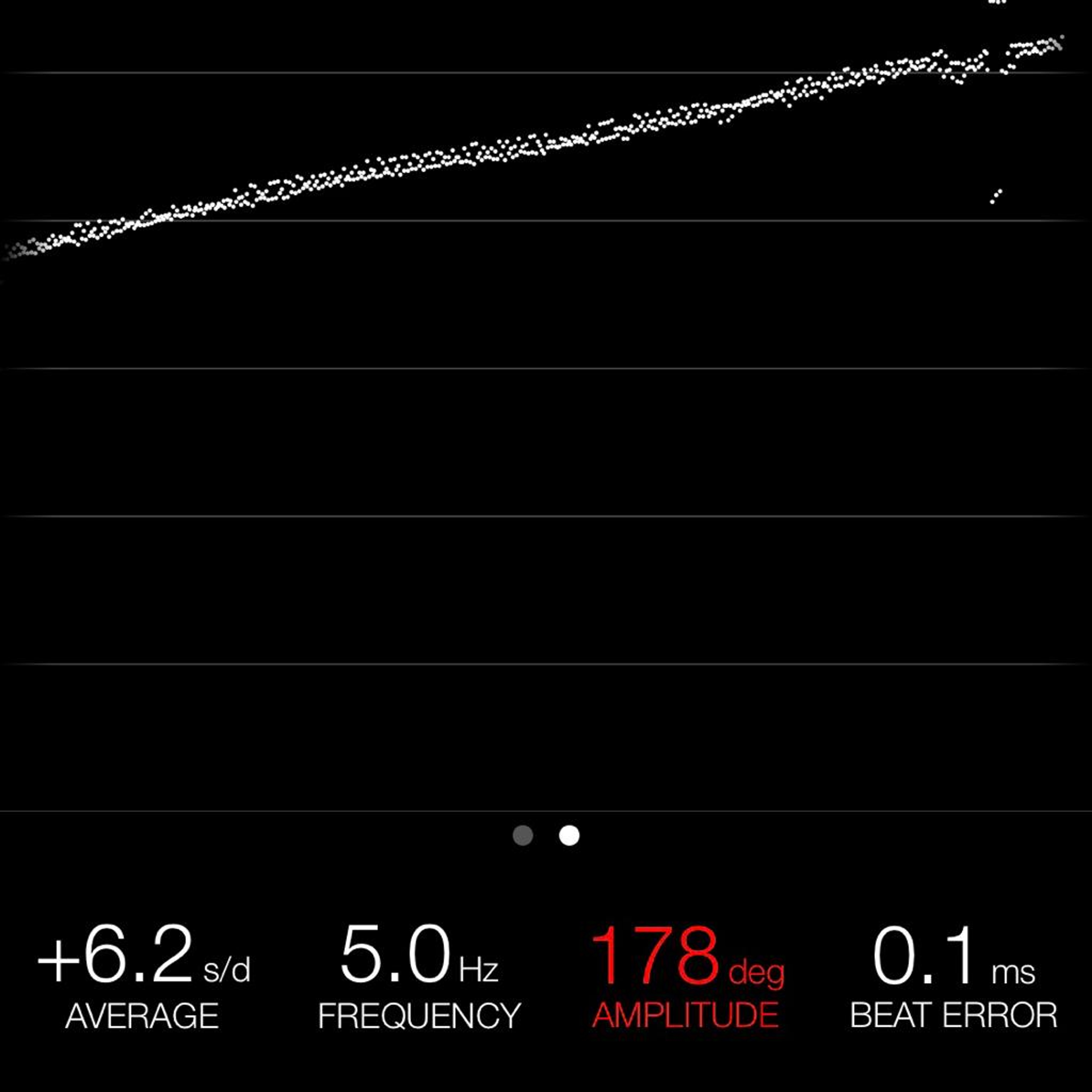 This reading was taken (crown down) with a ONEOF Accuracy Boutique Edition timing machine at time of cataloging. It is provided as a courtesy only, and shall not be construed as a warranty or guarantee of any kind. Please refer to our terms and conditions of sale for more information.
