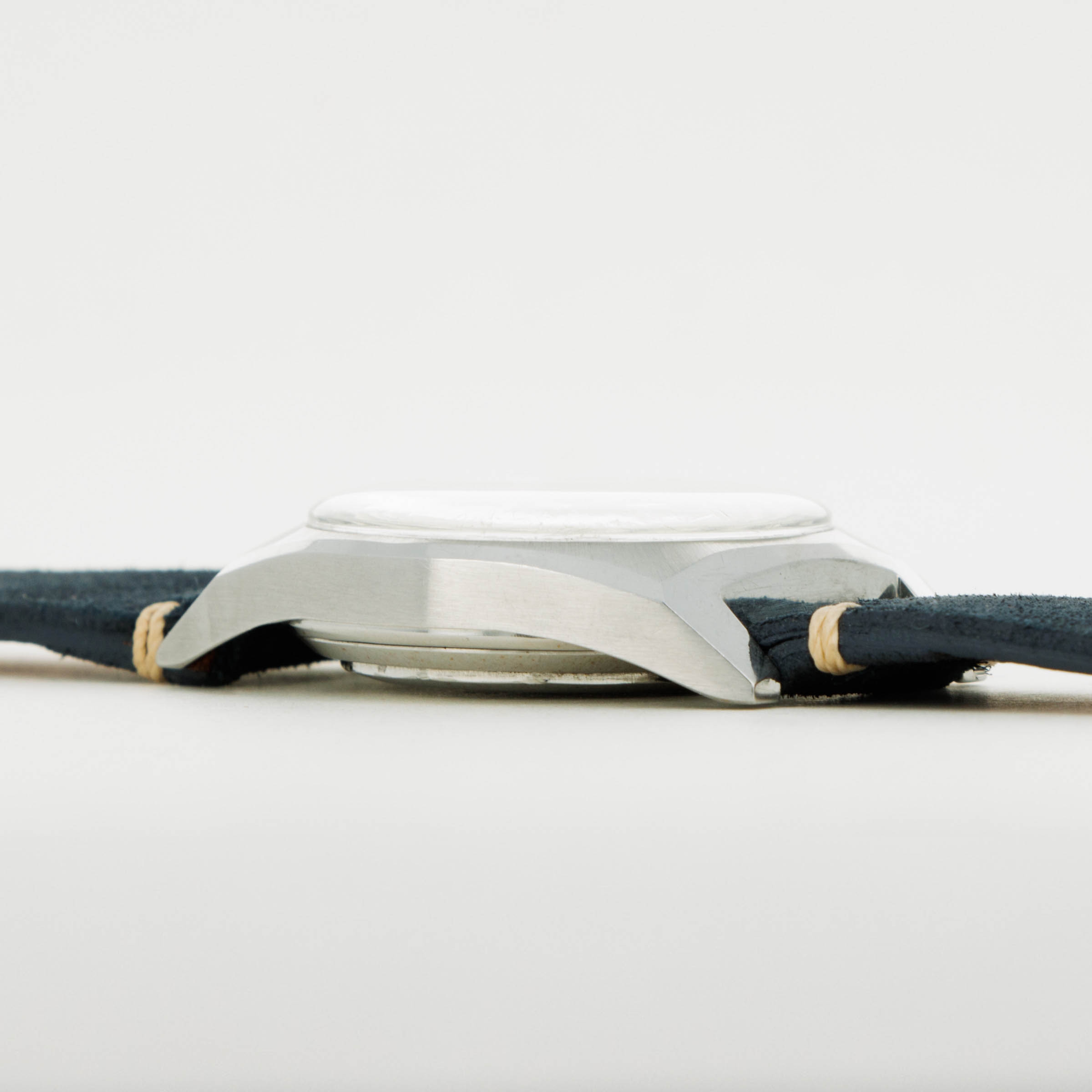 Watch is in overall excellent to near-mint condition. Case exhibits sharp edges and retains its original satin polished surfaces. There is superficial wear on the case, and light crazing along some of the edges of the crystal. The dial is in excellent condition and is eye clean.