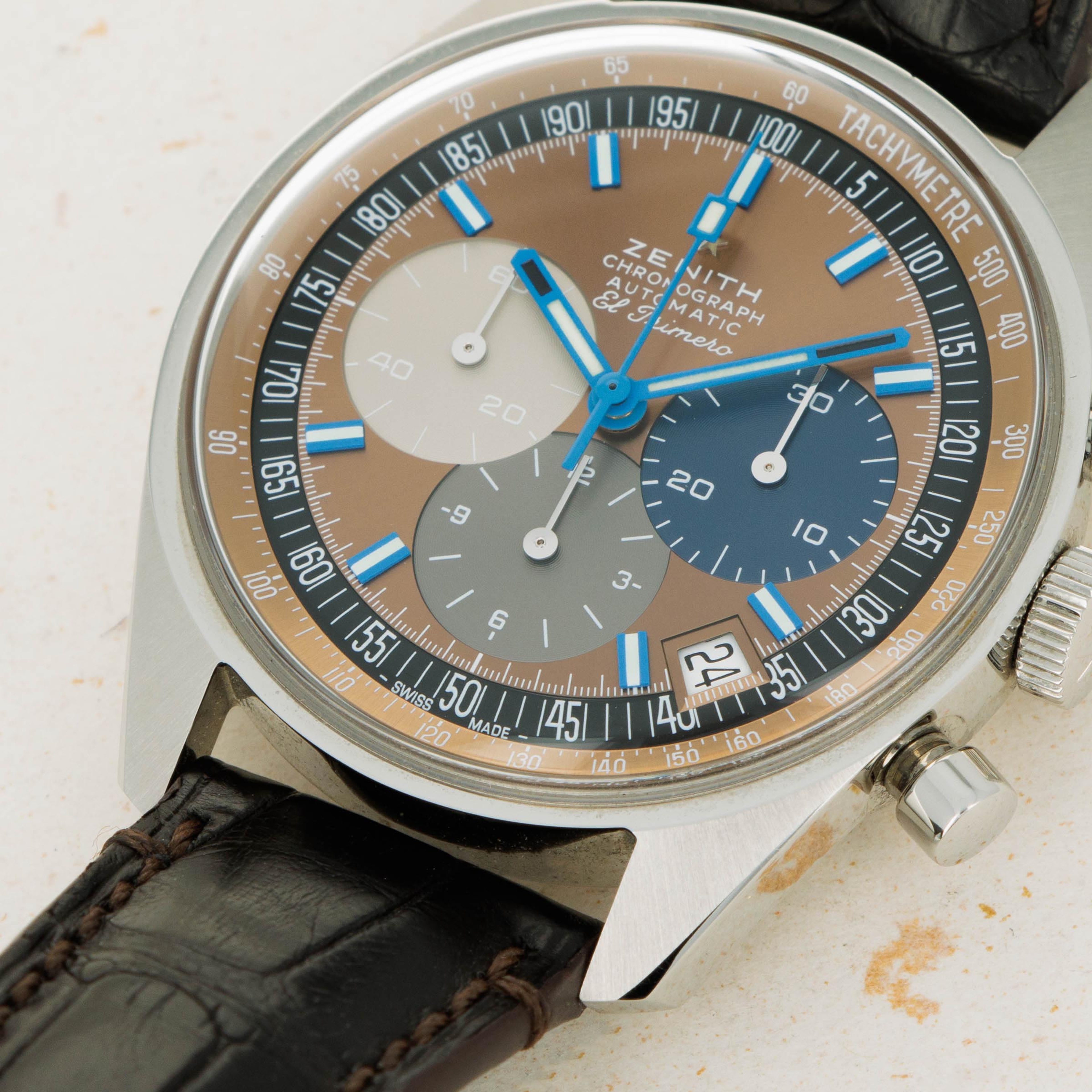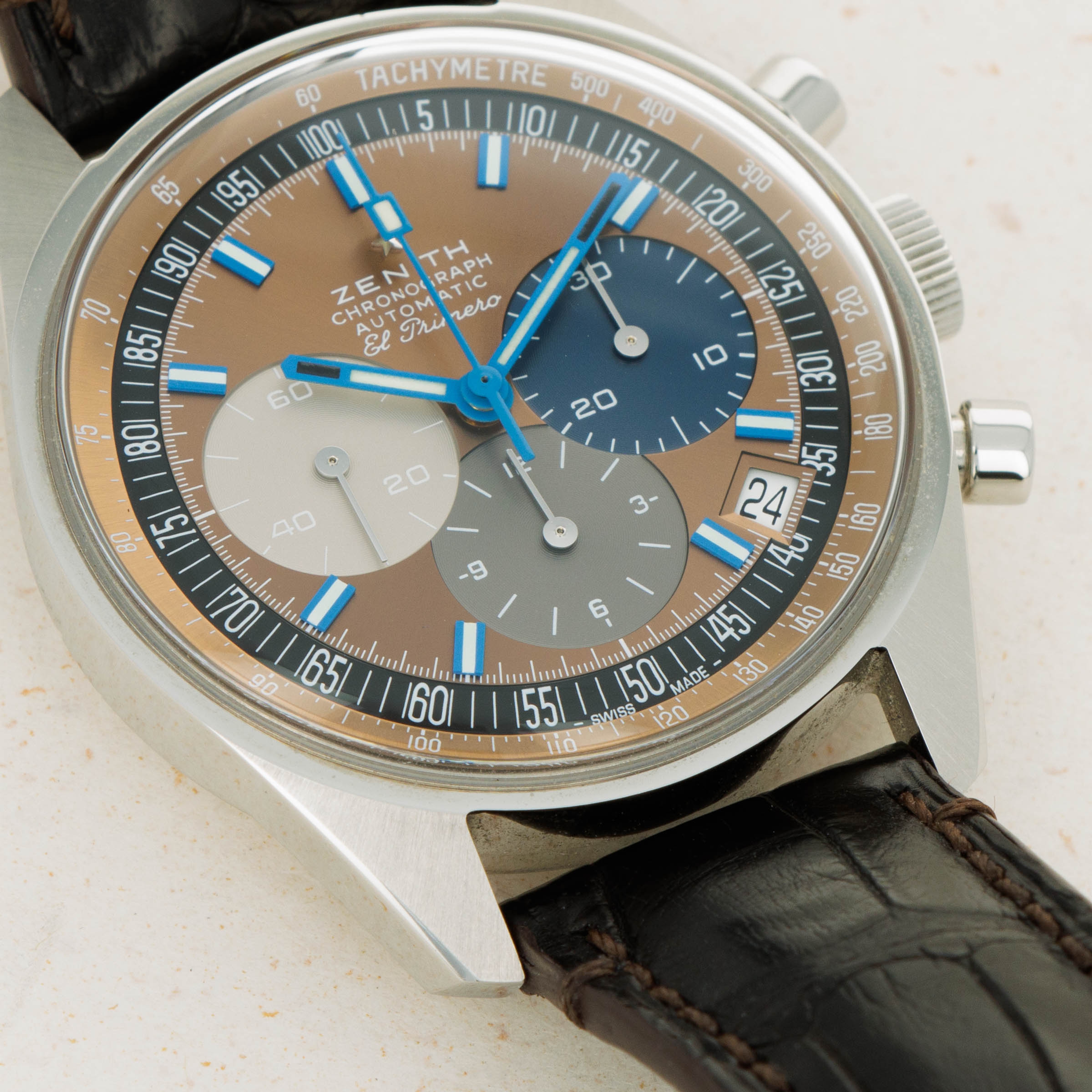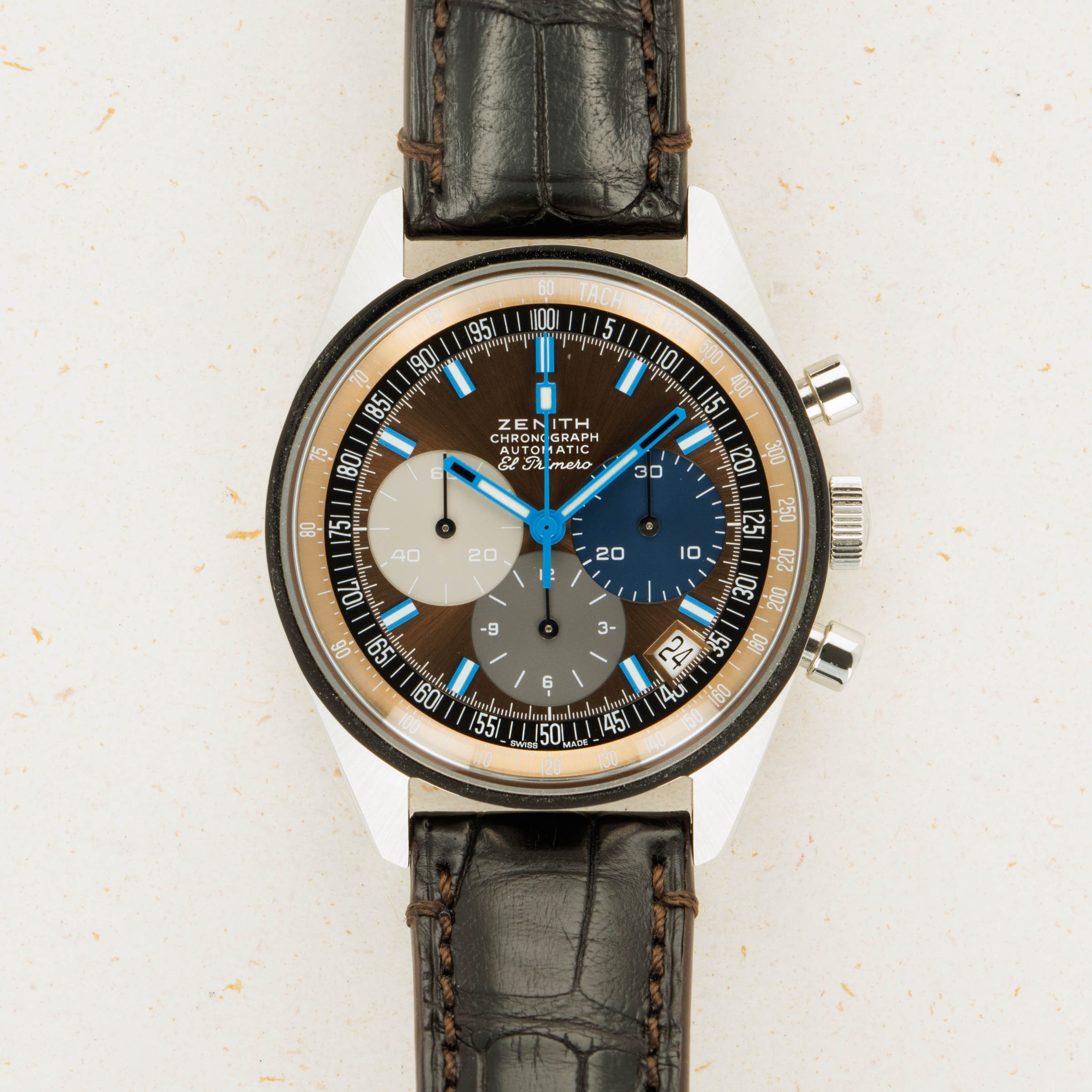 Arguably one of the most famous chronograph makers in all of horology, Zenith is best-known for their El Primero automatic chronograph movement. From its status as one of the first automatic chronograph movements ever made (depending on who you ask) and the base movement to feature within the second-generation Rolex Daytona, the El Primero is certainly a modern-day icon. Launched in 1969, its incredible hi-beat rate, amazing accuracy and technical prowess ensured that any watch it was inside was one of the best chronographs money could buy. One of those watches was Zenith's own A386, the first watch the iconic movement was offered within. However, offered here we have the Zenith El Primero Revival A386 Fine Watch Club Edition. Launched as a limited edition collection of just 24 individually-numbered pieces, this collection was offered only to the members of the Fine Watch Club, first international club for multi-brand watch owners. Fetauring the A386’s signature 38mm stainless steel case and its iconic tri-color subdials, this limited edition example lets itself be known through its stunning bronze-tan dial. Additionally, it features a commemorative caseback and blue indices to match its blue hands that add a bright burst of color to its dial. A stunning example of how to merge horological heritage with the tastes of modern collectors, this is one limited edition that we will be sad to see go.