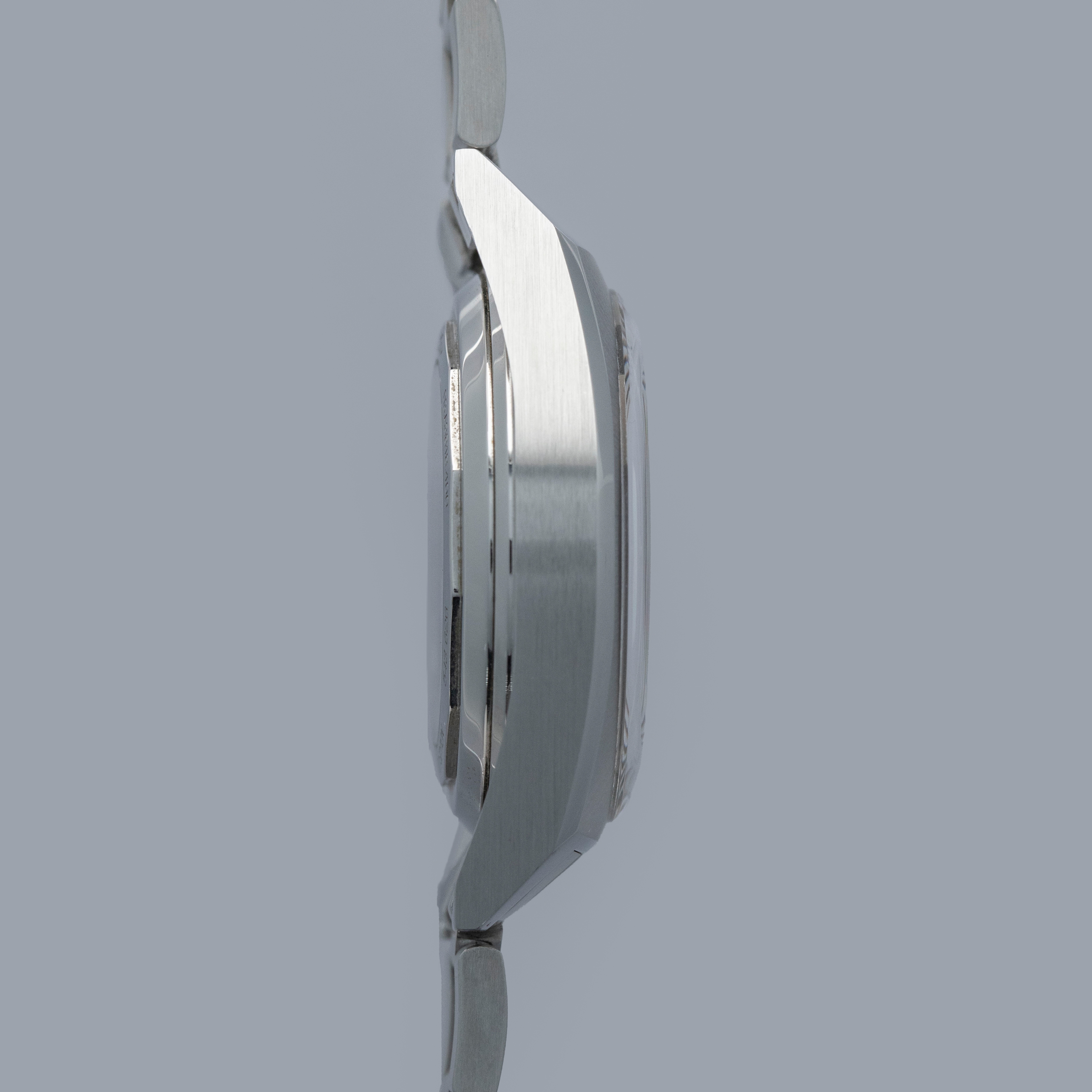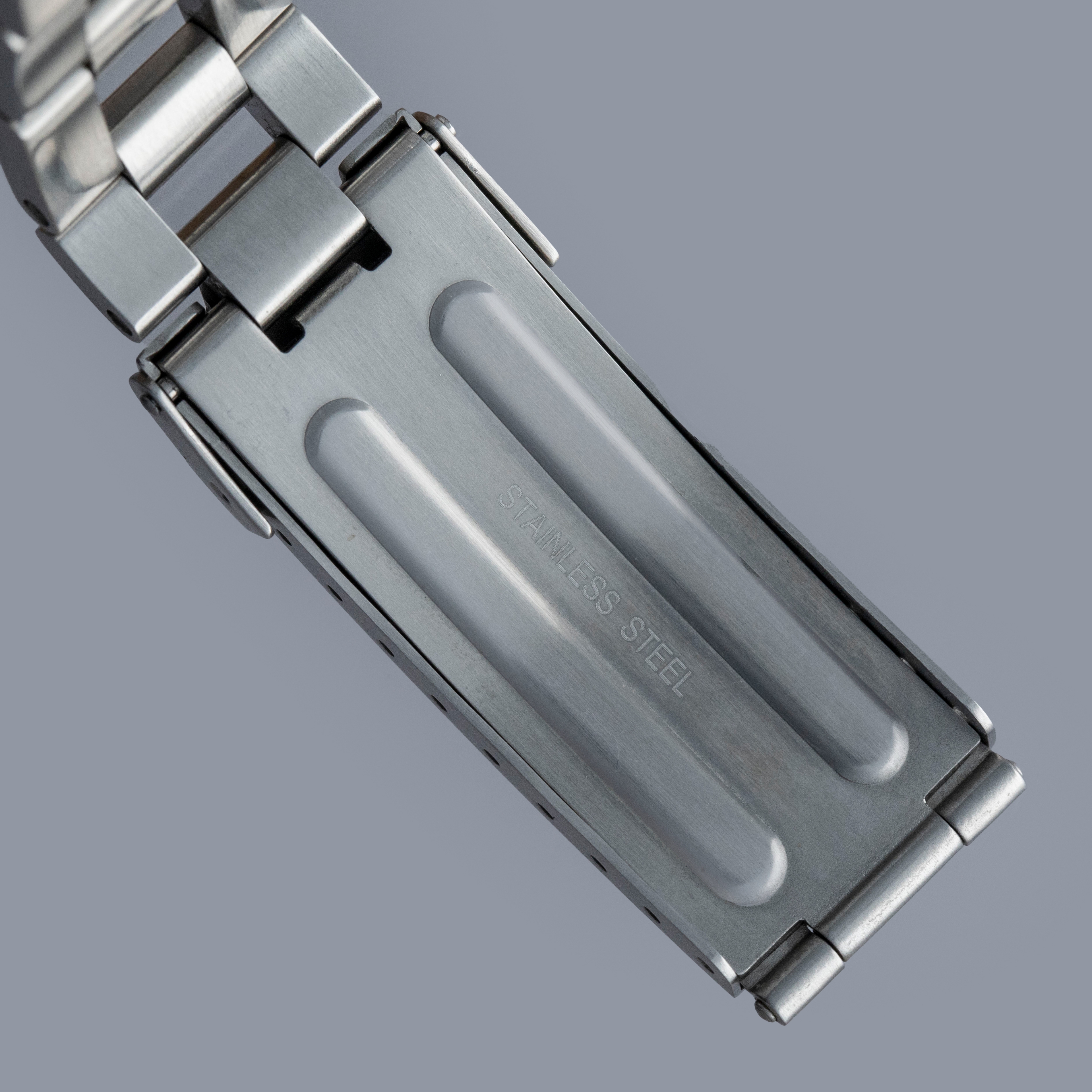 Watch is in overall near-mint condition. The steel case shows light signs of wear, while the dial and hands remain like new. The bracelet shows light surface marks along with some scuffs to the clasp. The bracelet is fitted with 9 links and 2 half links, with 1 full link and 2 half links removable, and fits approximately a 7” wrist. Additionally, there are 2 links included. Comes complete with inner and outer boxes, warranty card, booklets, and accessories.
