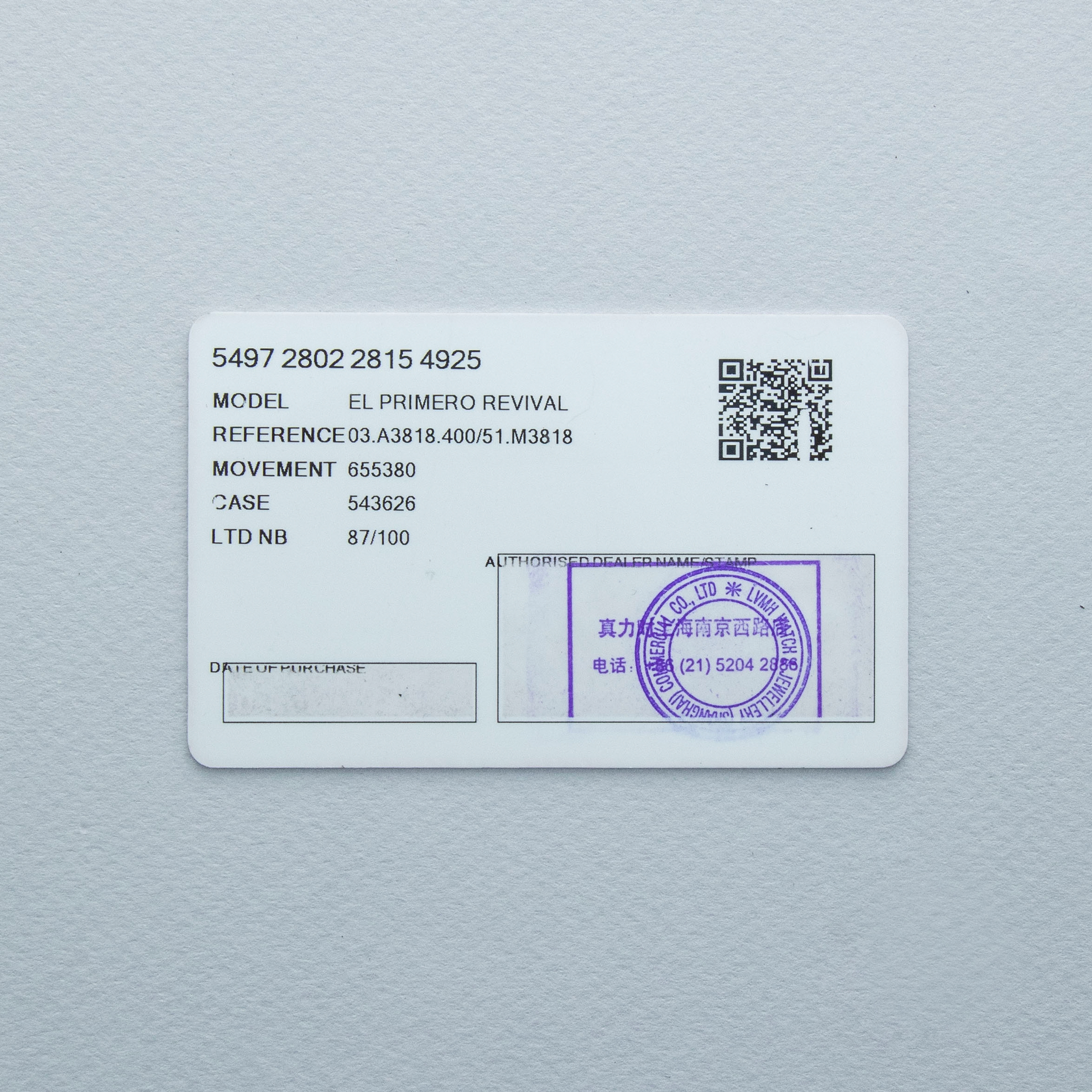 ZENITH El Primero REVIVAL 'COVER GIRL' A3818 REVOLUTION & THE RAKE Limited Edition