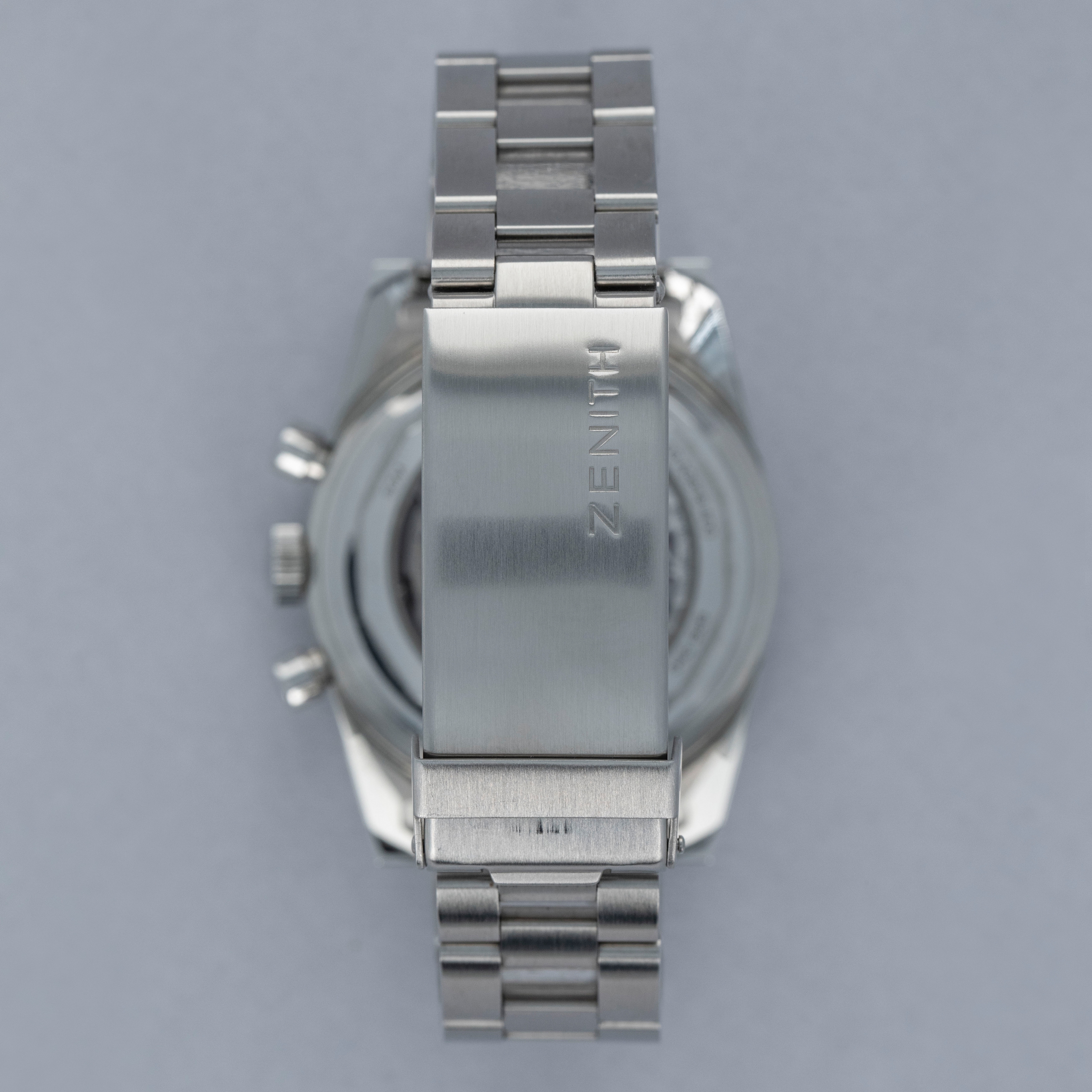 Launched in 2020 as the first collaboration between Revolution & The Rake and Zenith, the Chronomaster Revival A3818 “Cover Girl” is a wonderfully designed watch that pays tribute and maintains strict adherence to the historical watch that it derives its inspiration. Based on Zenith’s iconic Chronomaster, the A3818 retains the original Chronomaster’s tonneau-shaped angular case. Blending flat brushed surfaces with sharp angles, thick polished bevels and a domed sapphire crystal bezel, the A3818 plays with the light like none other as its domed crystal distorts the beautiful blue dial below, and light on the case skips from one surface to another. Limited to 100 pieces and featuring the iconic Gay Freres ladder bracelet alongside its high-frequency cal. El Primero 400 automatic movement on display behind its sapphire crystal caseback, the Chronomaster Revival A3818 “Cover Girl”, is a splendid example of rich and historically thematic horological design with a tasteful modern twist.