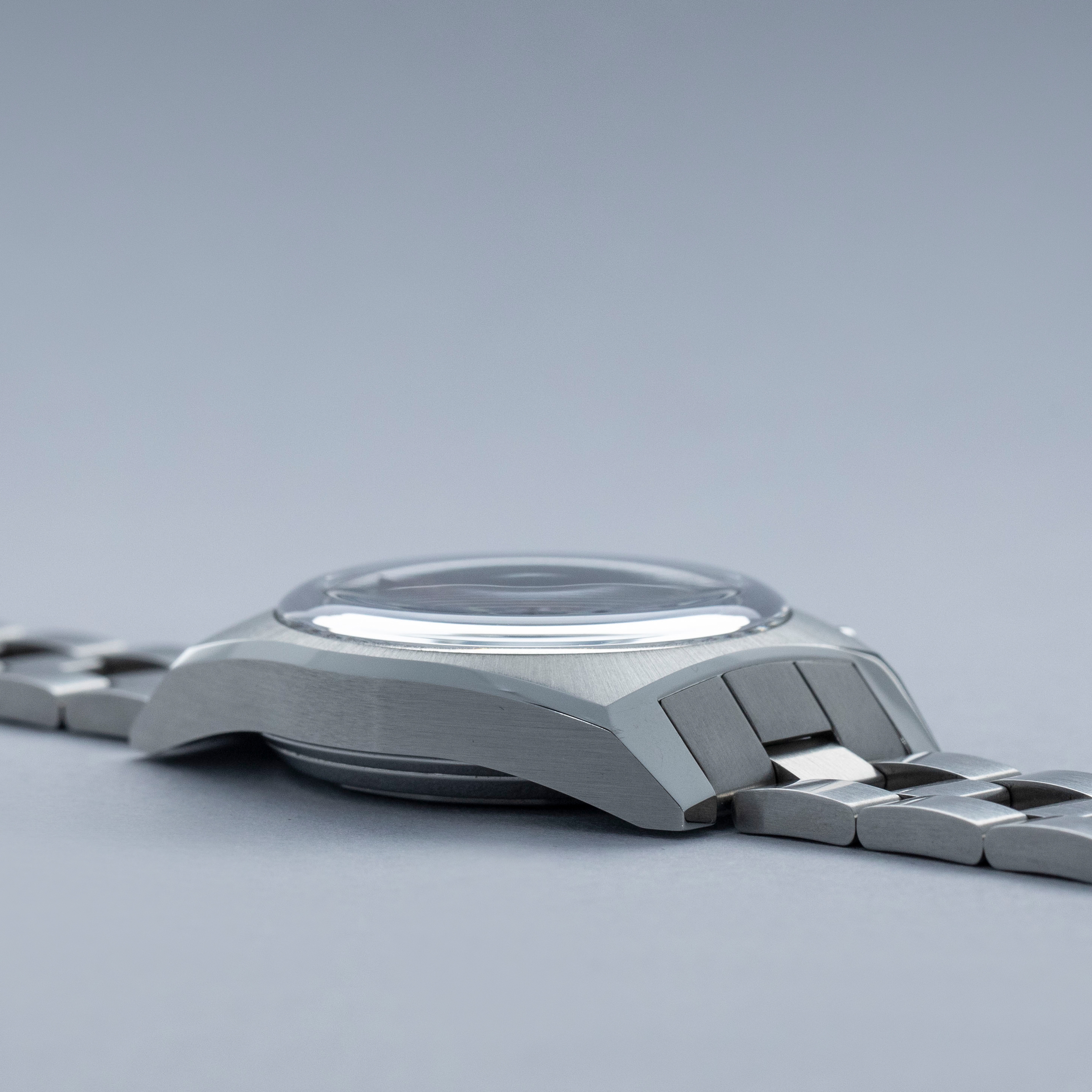 Measuring 37mm across, its tonneau-shaped stainless steel case looks incredible on the wrist as it blends flat brushed surfaces with sharp angles and thick polished bevels to wonderful effect.