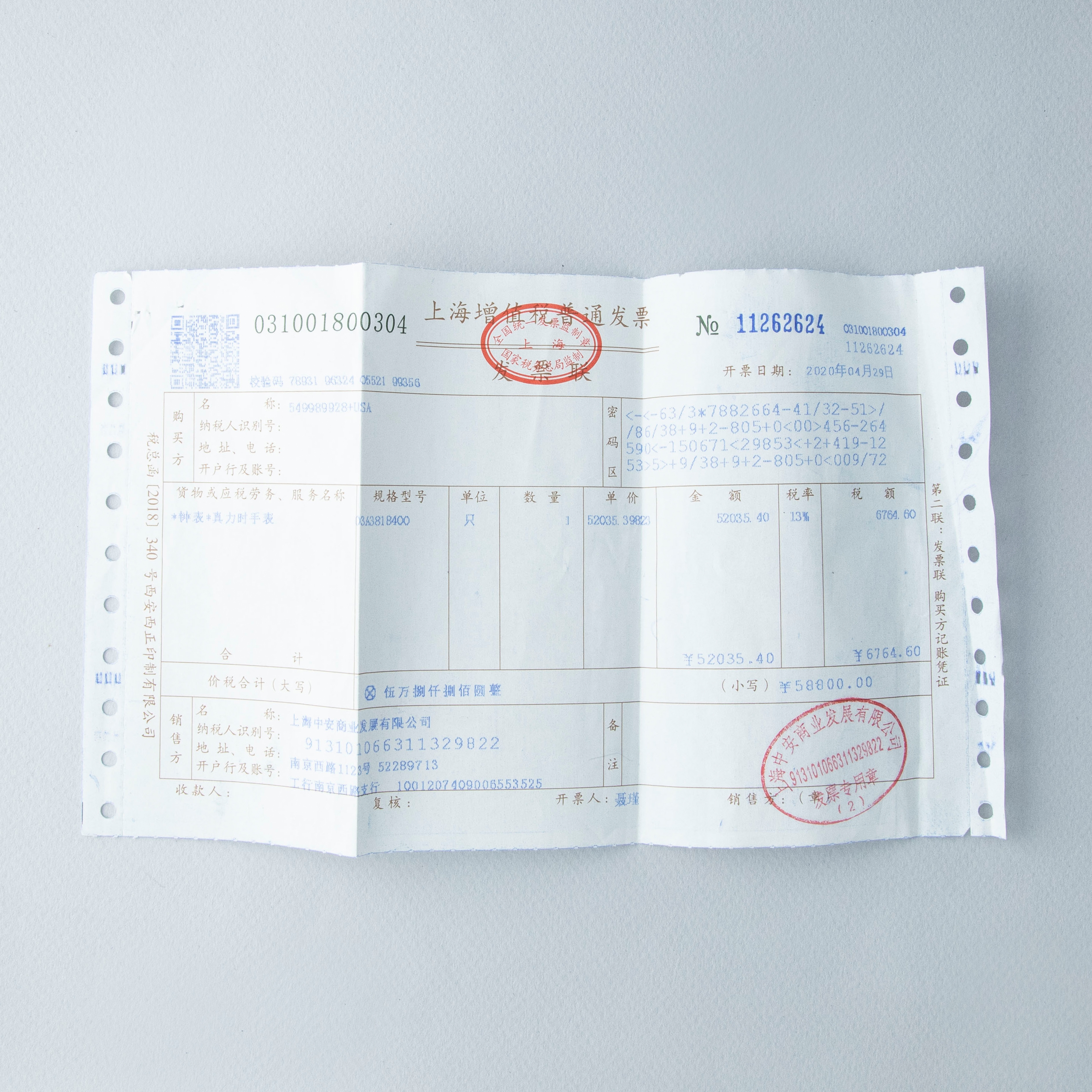 Box and papers, Sales Invoice, Additional Strap