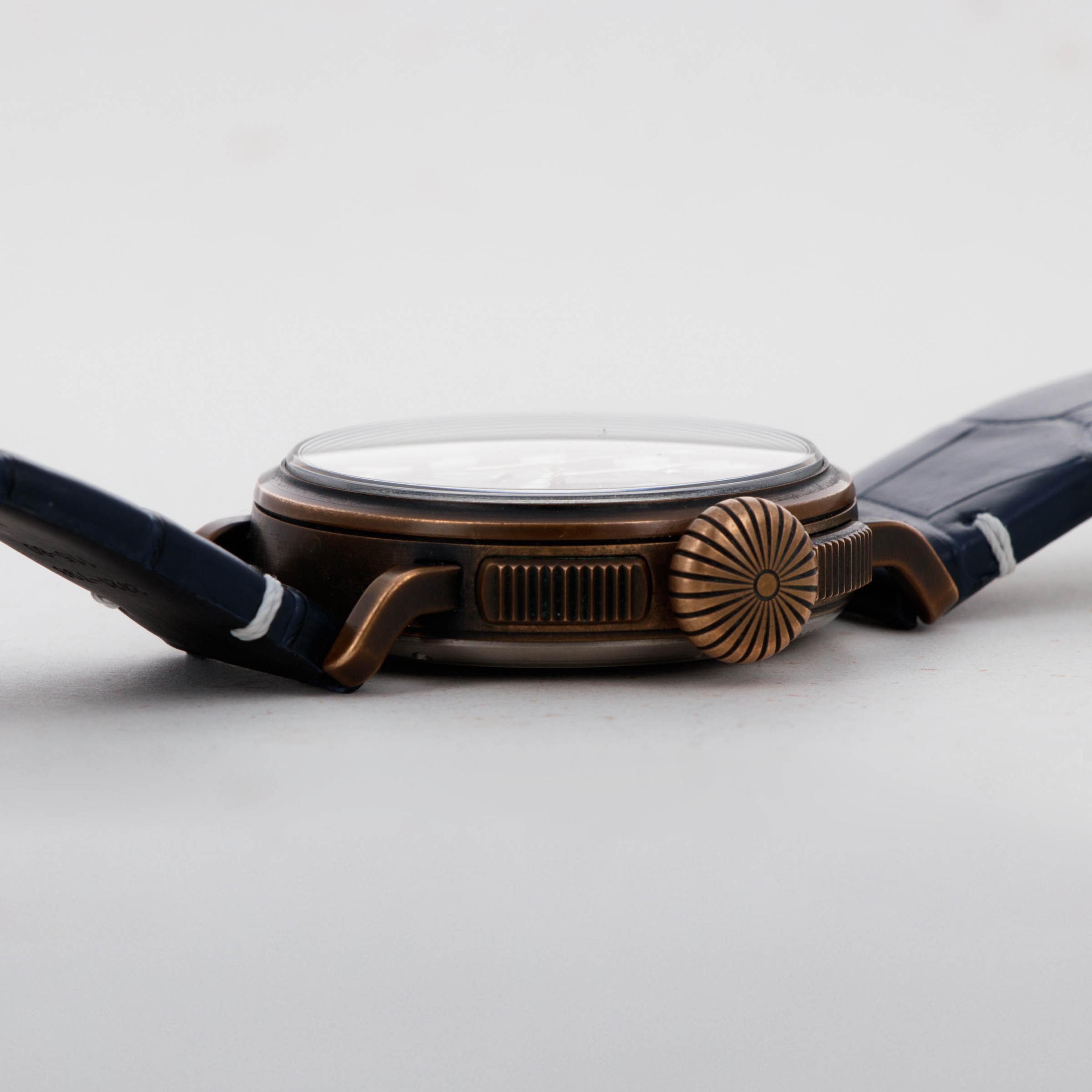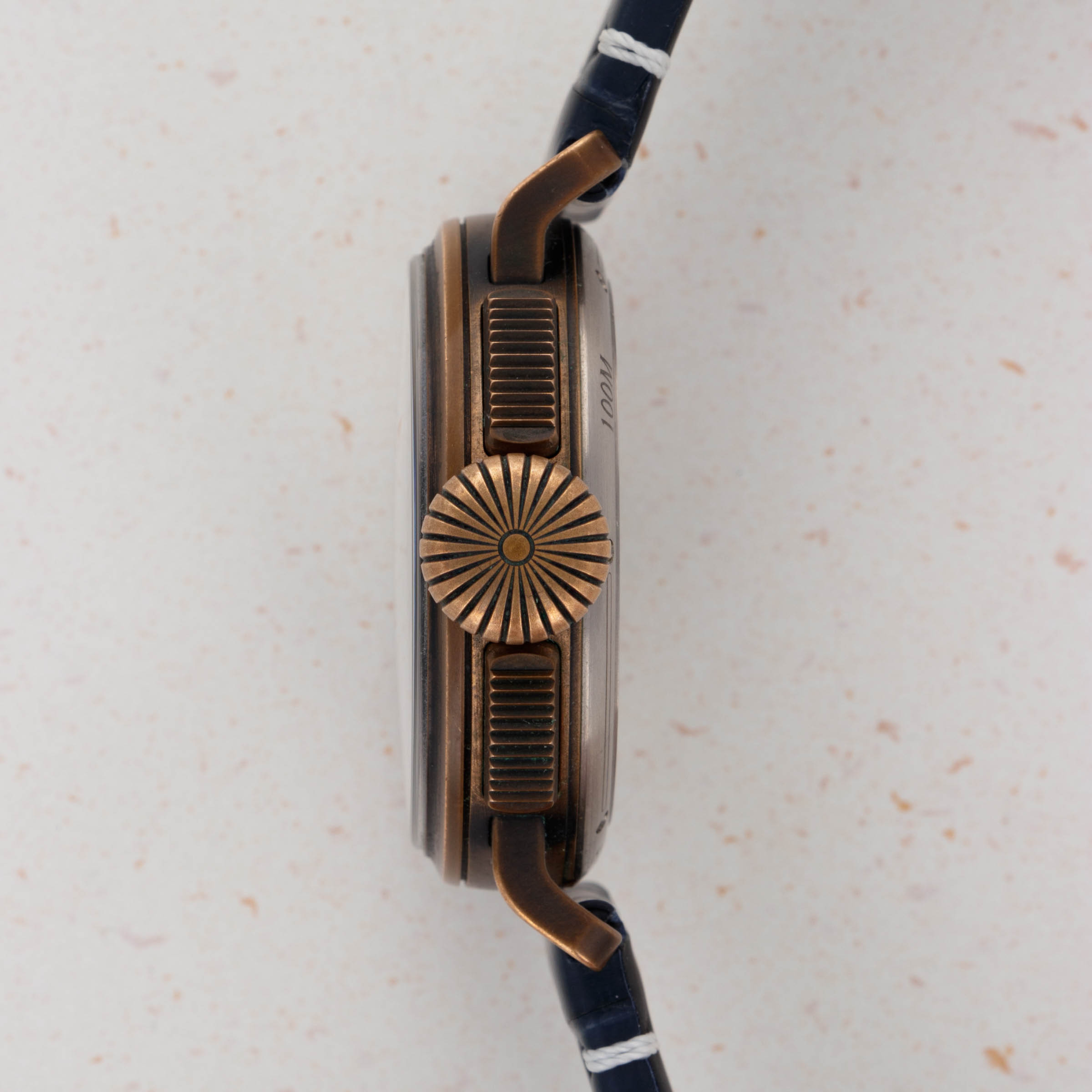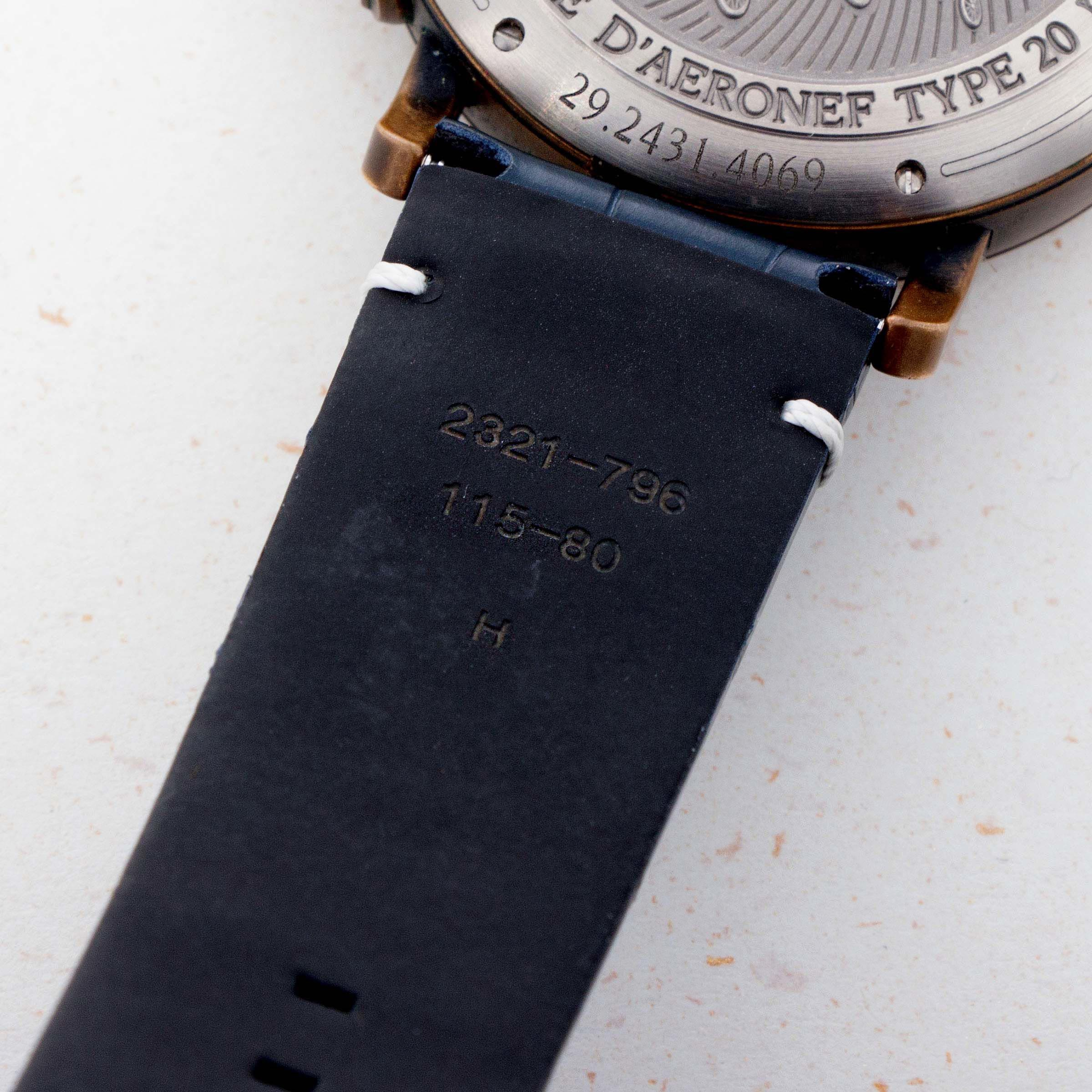 Measuring 45mm in diameter, the Montre D’Aéronef Type 20 is an imposing watch, with its use of bronze and large onion-shaped crown adding to its unique personality.