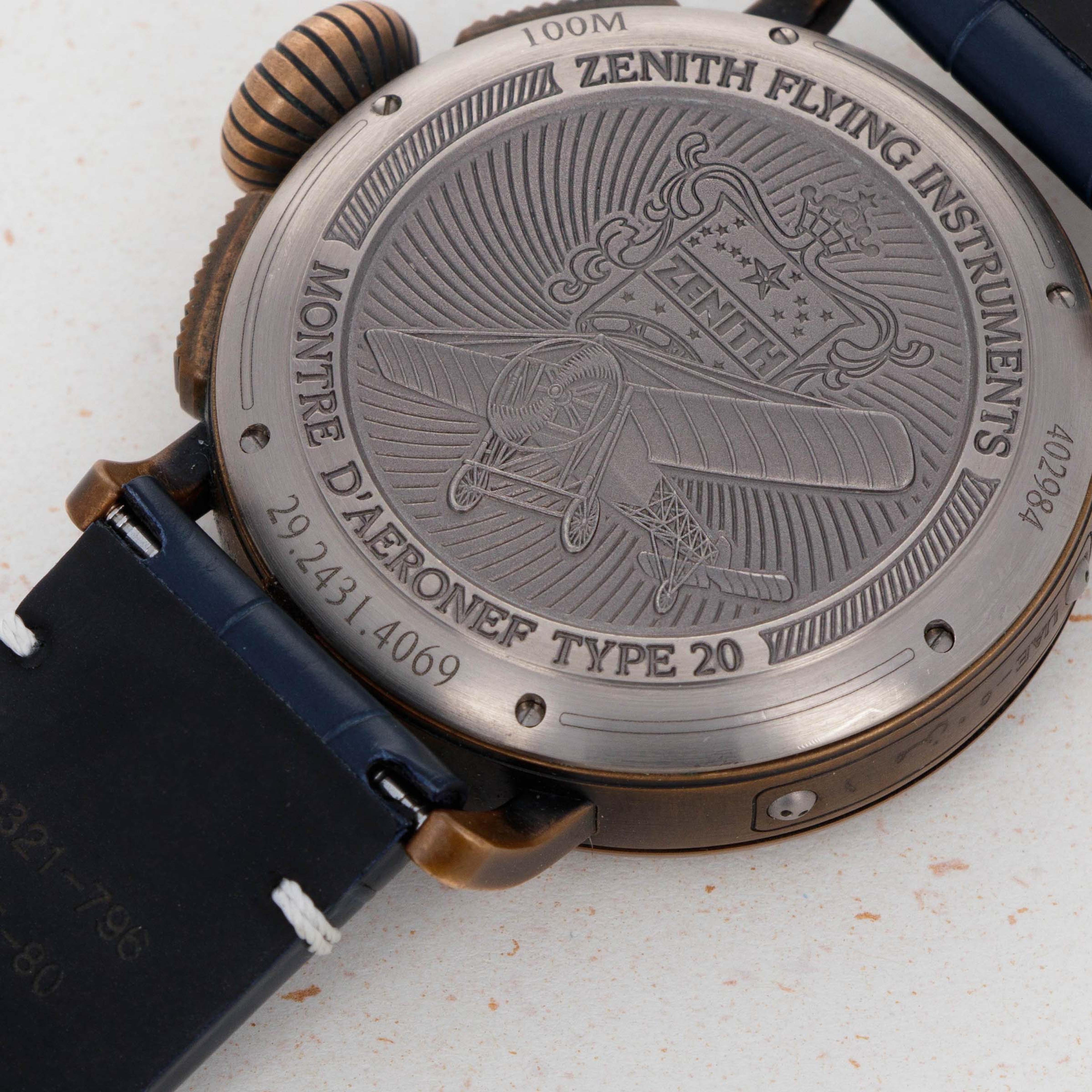 Zenith Pilot Montre D' Aeronef Type 20 Chronograph Arabic Dial Bronze Case