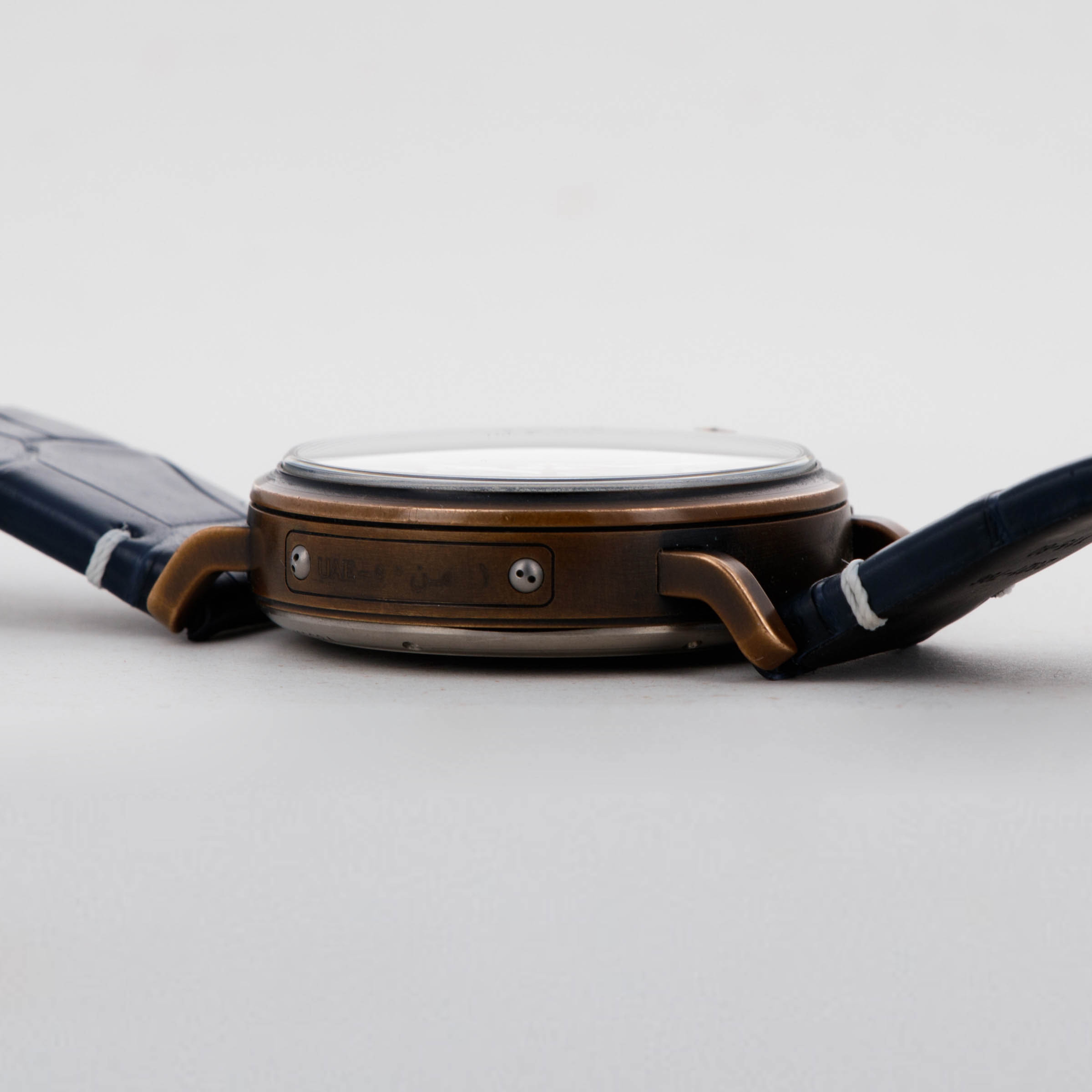 Featuring a glossy blue dial with orange accents that match its bronze case, this example also sports east-Arabic numerals that mark its place as a limited edition variant specifically for the UAE.