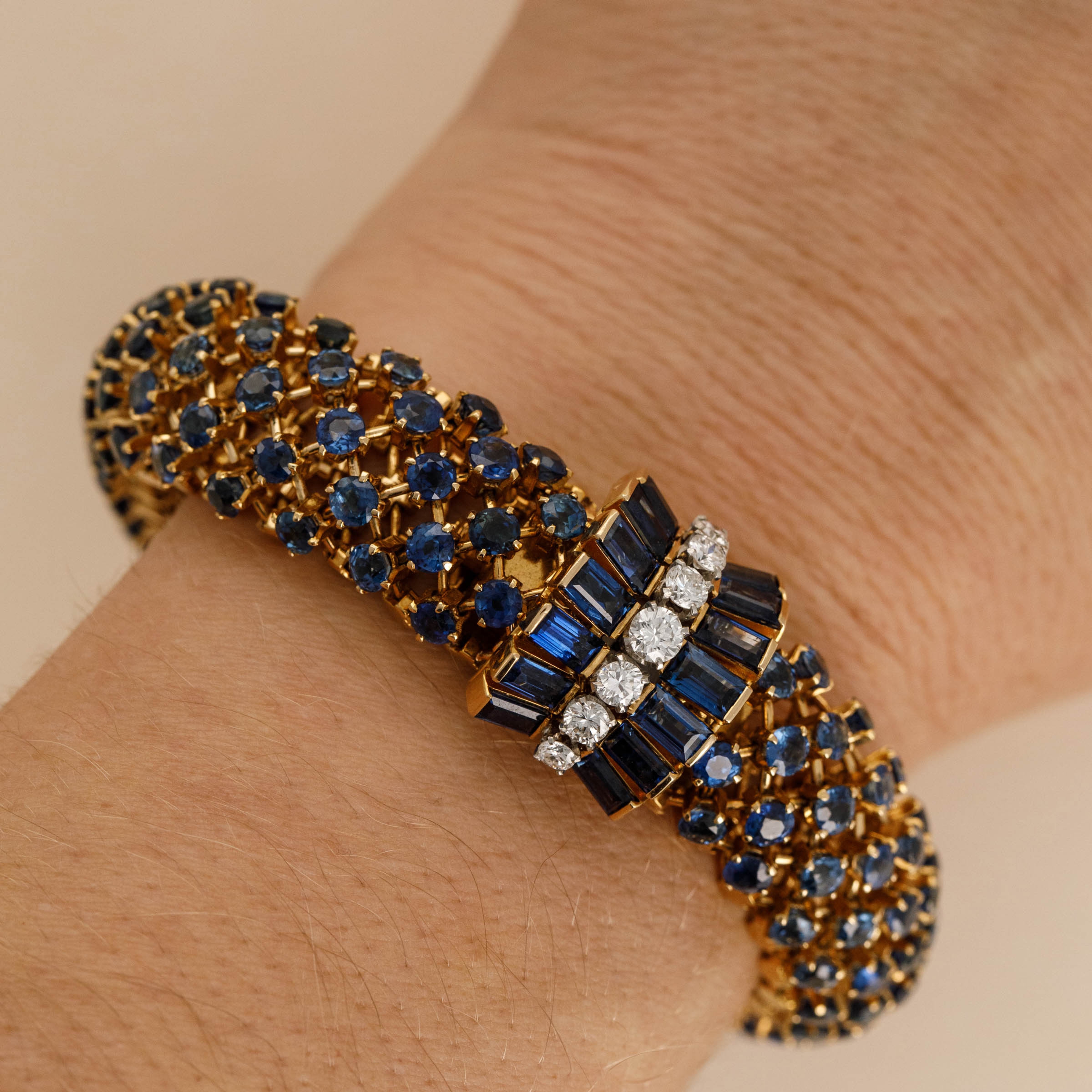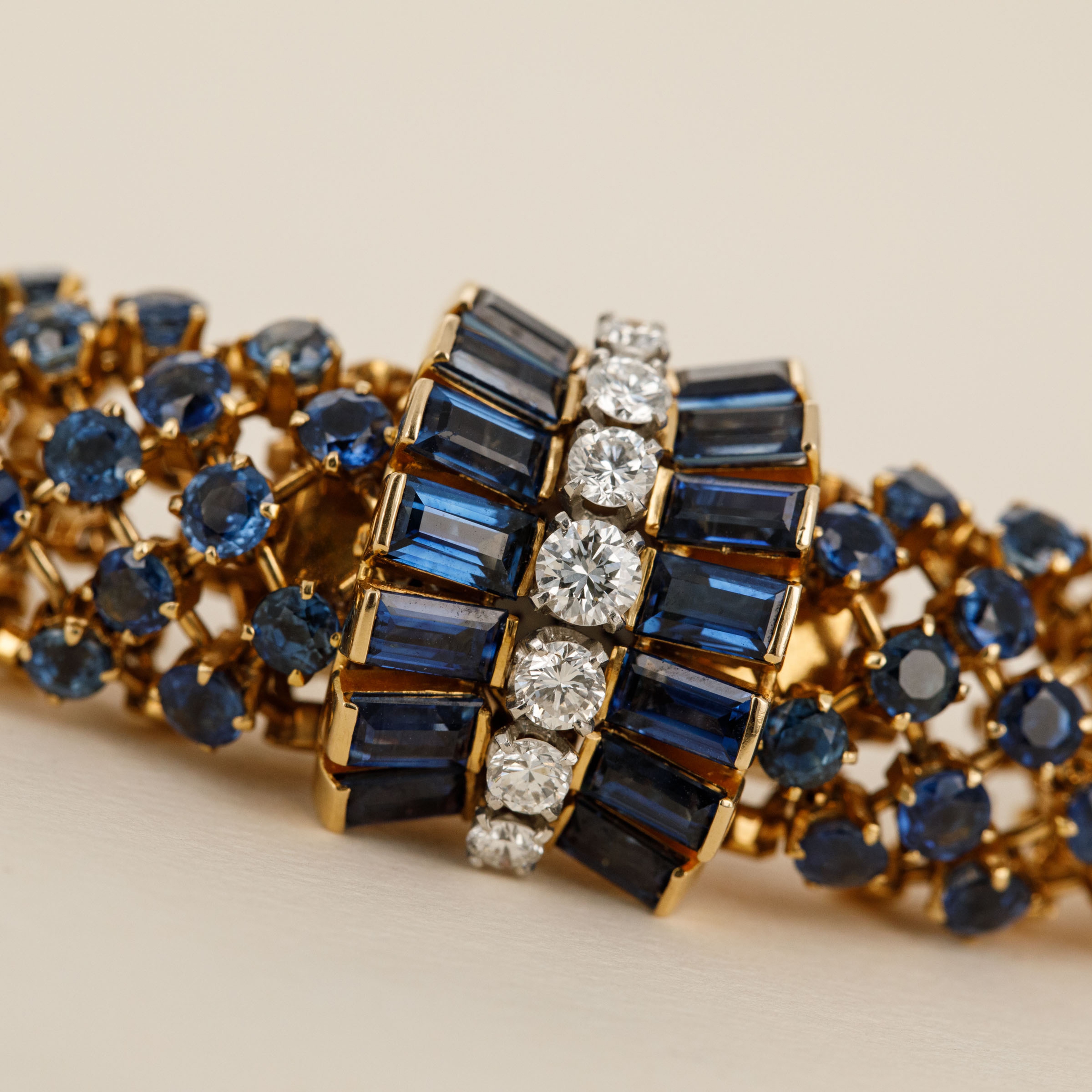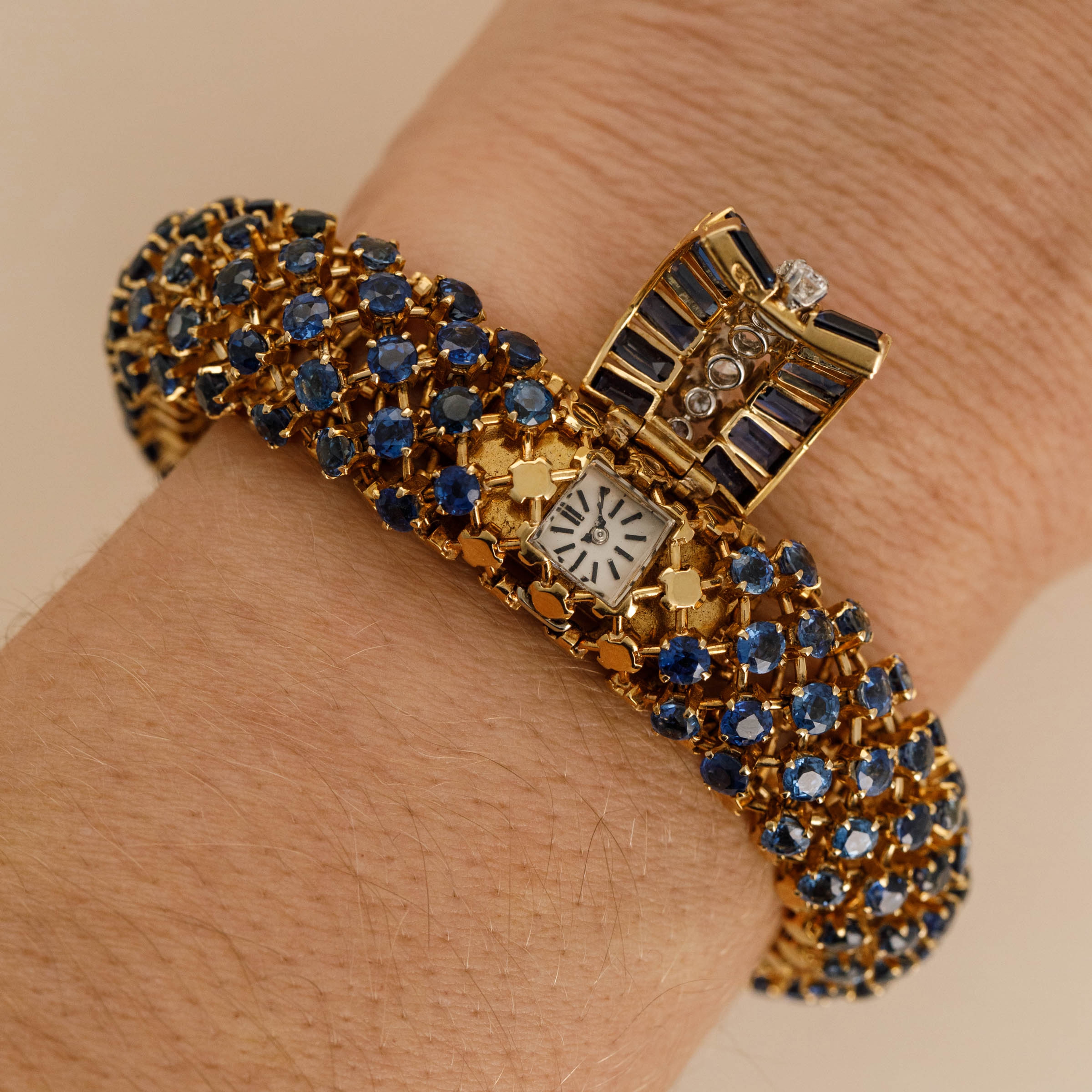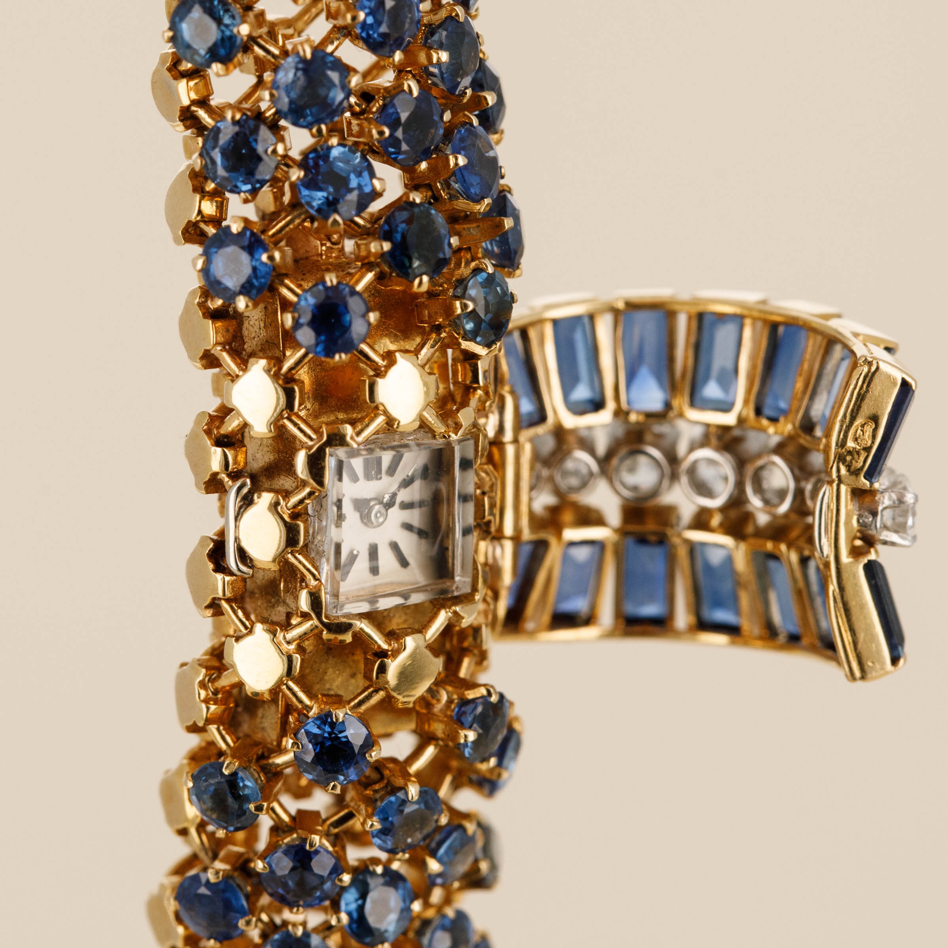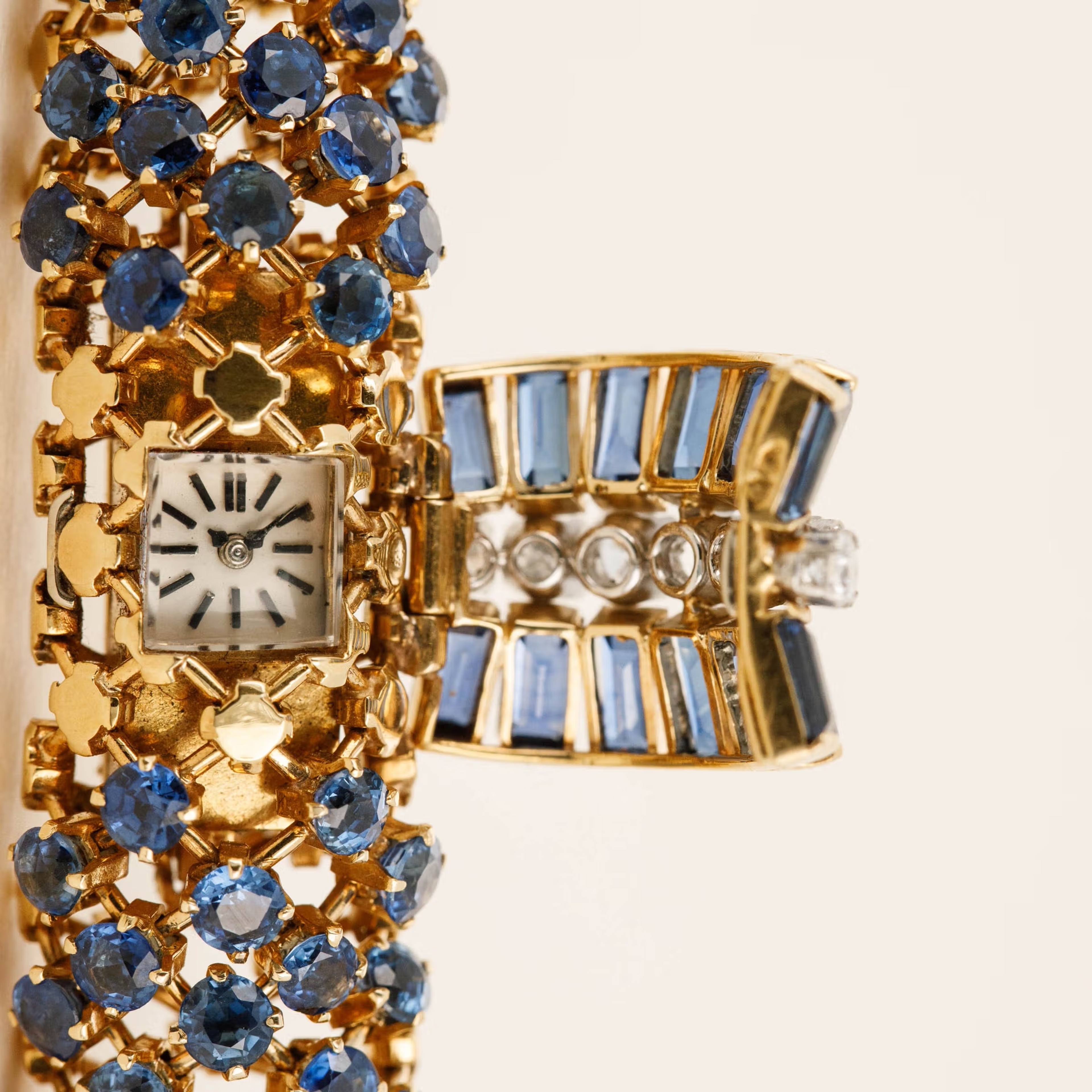 A watch hidden inside a lavish bracelet featuring natural saphhires and delicate gold work that could only have been done at the finest Parisian workshops of yesterday,
