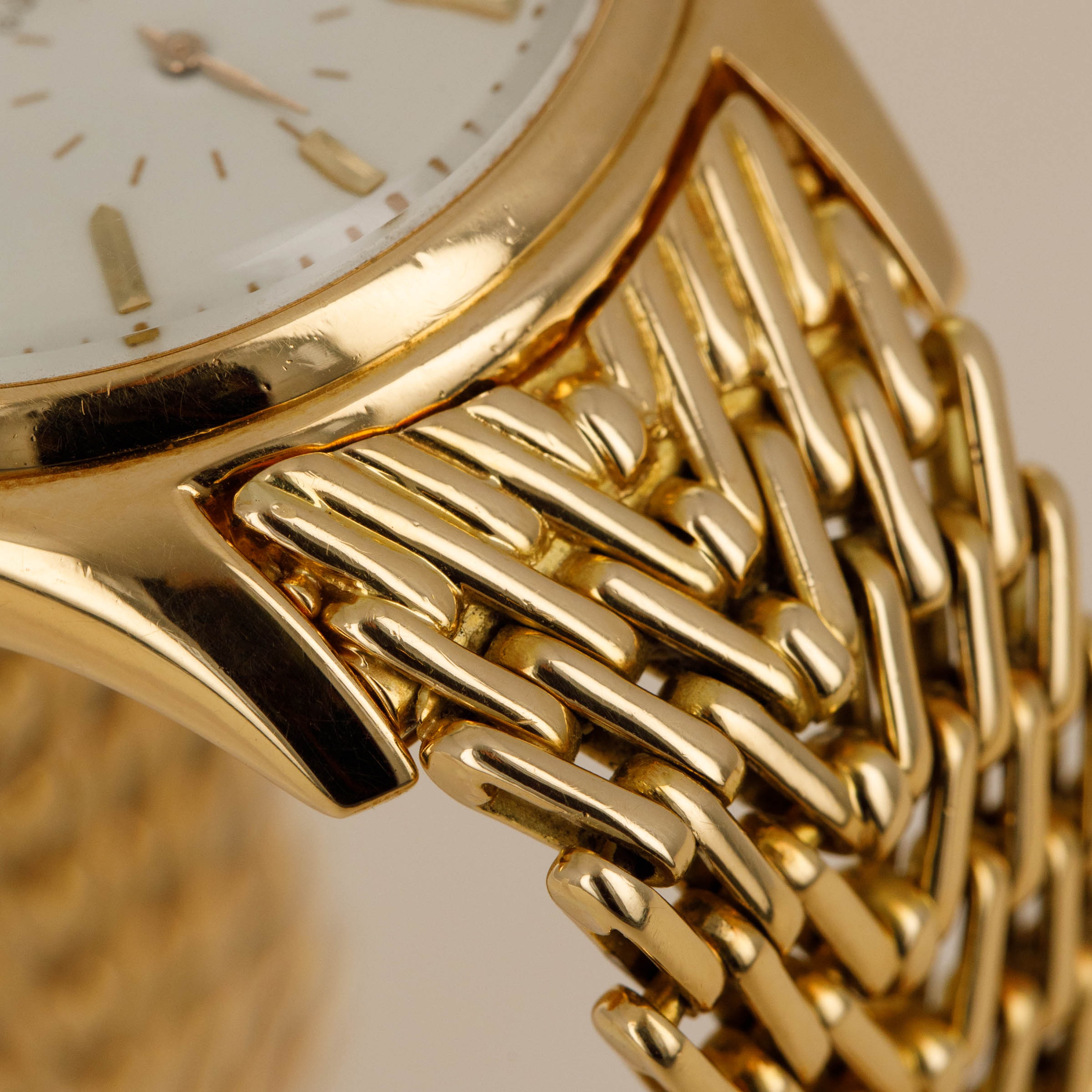 Offered on an unapologetically unique 18kt yellow gold V-shaped link bracelet made by Gay Freres and with a screw-down caseback, the 36mm ref. 2526 wears with a uniquely contemporary fit and finish on the wrist that makes it an easy watch to enjoy, even by modern standards.