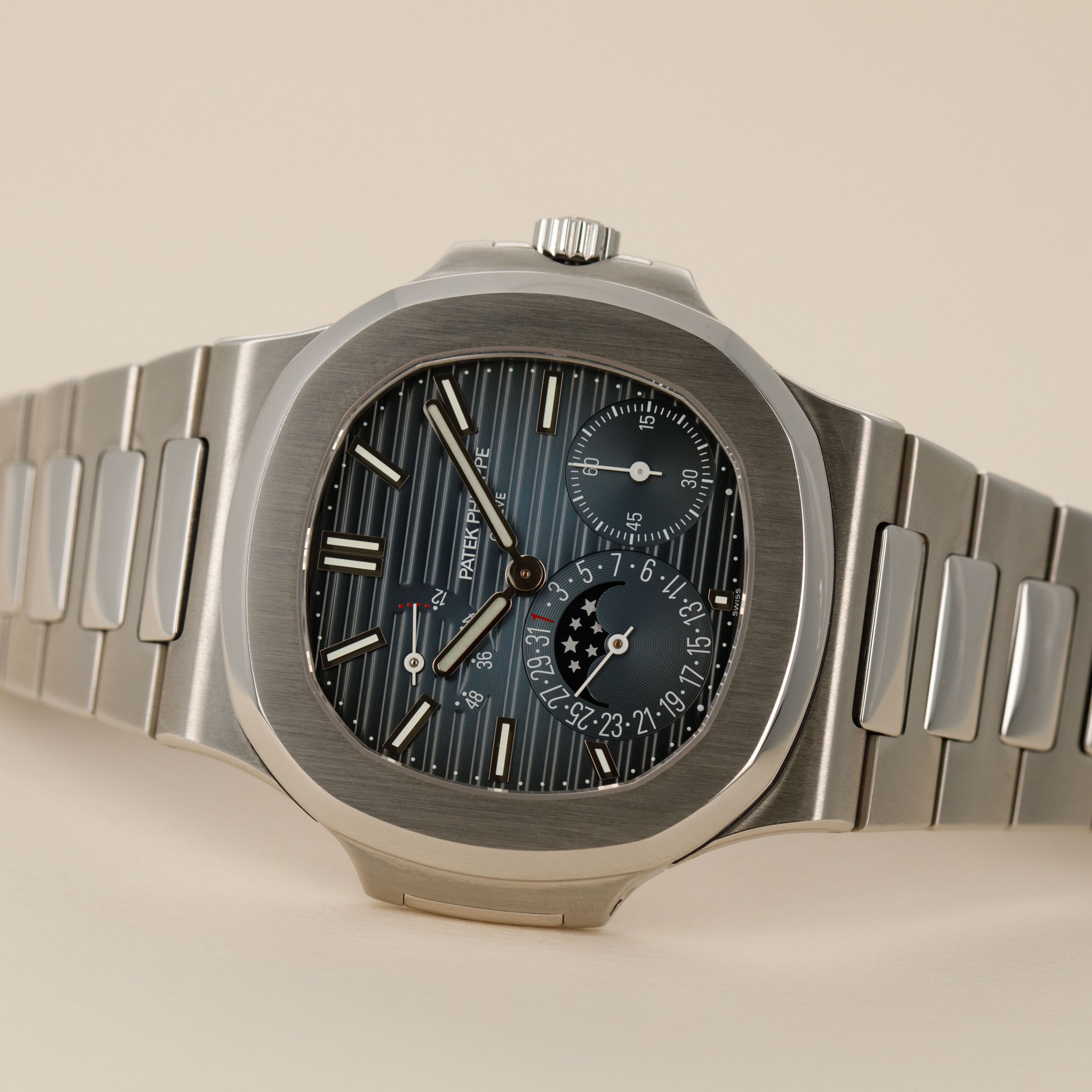 Perfectly familiar to any watch collector, the ref. 5712 sports the same legendary porthole-inspired case and iconic integrated bracelet as practically every Nautilus variant that has come before it.